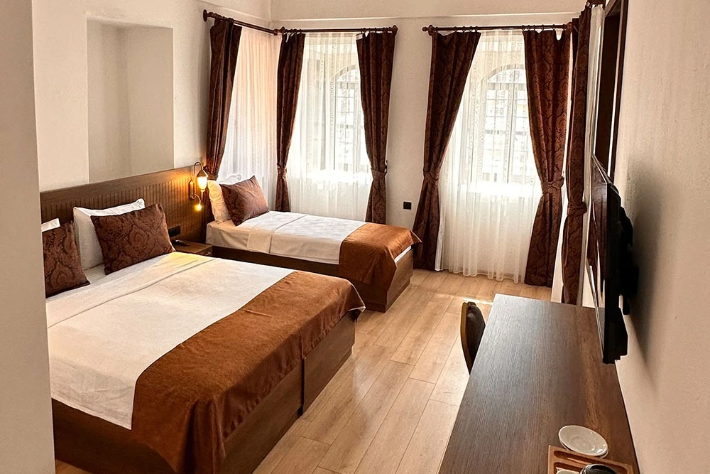Daha Fazla GösterAmasya’nın kalbinde, 17. yüzyıldan bugüne uzanan bir hanın içinde hayat bulan Taşhan 1699, konuklarını zamansız bir atmosferde ağırlamaktan gurur duyar. Taş duvarları, kemerli yapısı ve tarihle iç içe geçmiş dokusuyla her misafirine bir hikâyenin parçası olma hissi sunar.Restore edilirken tarihi kimliğine sadık kalınan yapımızda, konfor ve estetik en ince ayrıntısına kadar düşünüldü. Geniş avlusu, sessizliği ve huzuru ile şehrin içinde saklı bir sığınak gibidir. Sabahı kuş sesleriyle karşılamak, gün batımında tarihi duvarlar arasında zamanın akışını izlemek burada yaşanan her anı özel kılar.Odalarımızda sade zarafet ve modern konfor bir aradadır. Taşhan 1699, ister kısa bir kaçamak ister uzun bir konaklama için, misafirlerinin rahatlığını ve huzurunu öncelikli tutan bir anlayışla hizmet verir.