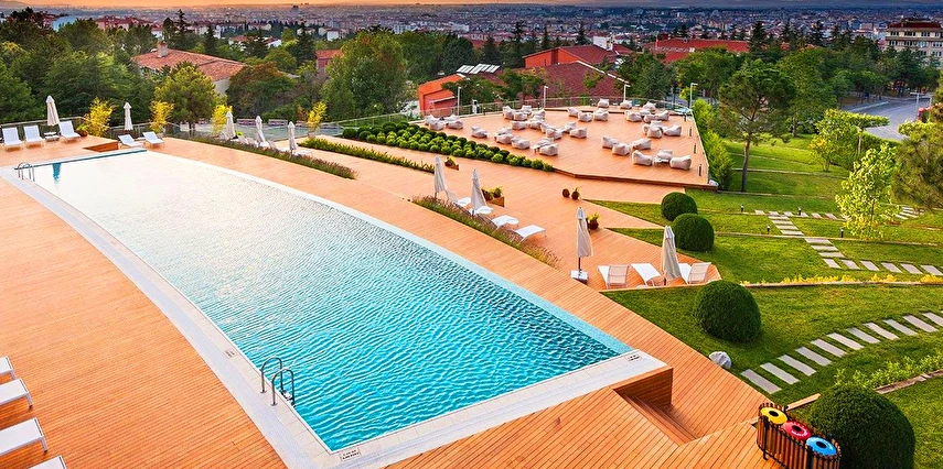 Tasigo Eskişehir, şehre hakim konumu, modern mimarisi ve üst düzey hizmet anlayışıyla Eskişehir’de lüks konaklamanın önde gelen adreslerinden biridir. Doğayla iç içe atmosferi, panoramik şehir manzarası ve kapsamlı spa olanaklarıyla hem dinlenmek hem de yenilenmek isteyen misafirler için ayrıcalıklı bir konaklama deneyimi sunar. İş seyahatleri, şehir kaçamakları ve wellness odaklı tatiller için ideal bir Eskişehir otelidir