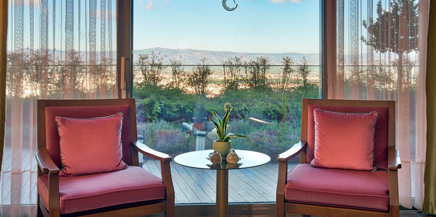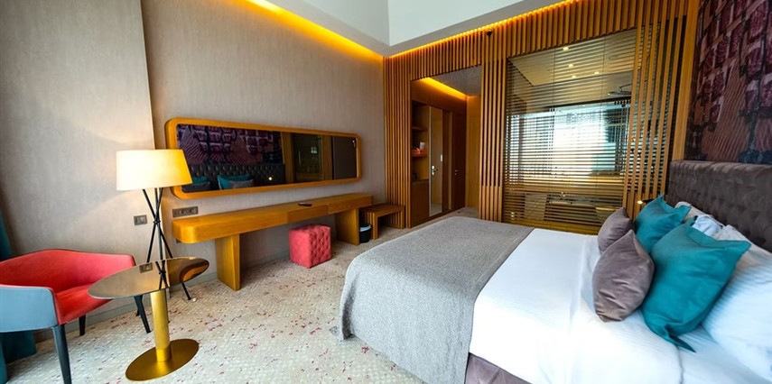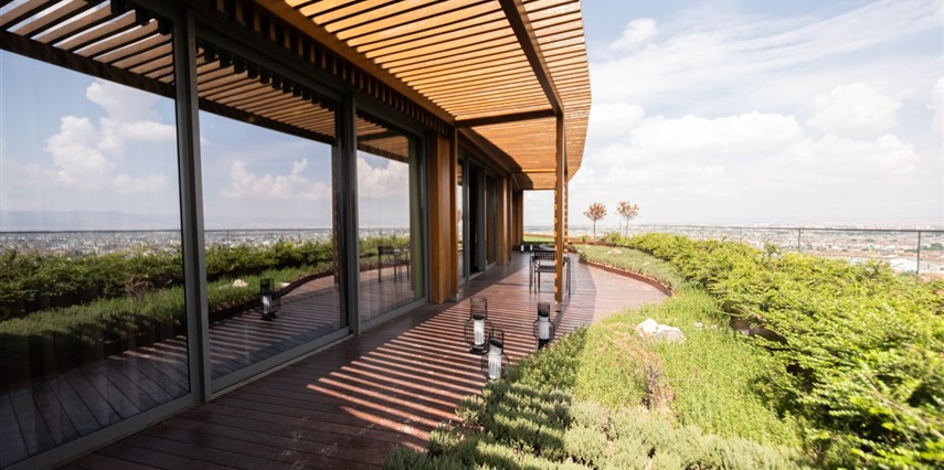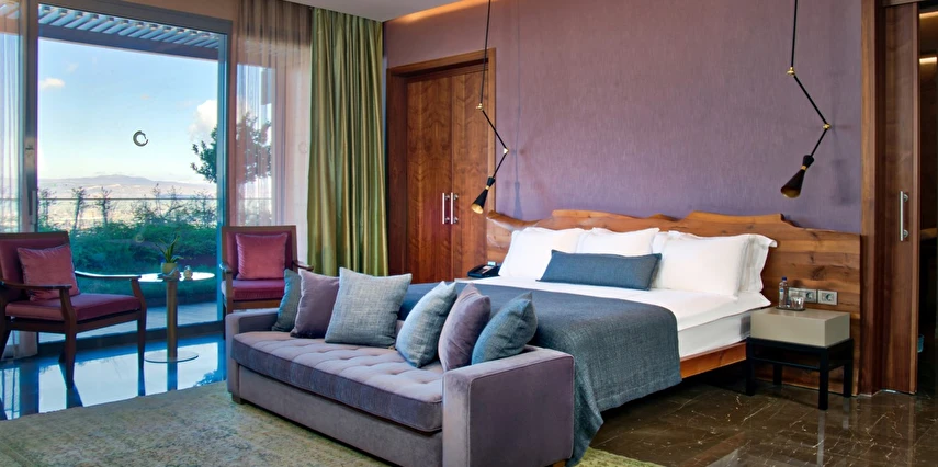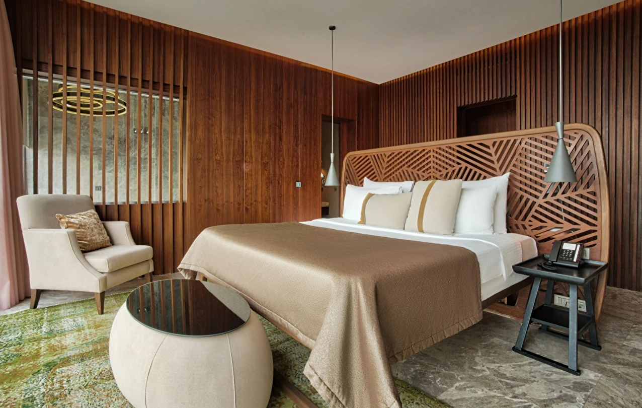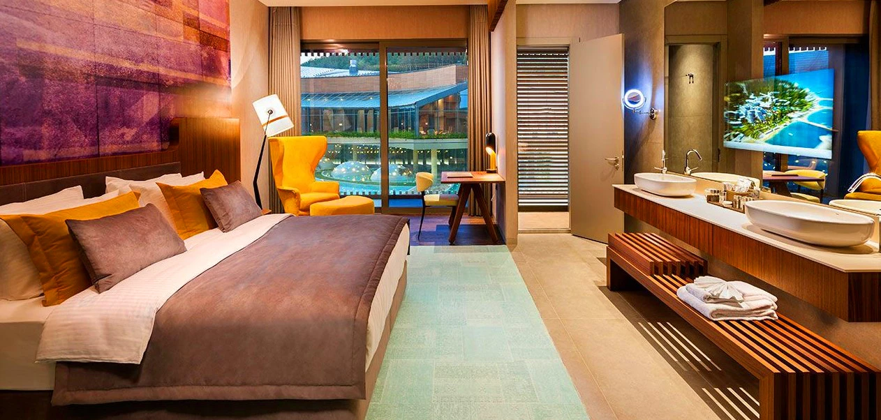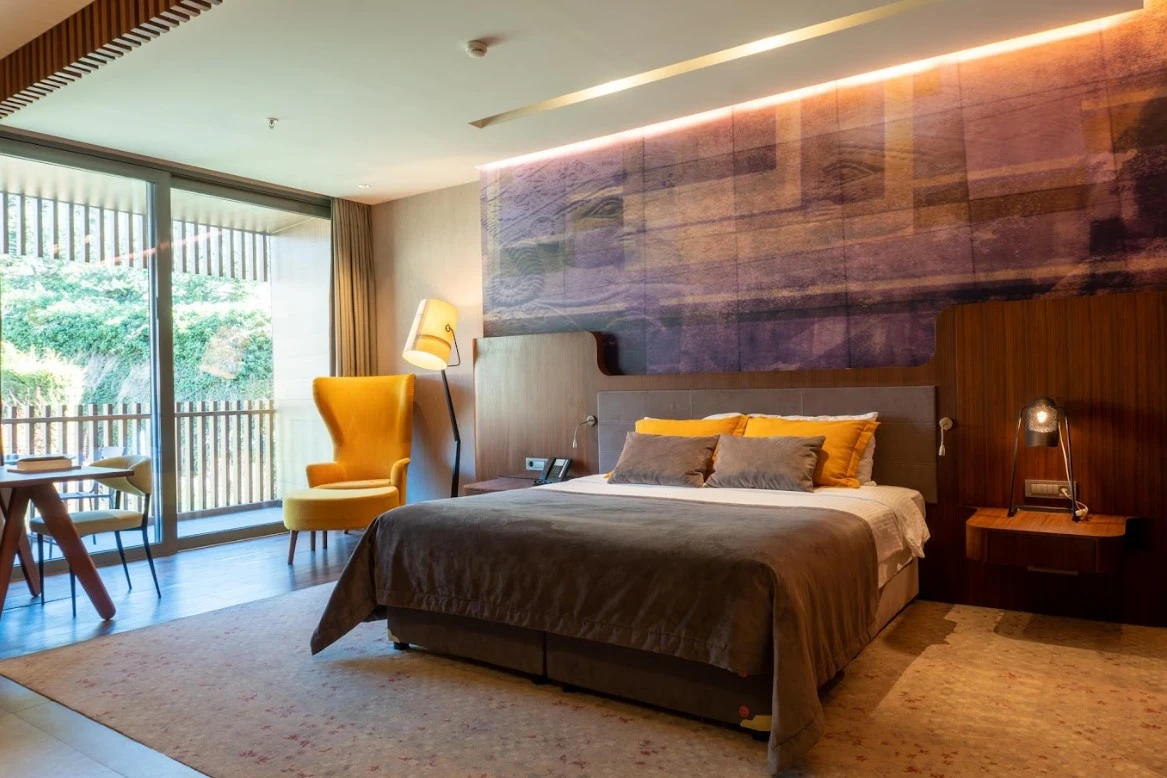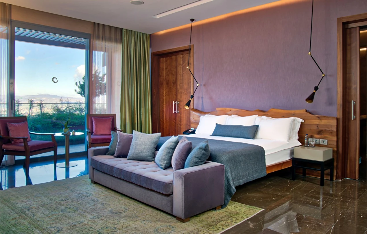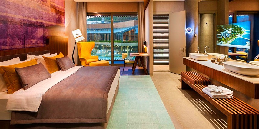 Tesis özgün mimarisi sayesinde hepsi manzaralı 164 lüks ve modern odası, 3500 m² üzerine kurulmuştur.