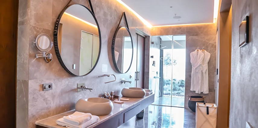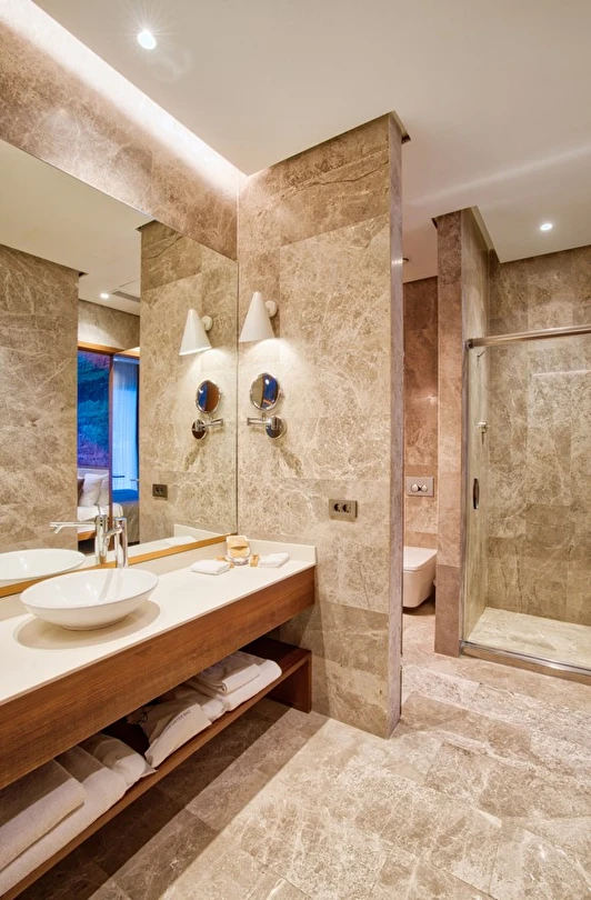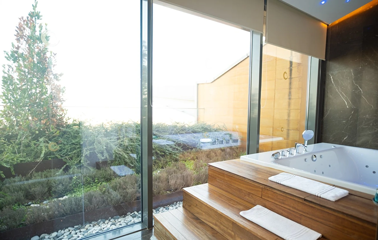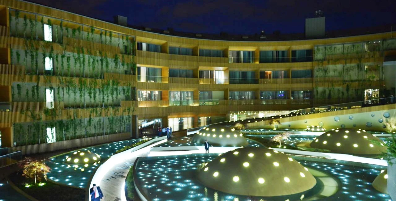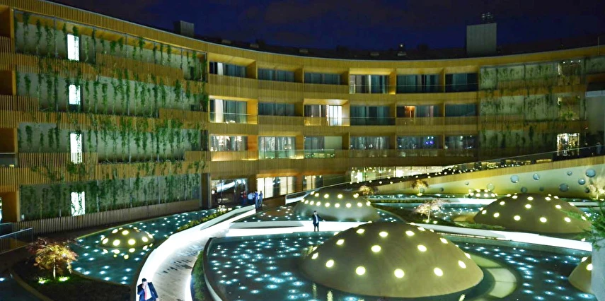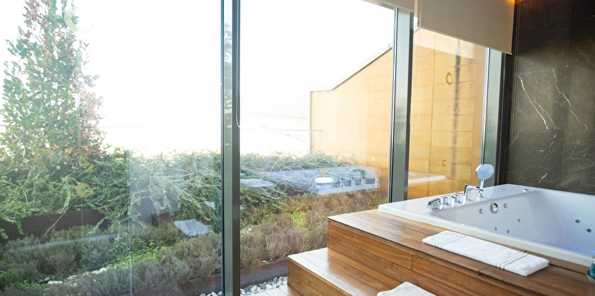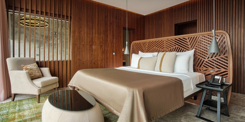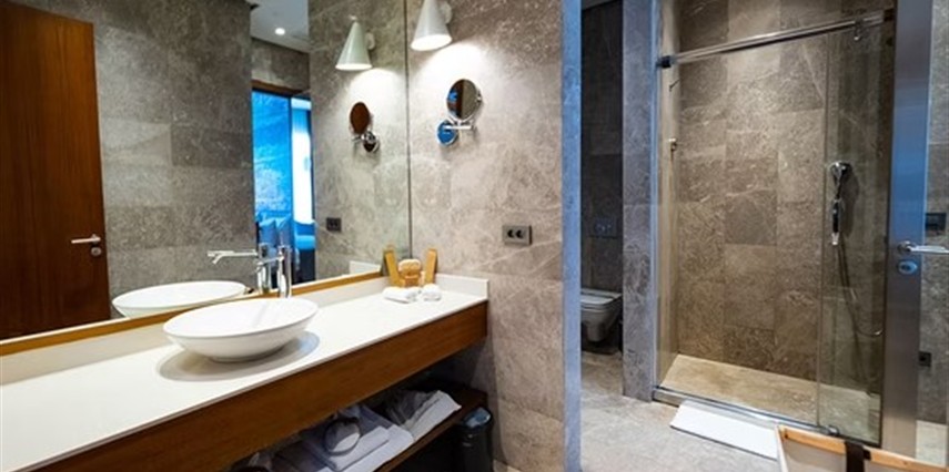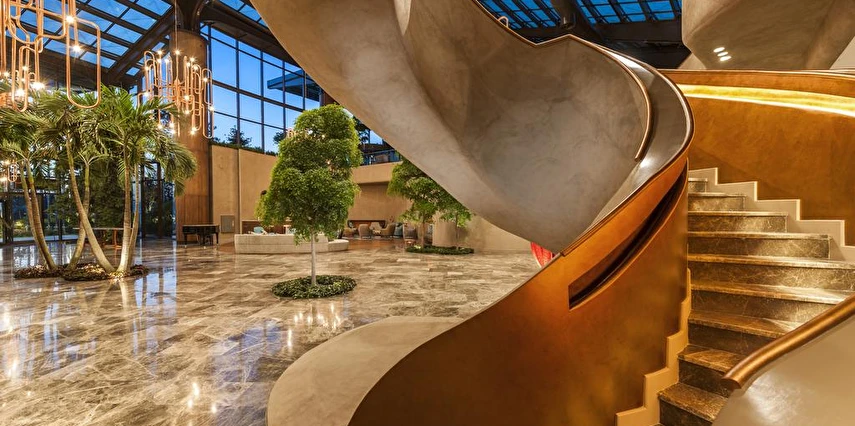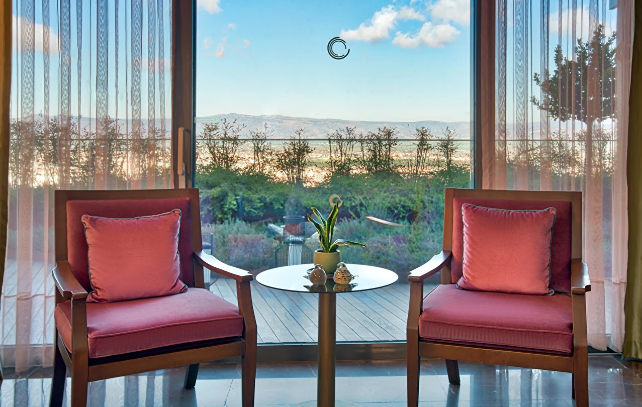 Tesis özgün mimarisi sayesinde hepsi manzaralı 164 lüks ve modern odası, 3500 m² üzerine kurulmuştur.