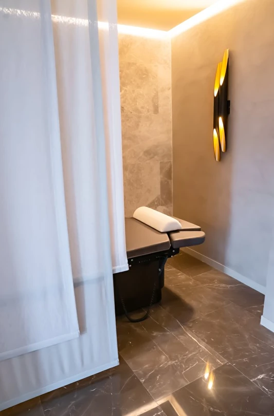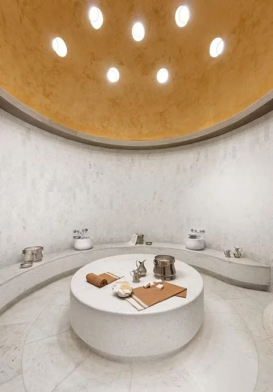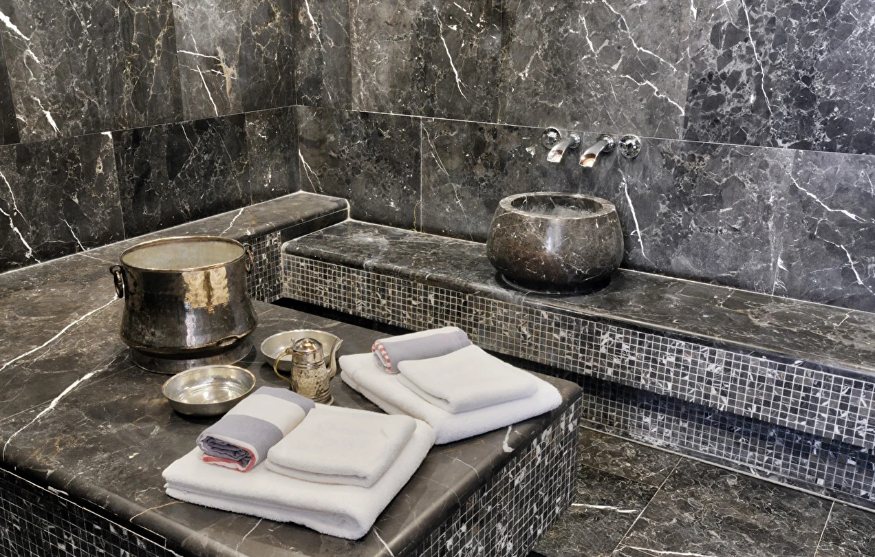 Türk hamamı, sauna, buhar banyosu, şok havuzu, kar çeşmesi gibi muhteşem kolektif alanlarının yanı sıra, tam donanımlı fitness merkezi, özel hamamları, cilt ve vücut bakım kabinleri, masaj odaları ve spa suitleri ile haftanın her günü misafirlere hizmet vermektedir.