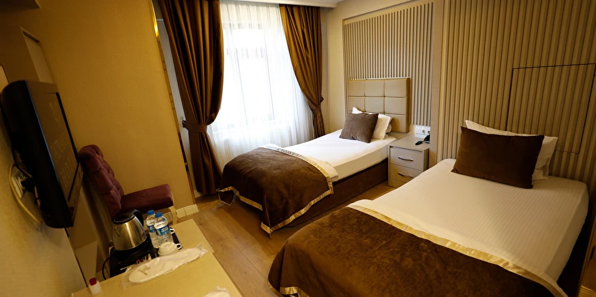 Otelimiz merkezi konumda olup çevresinde resturant, eczane , market , giyim magazaları ve alışveriş merkezleri bulunmaktadır. Van Gölüne sahiline yürüme mesafesindedir. Otelde ücretsiz olarak Vi-Fi , çay ikramı , su , ve açık büfe kahvaltı verilmektedir. Otelde günlük olarak hijyen kurallarına bağlı kalınarak temizlik ve değişimler yapılmaktadır. Odalarda misafirlerin rahat konaklaması için double yatak , aynalık , valizlik , minibar , çalışma masası, santral telefon ve televizyon bulunmaktadır. Odaların içinde banyo ve tuvalet bulunmaktadır. 7/24 sıcak su hizmeti bulunmaktadır. Kış aylarında otel goğalgazlı olup 7/24 sıcaktır.