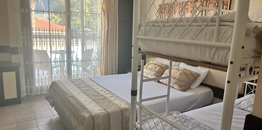 Havuzlarda güneş şemsiyesi, şezlong ve minder ücretsizdir.
