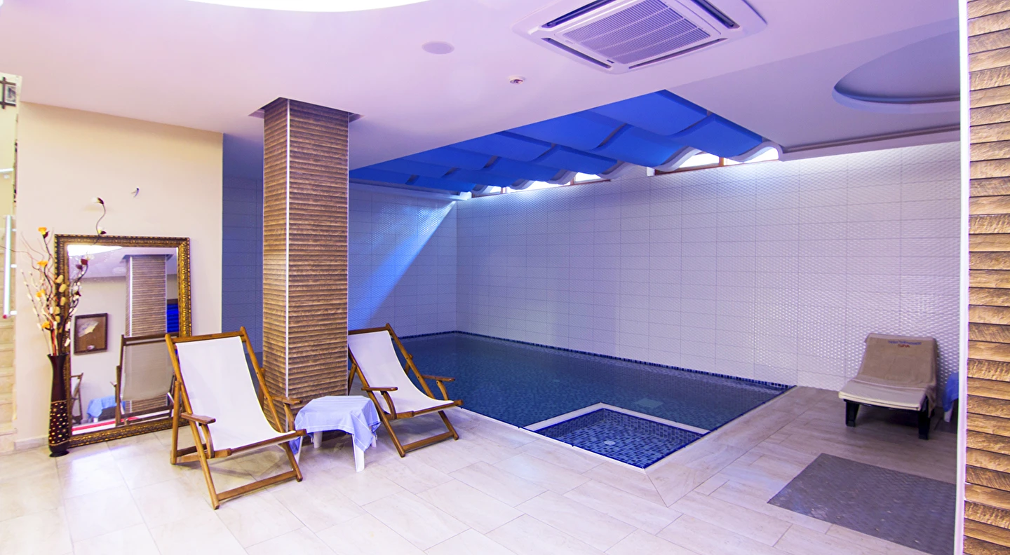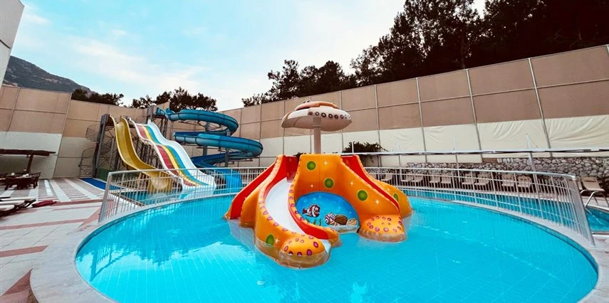 Tesiste 1 adet açık havuz (karışık kullanım- kadınlar haşemalı kullanım) / 1 adet açık havuz / 1 adet su kaydırağı ve havuzu (kadınlar için – özel korunaklı) / 1 adet su kaydırağı ve havuzu (karışık kullanım – kadınlar haşemalı kullanım) mevcuttur.