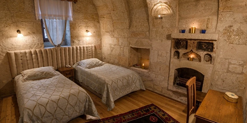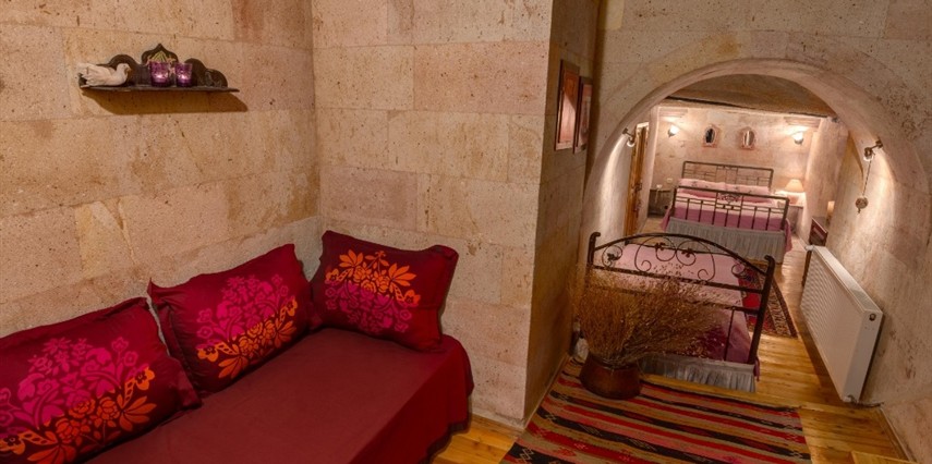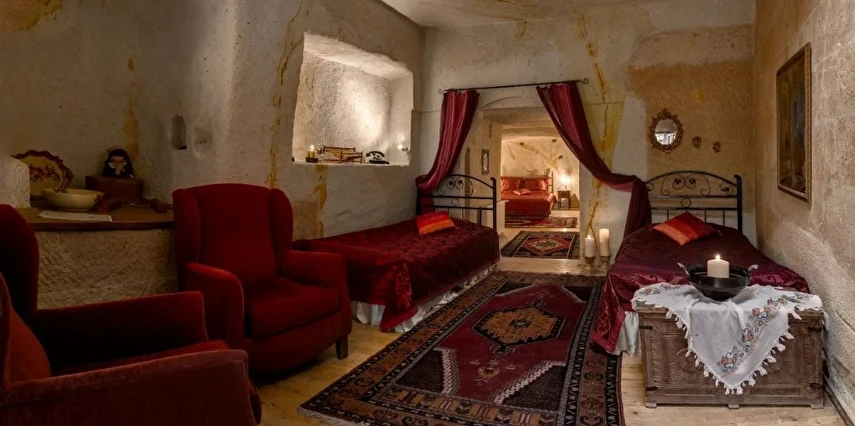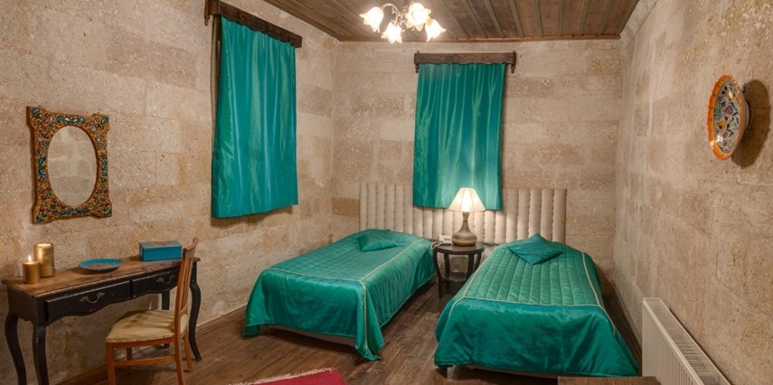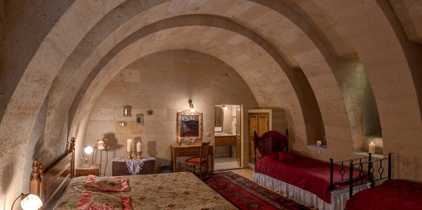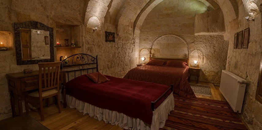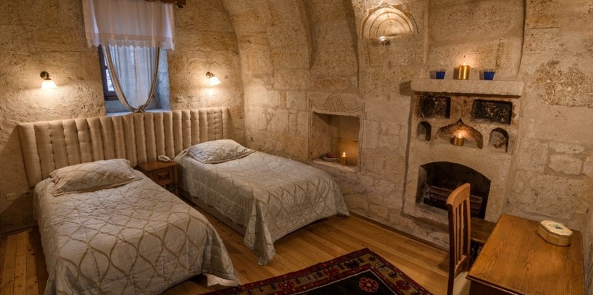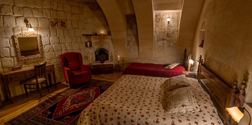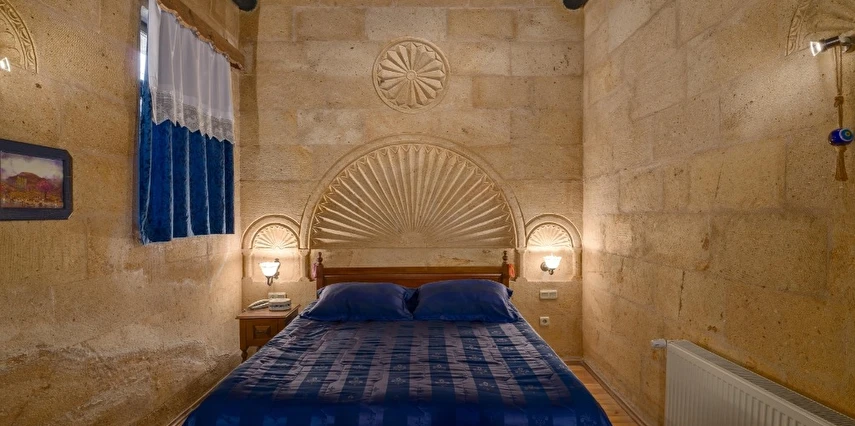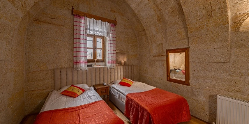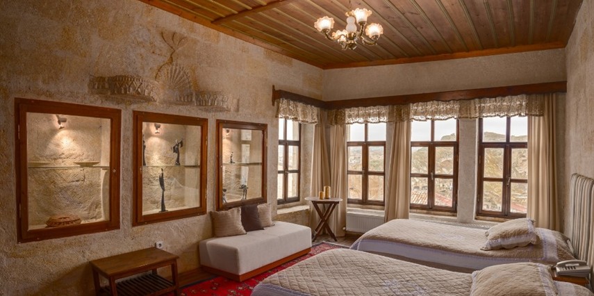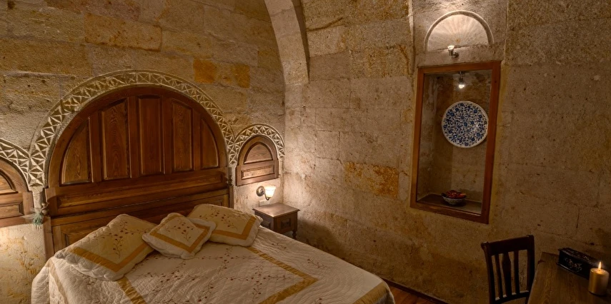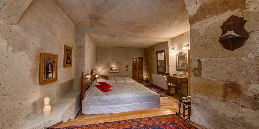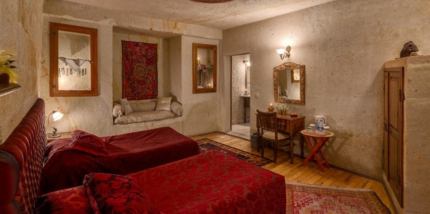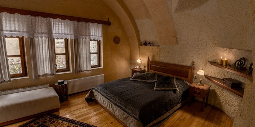 Otelimizdeki zarif ve hoş odalarımızın tamamıyla sizlerin rahatlığı için yumuşak renkler ve antik eşyalar kullanılarak dekore edilmiştir. Banyolarımızdaki jakuziler, kaya oyma odalarımızdaki doğal klima ve şömineler sizlerin konforu ve keyifli bir ortamda kalmanız için hizmetinizdedir.