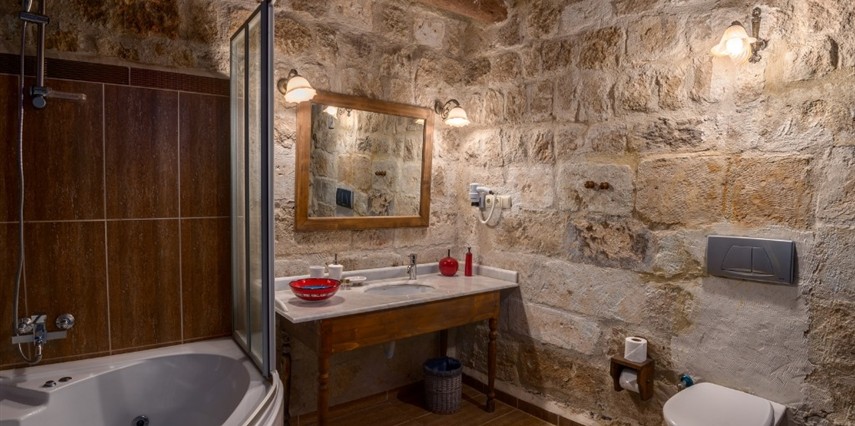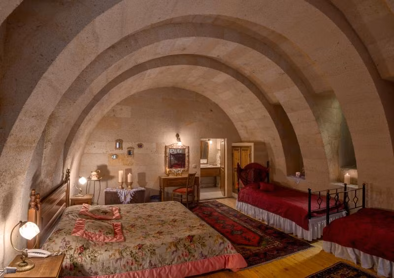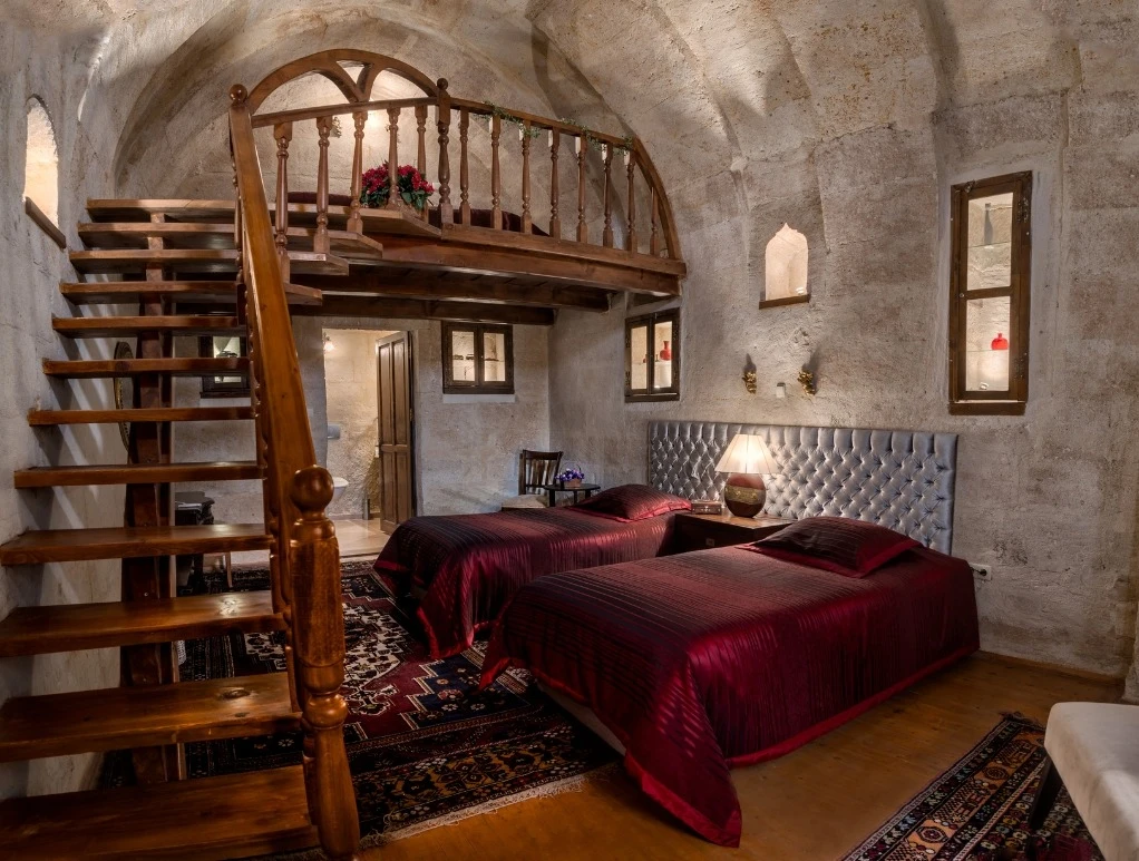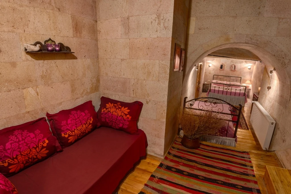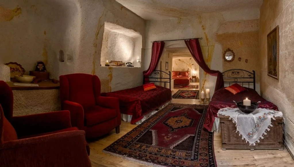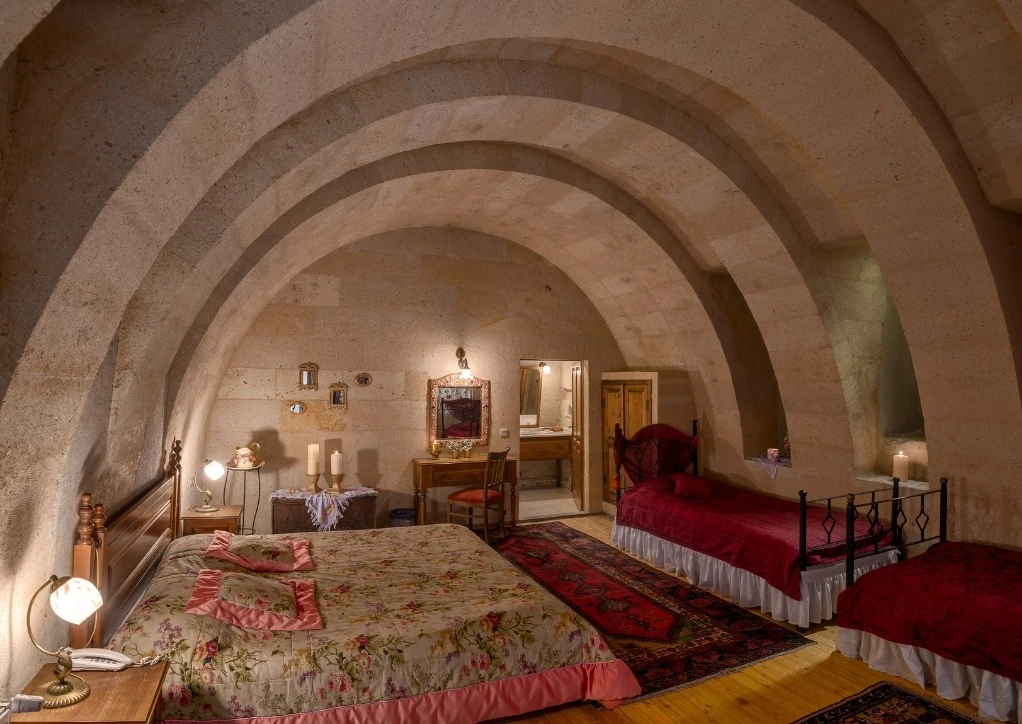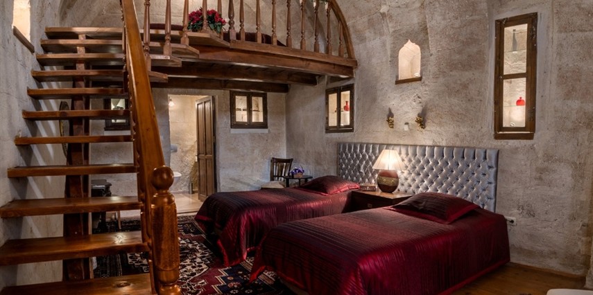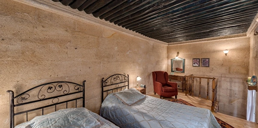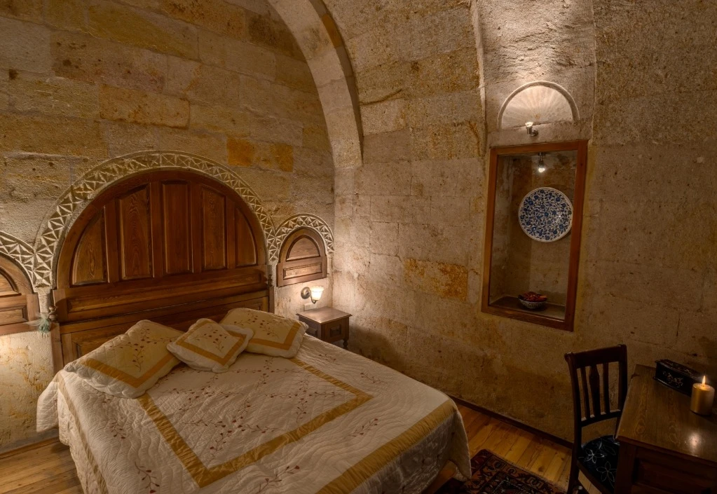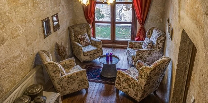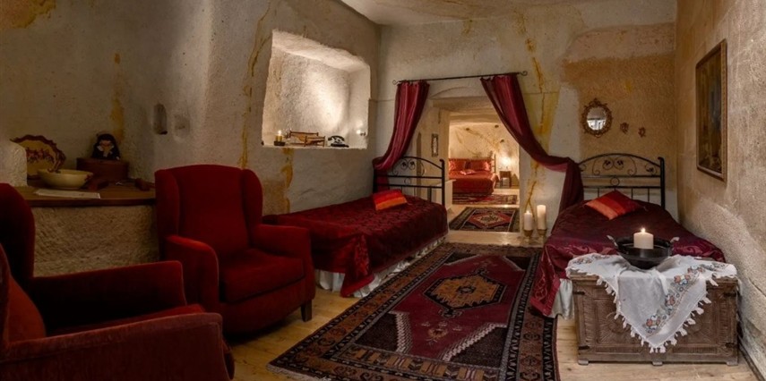 Otelimizdeki zarif ve hoş odalarımızın tamamıyla sizlerin rahatlığı için yumuşak renkler ve antik eşyalar kullanılarak dekore edilmiştir. Banyolarımızdaki jakuziler, kaya oyma odalarımızdaki doğal klima ve şömineler sizlerin konforu ve keyifli bir ortamda kalmanız için hizmetinizdedir.