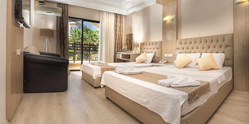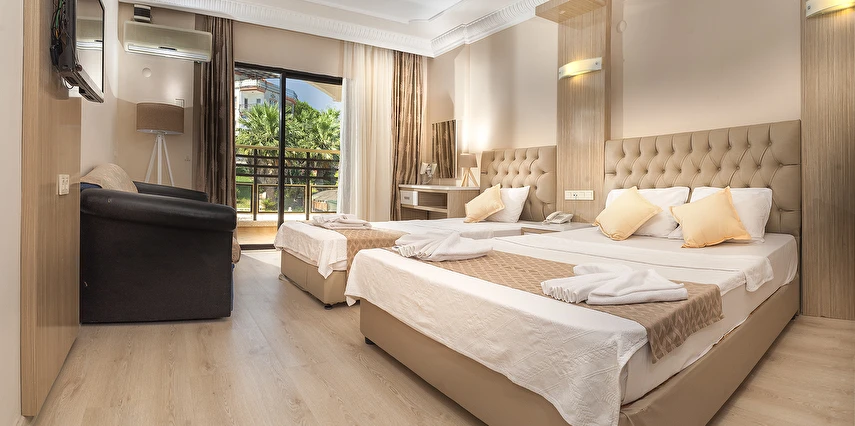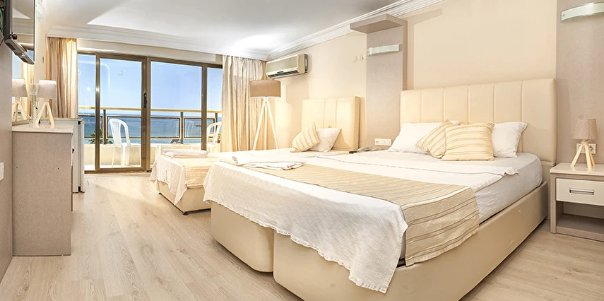 Sürekli yenilenen tesisimizin her biri konforlu ve modern bir dekorla tasarlanmış toplamda 60 odası bulunmaktadır. Odalarda; Zemin Seramik, LCD TV, Kablosuz İnternet, Saç Kurutma makinası, Buzdolabı ve Klima yer almaktadır. Balayı çifti odalarımız için oda süsleme ve meyve sepeti ikramlarımız bulunmaktadır.
