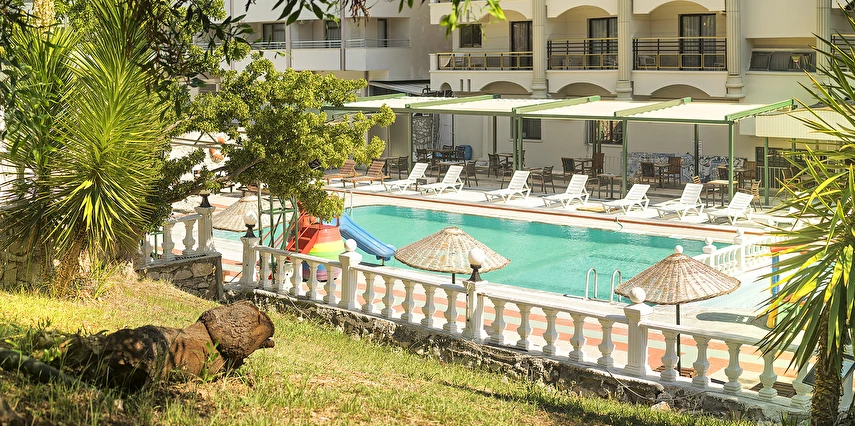 Plaja yürüme mesafesinde ki otelimiz , avantajlı bir konuma sahip olup, Otogar’a 2,5 Km, Bodrum Havaalanına 75 Km ve İzmir Adnan Menderes Havaalanı’na 135 Km de konumlanan tesisimiz ulaşım, eğlence ve Didim’i keşfedebilmeniz açısından size kolaylık sunmaktadır. Açık havuz kenarında Ege'nin içinizi ısıtan güneşinin altında uzanırken, Havuz Bar’da yer alan alkollü - alkolsüz içecekleri ve kokteylleri ile serinleyip tatilinizin keyfine varabilirsiniz.