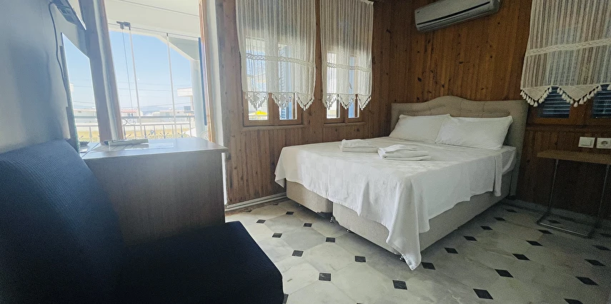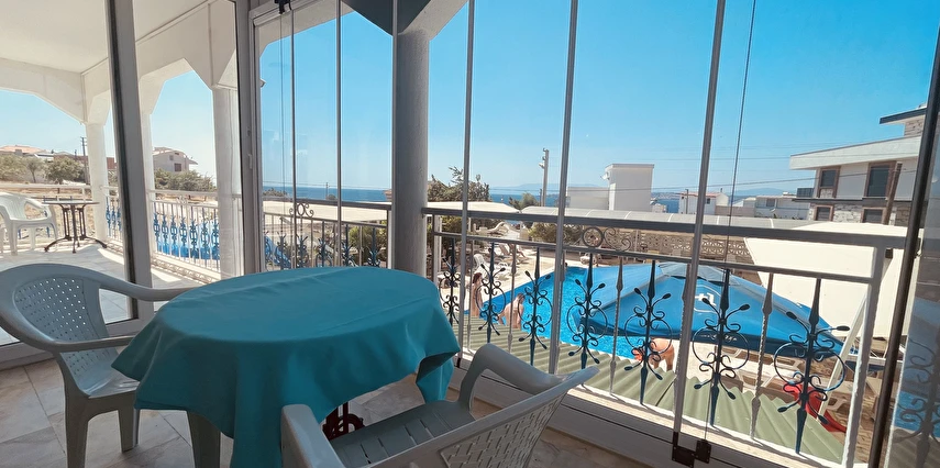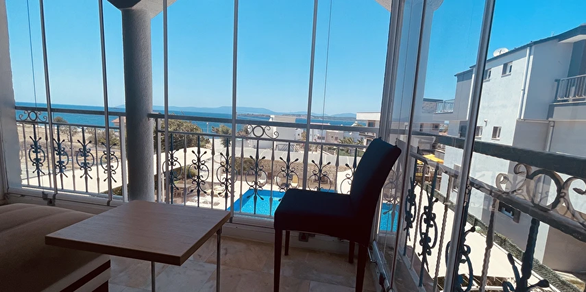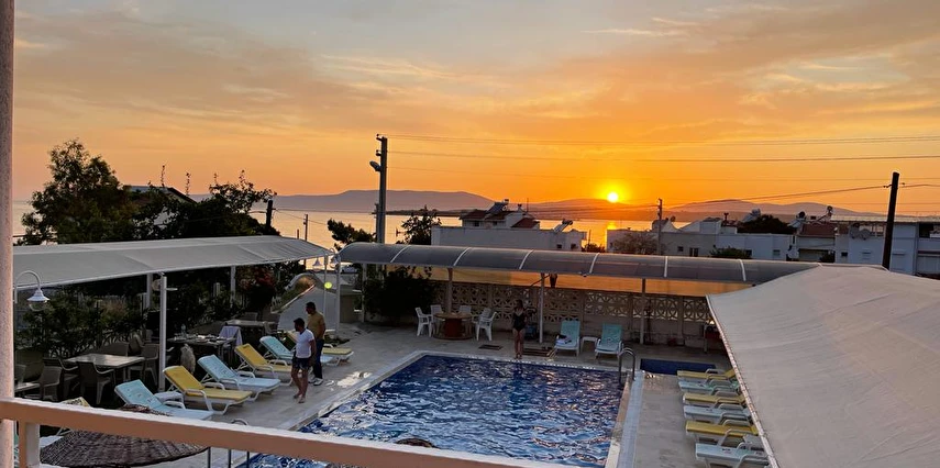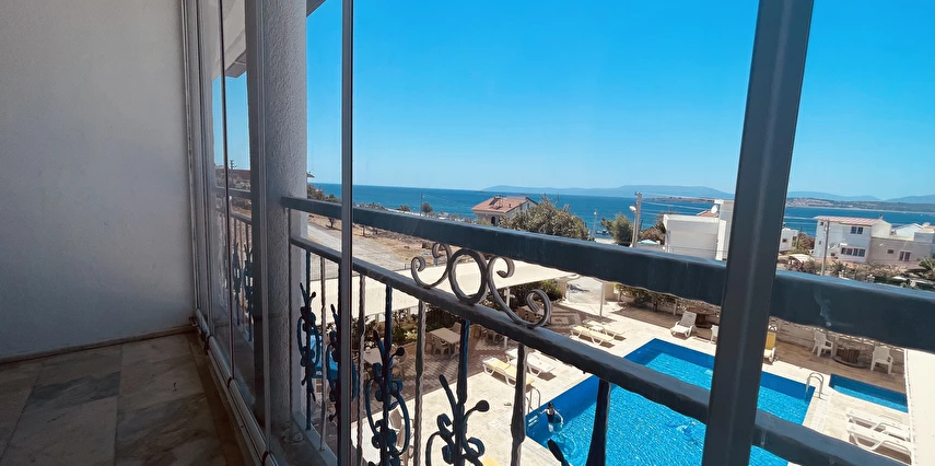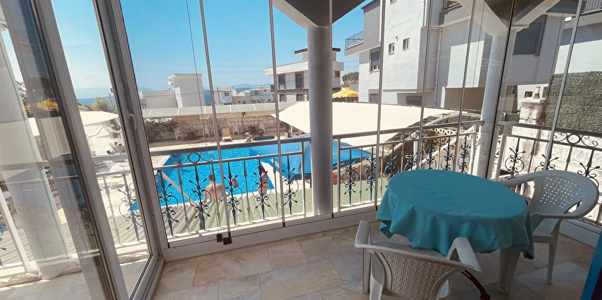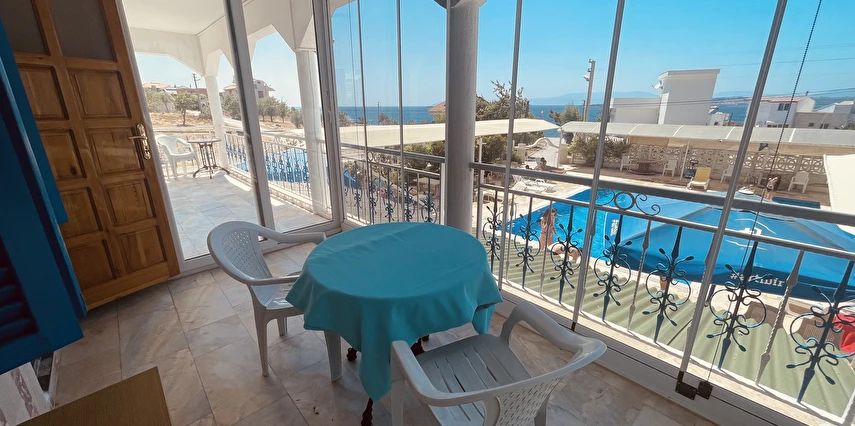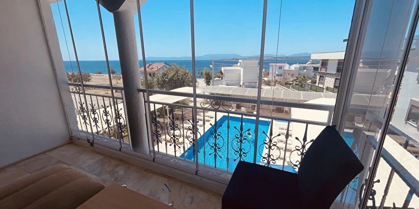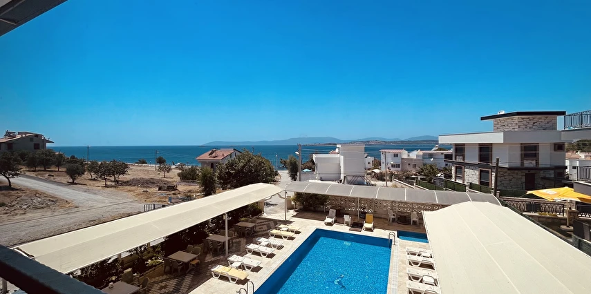 Deniz manzarasının yanı sıra havuzu ve havuz başı barı ile de tesis keyifli bir tatili vadediyor.