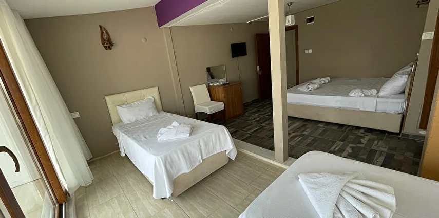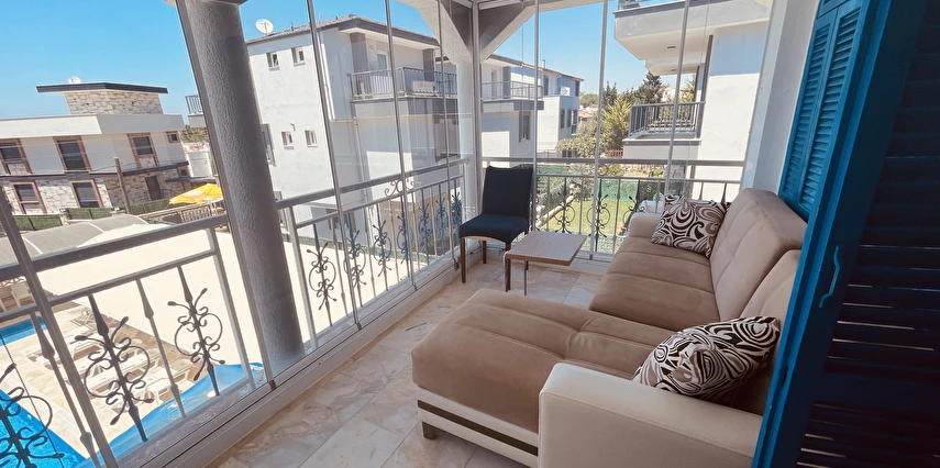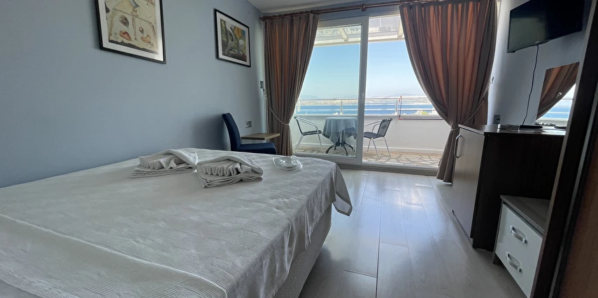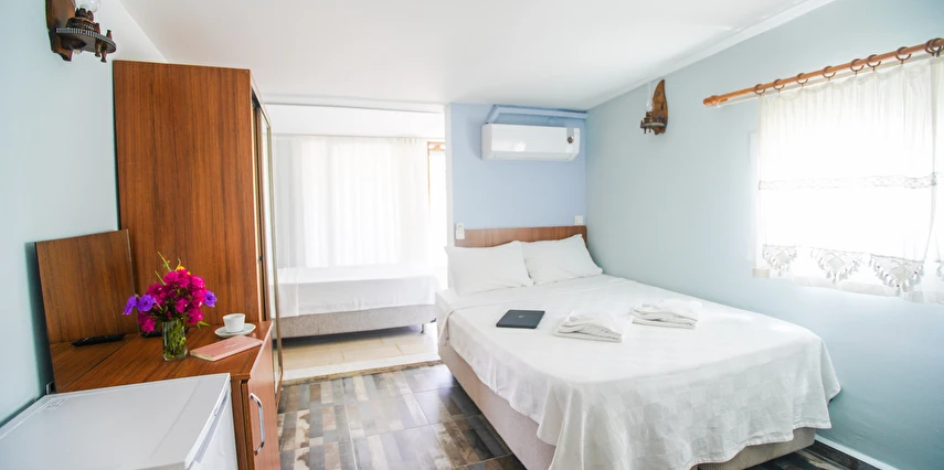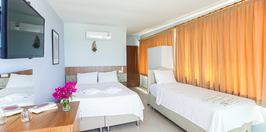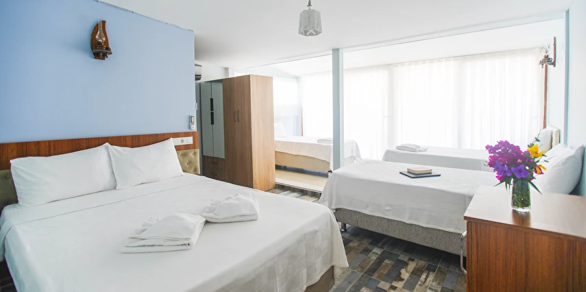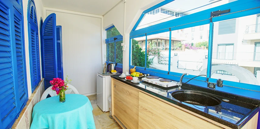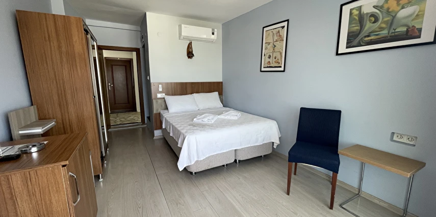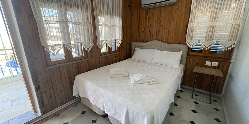 Deniz manzarasının yanı sıra havuzu ve havuz başı barı ile de tesis keyifli bir tatili vadediyor.