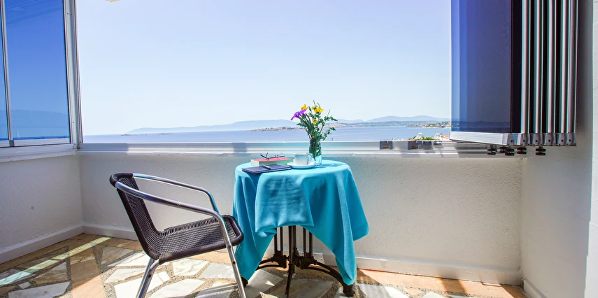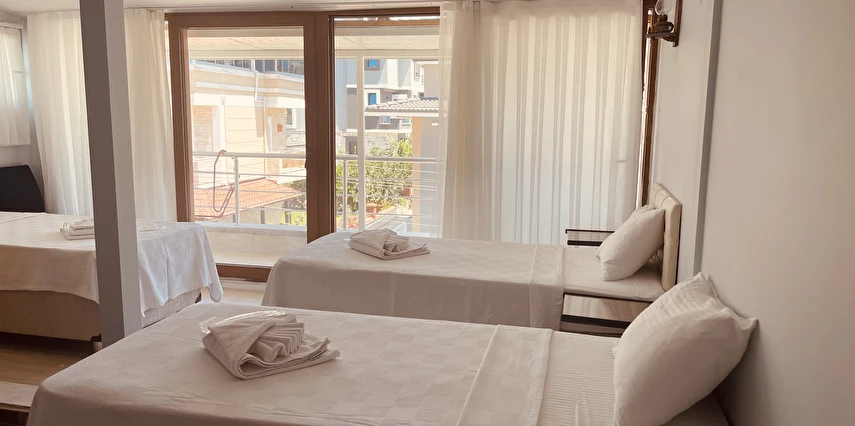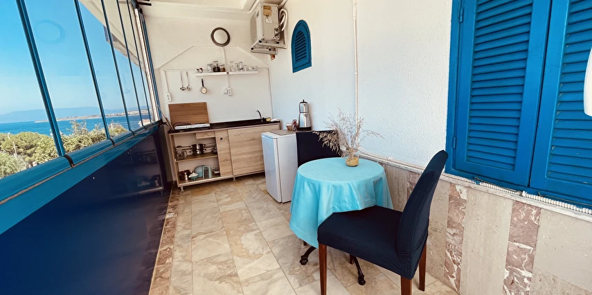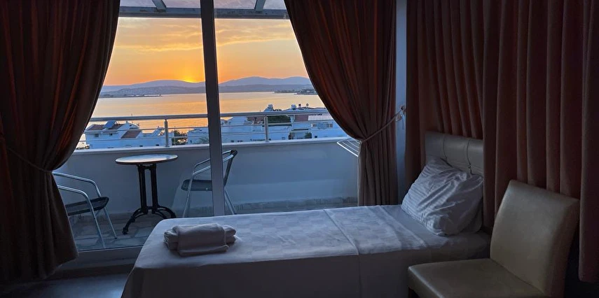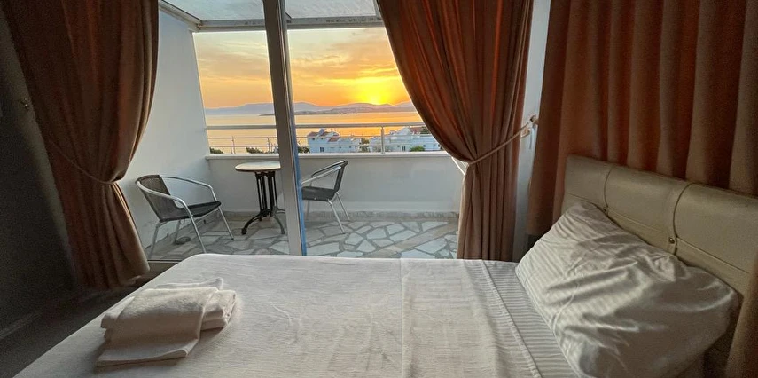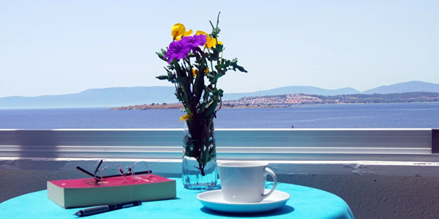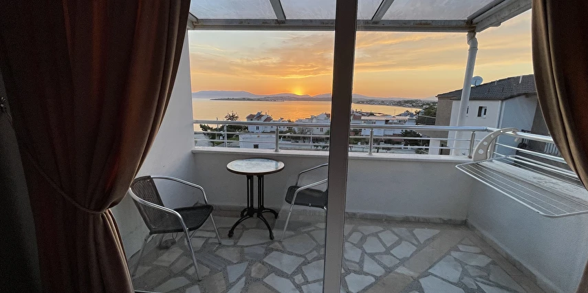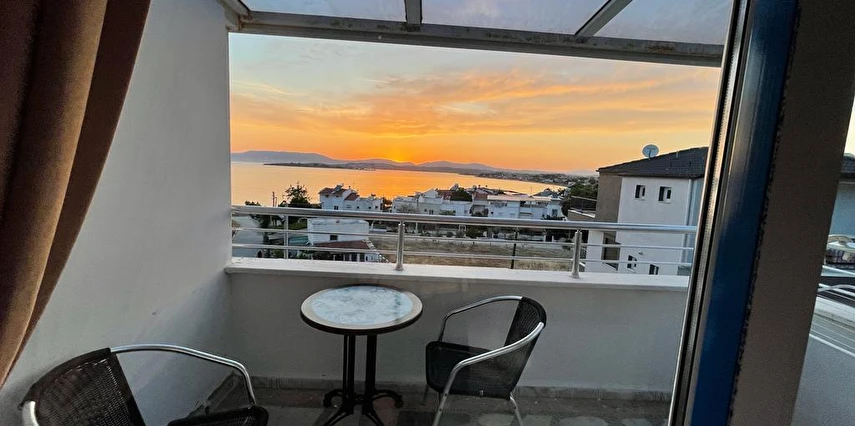Seferihisar, Akarca’da bulunan Teras Butik Otel, deniz ve gün batımı manzaralarına açılan balkonlara sahip 12 odası ile misafirlerini ağırlıyor.