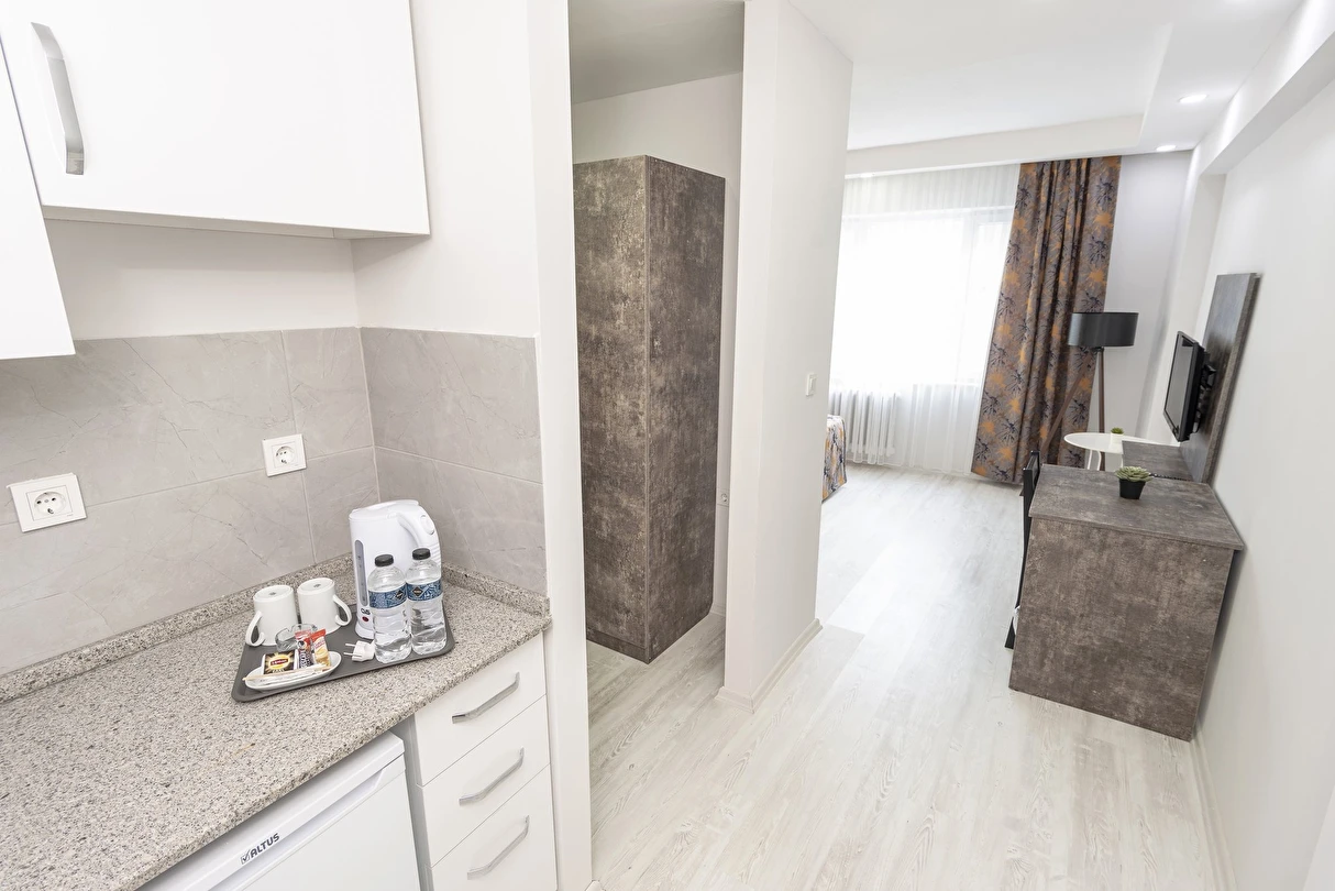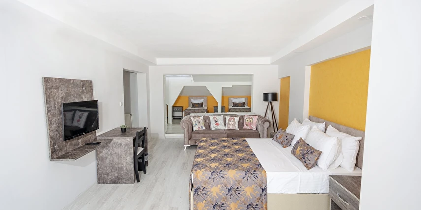 Küçük mutfak olan 21 odasında evinizin konforunu yaşayın. Misafirlerimizin iyi vakit geçirebilmesi için LCD televizyon, uydu kanalları ve ücretsiz kablosuz İnternet vardır. Misafirlerimize telefon, masa ve buzdolabı gibi imkânlar ve kolaylıklar sunulmaktadır.