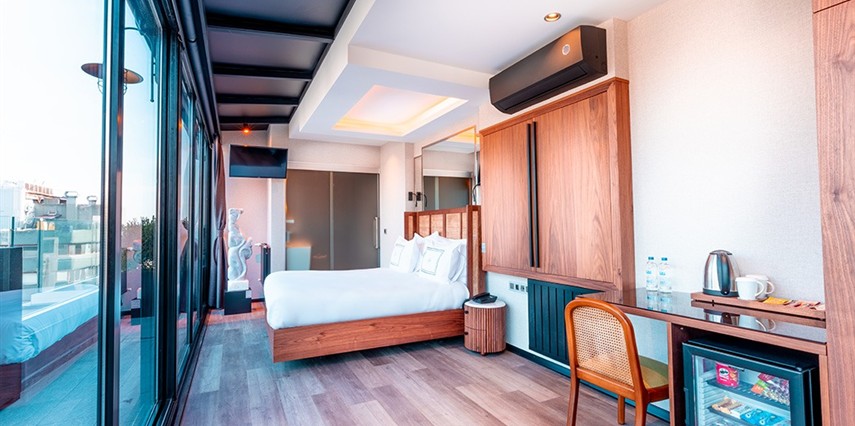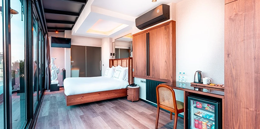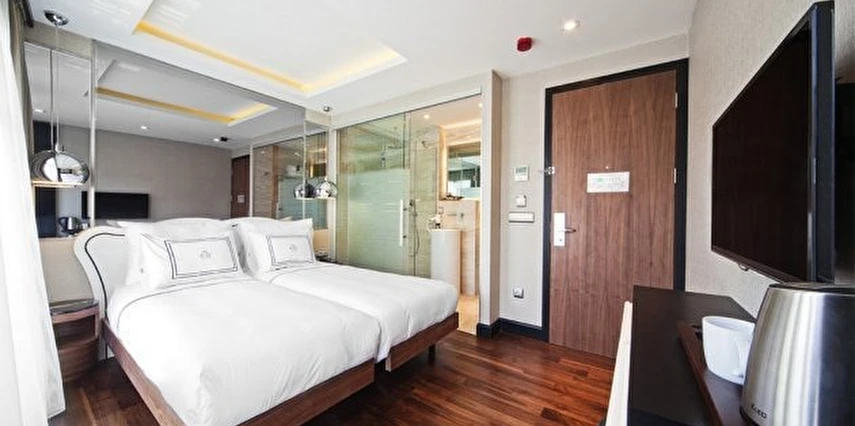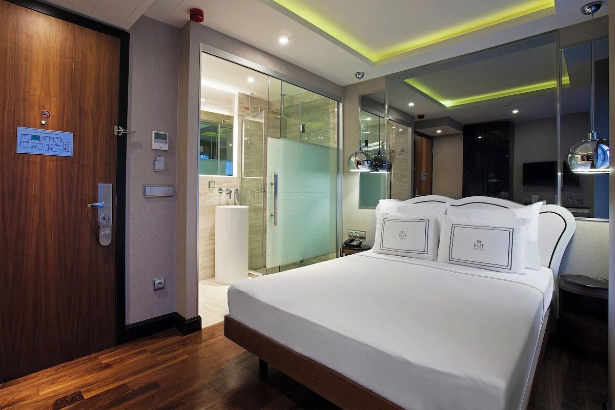 Daha Fazla GösterThe Haze Hotel, lüks ve şık atmosferiyle Karaköy’de merkezi bir konumda hizmet veriyor. Konforlu odalarında ihtiyaç duyulacak pek çok imkanın sunulduğu tesisin, özel terası bulunan Boğaz, Haliç ve Galata Kulesi manzaralı süitleri bulunuyor.