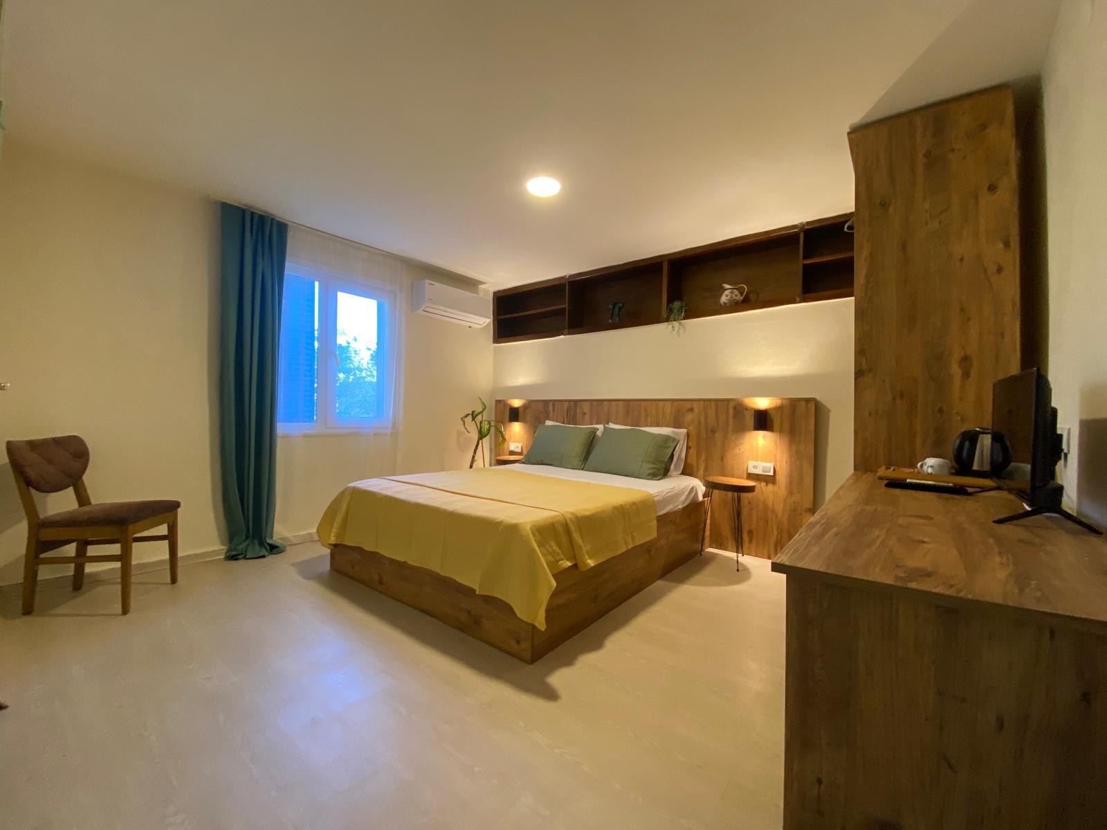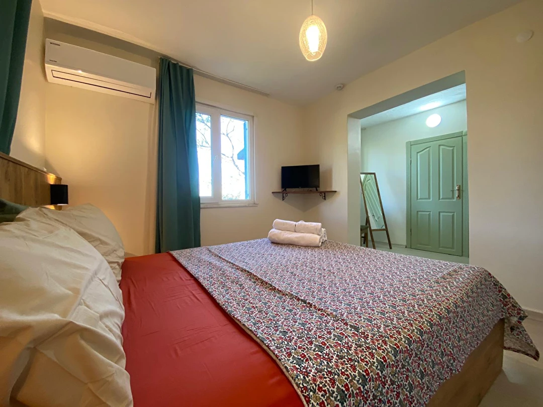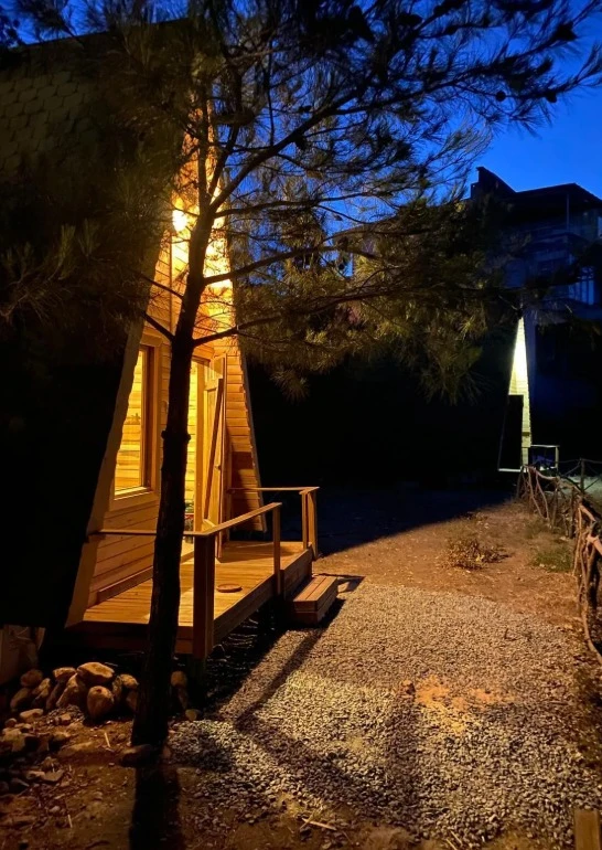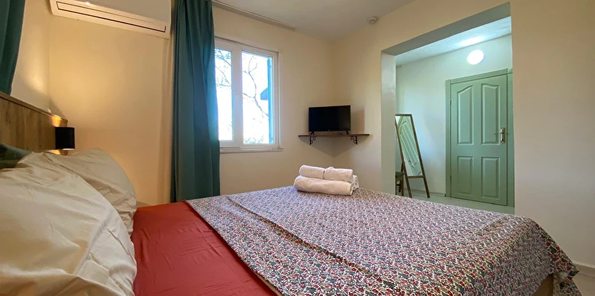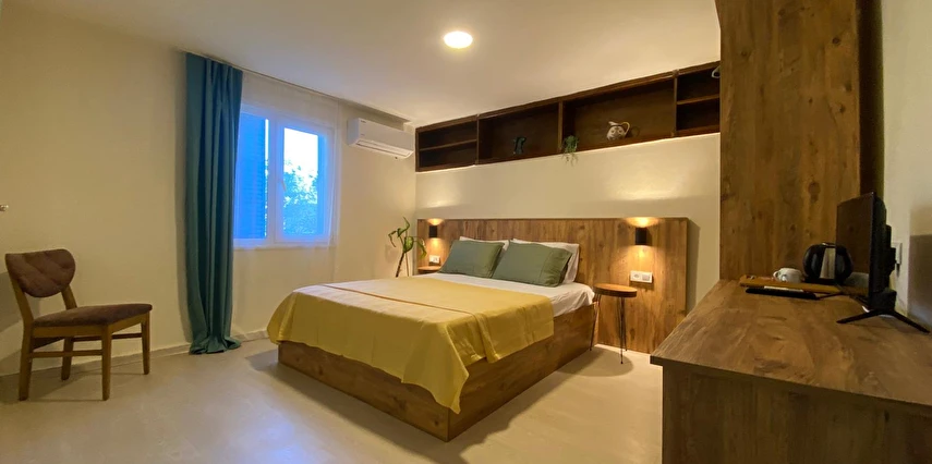 Lounge alanımızda, günün yorgunluğunu atabileceğiniz bir ortam yaratıyoruz. Burada sevdiklerinizle bir araya gelip keyifli sohbetler edebilir, unutulmaz anılar biriktirebilirsiniz. Ana binamızda bulunan beş adet çift kişilik yataklı odamız ve bahçemizdeki iki adet çift kişilik yatak ve tek kişilik yatağa sahip bungalovlarımızla konforlu bir konaklama deneyimi sunuyoruz.