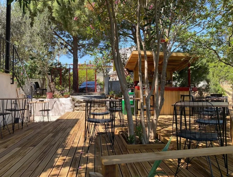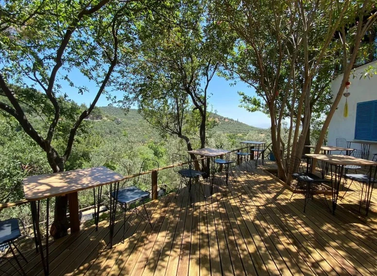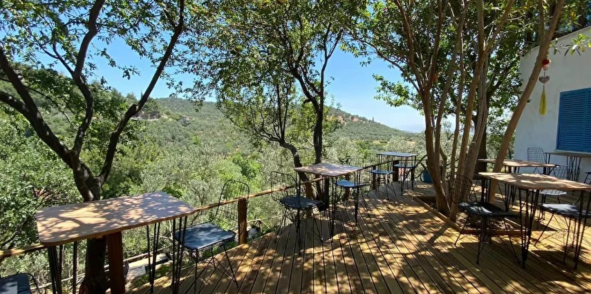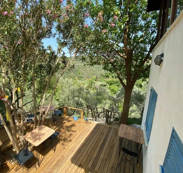 Onlarca zeytin, meşe, çam ve nar ağacı arasında rahatlayabilir, kuş cıvıltıları eşliğinde huzur dolu anlar yaşayabilirsiniz. Sabahları güne enfes bir kahvaltı ile başlamak isteyen misafirlerimizi, yöresel organik ürünlerle dolu açık büfe kahvaltımızla ağırlıyoruz. Lezzetli ve taptaze ürünlerimizle damaklarınıza unutulmaz bir tat sunuyoruz.
