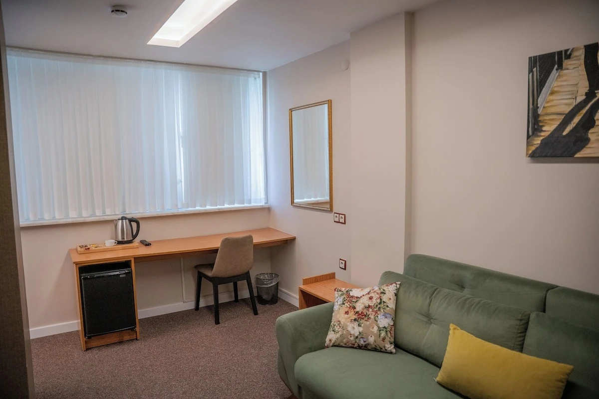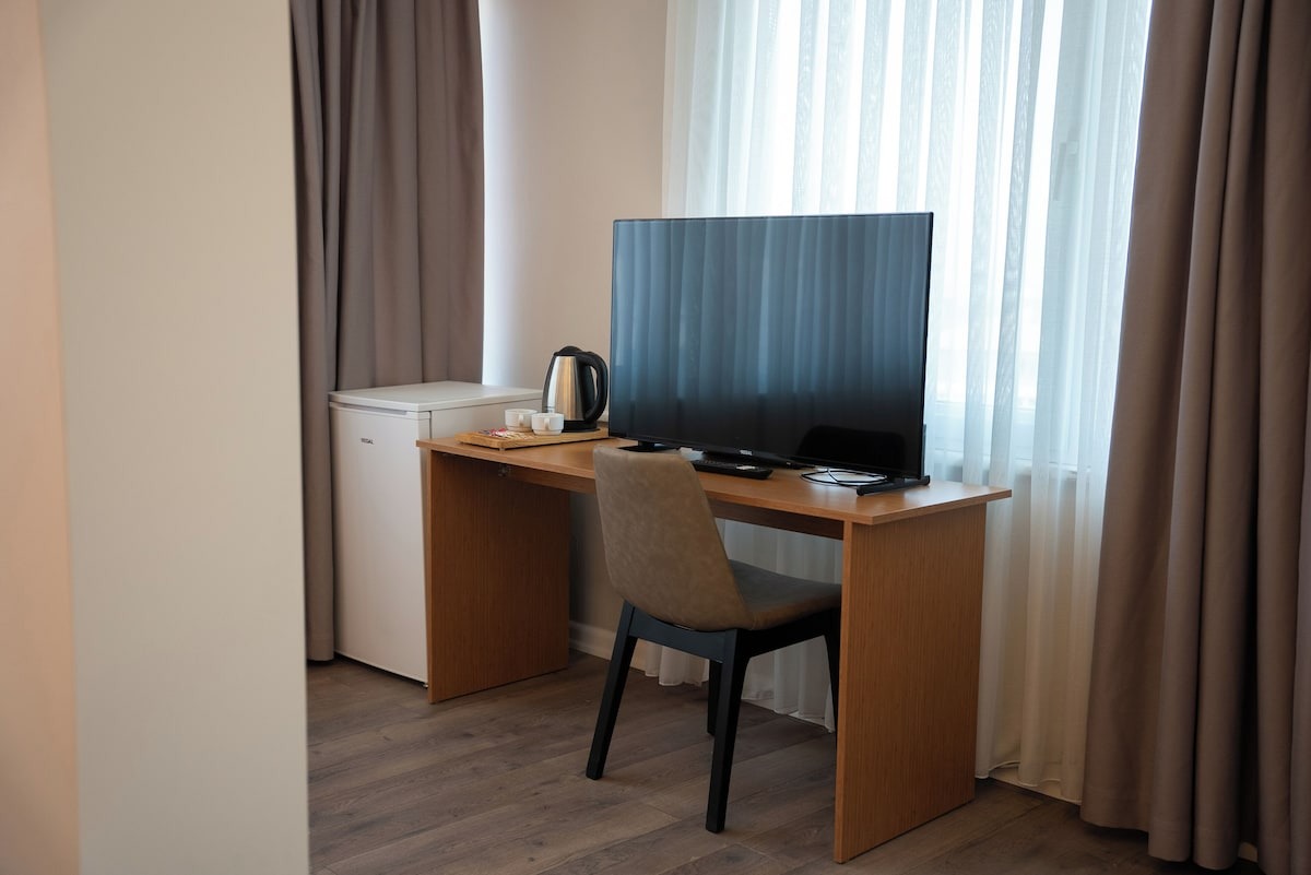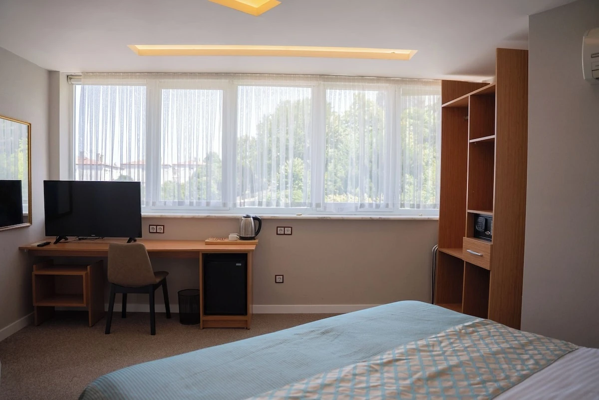 Daha Fazla GösterThe MU Hotel Trabzon; Trabzon Havalimanı, Karadeniz Teknik Üniversitesi (KTÜ), Forum AVM ve sağlık kuruluşlarına yakın, merkezi ve ulaşımı son derece kolay bir konumda yer almaktadır. Konfor ve hizmet kalitesini ön planda tutan tesisimiz, hem iş seyahatleri hem de şehir konaklamaları için ideal bir konaklama alternatifi sunmaktadır. Otel bünyesinde bulunan kafe alanımızda misafirlerimize kahvaltı hizmeti verilmekte olup, gün boyunca kafe konseptiyle hizmet sunulmaktadır