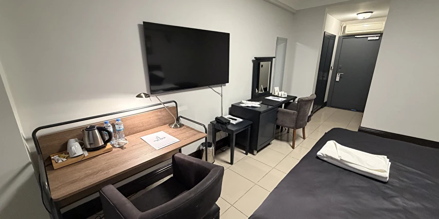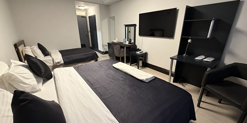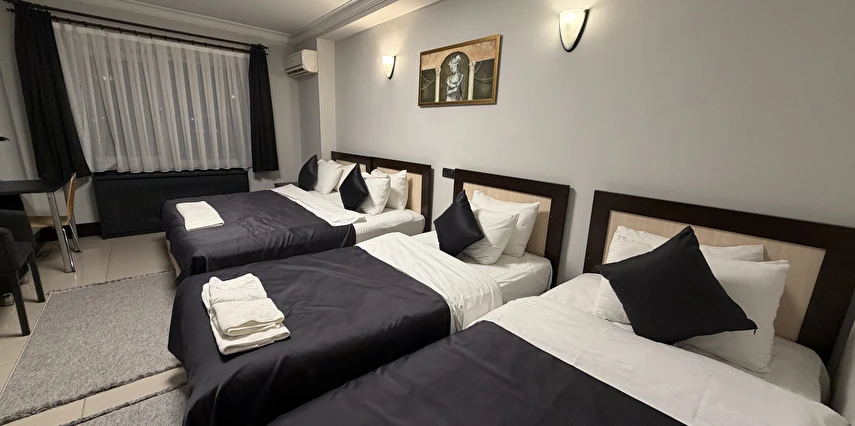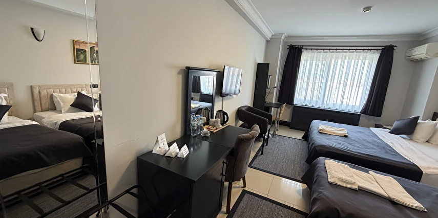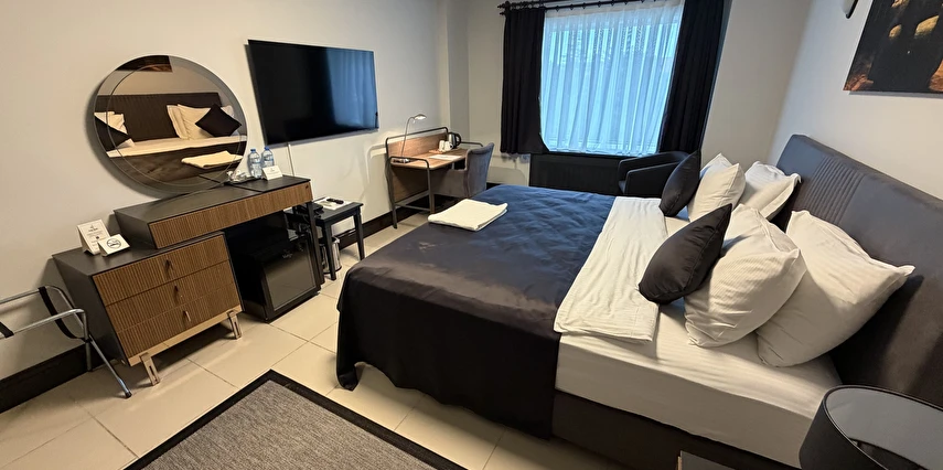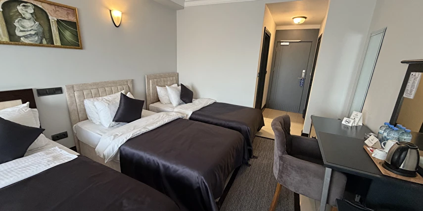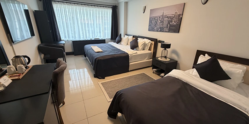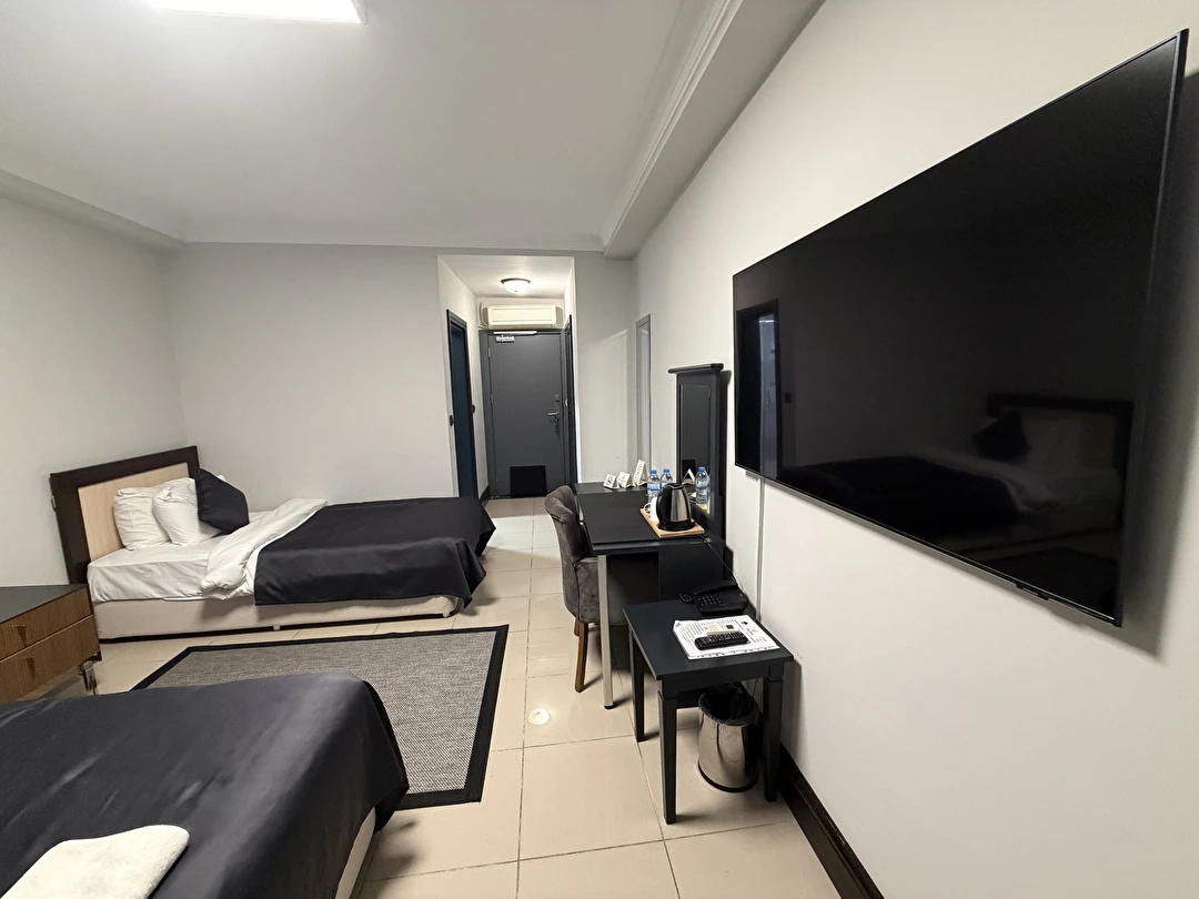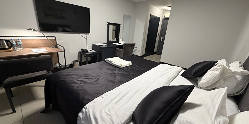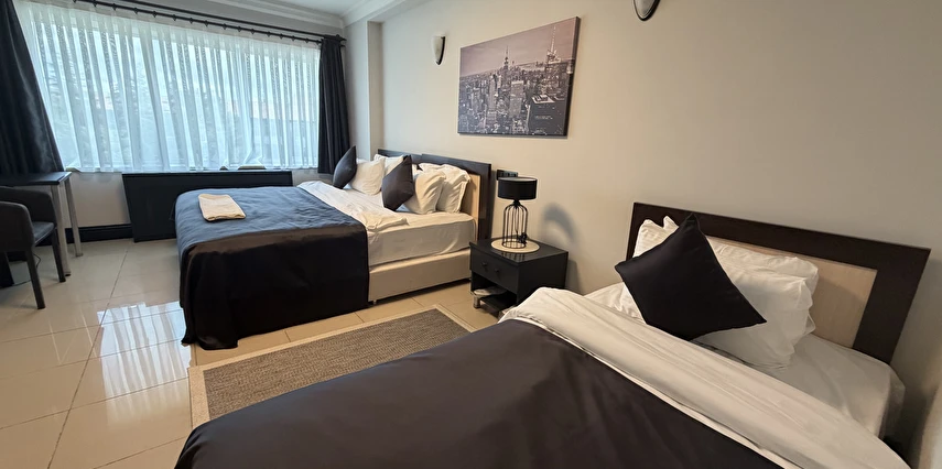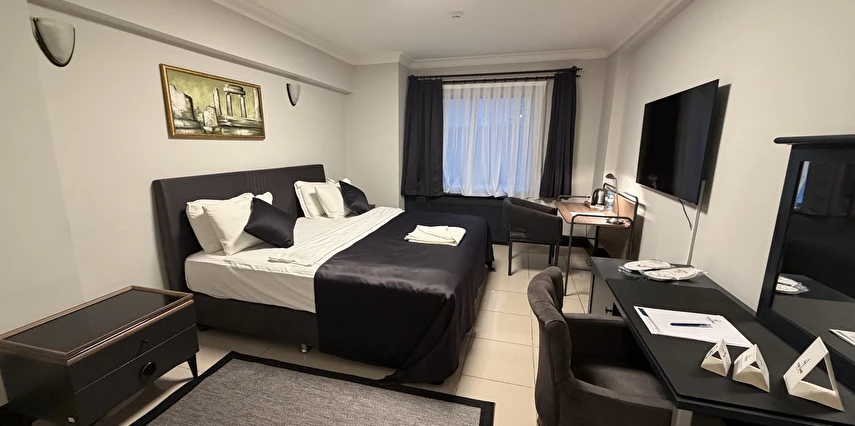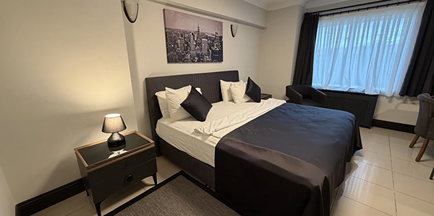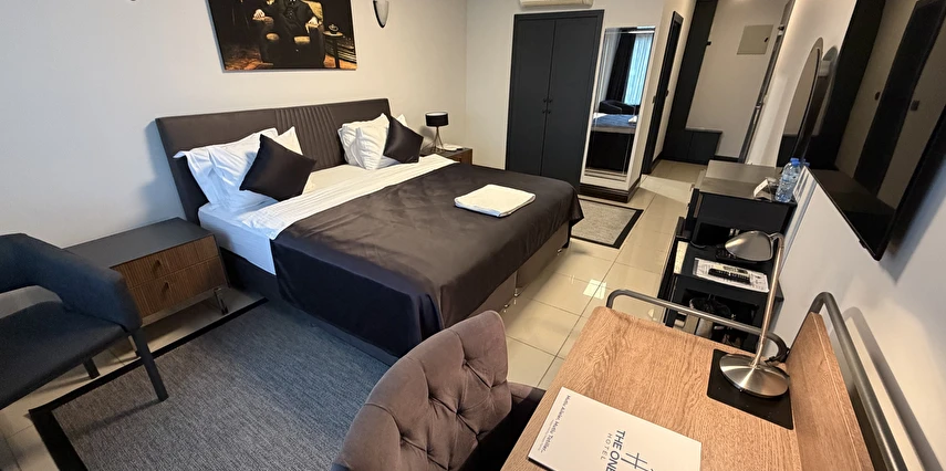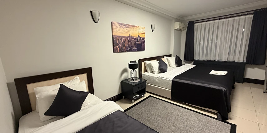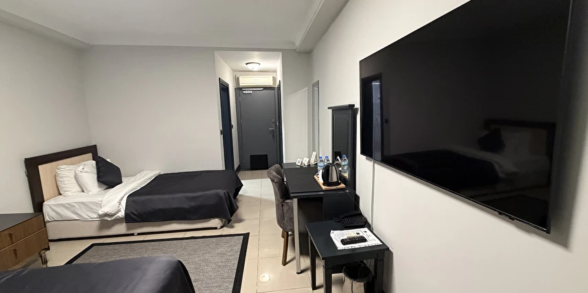 Modern detaylarla tasarlanmış odalar, hem kısa hem uzun süreli konaklamalar için konforlu bir yaşam alanı sunar. Sade dekorasyon, rahat yataklar ve işlevsel donanımlar ön plandadır.