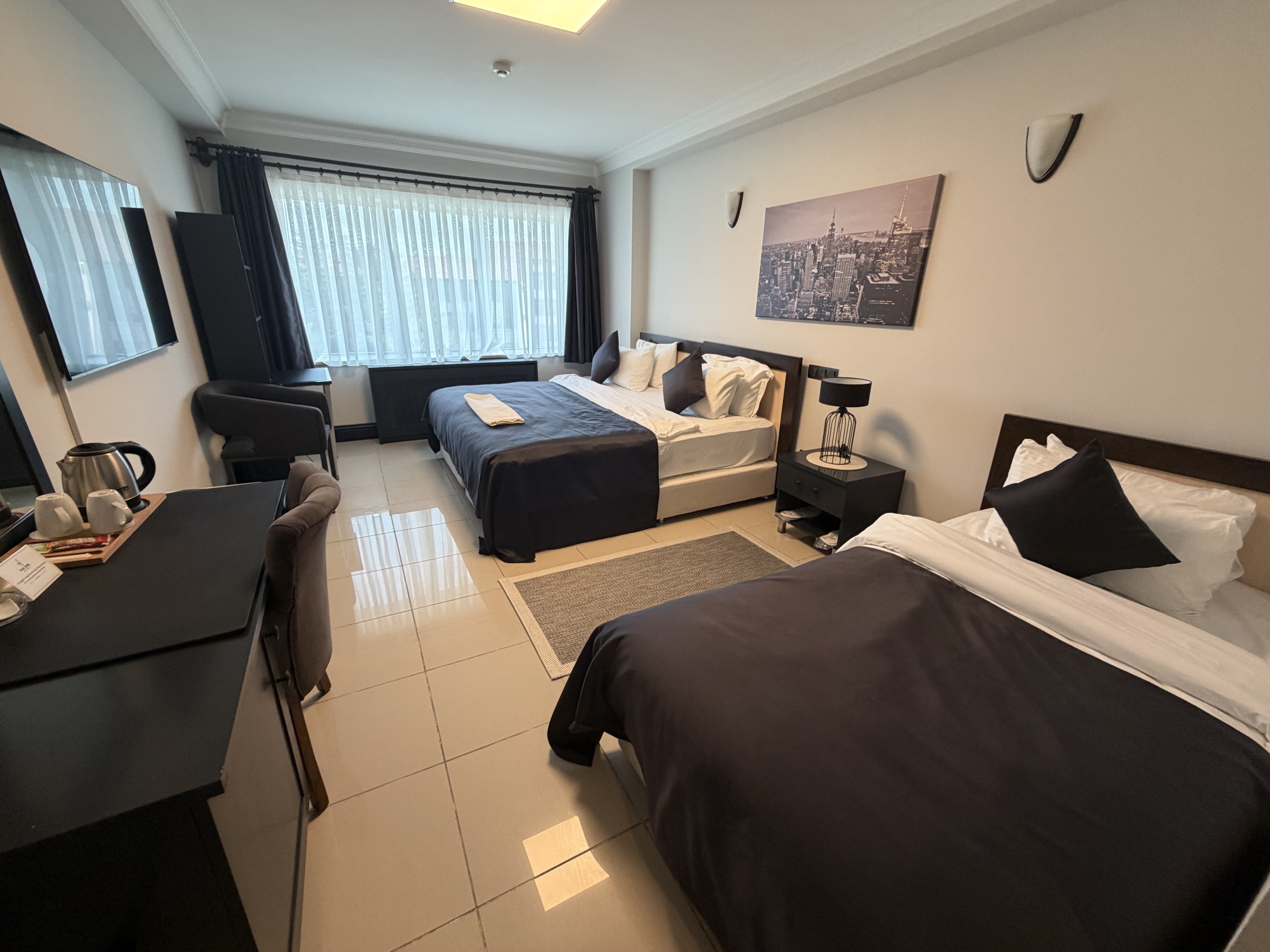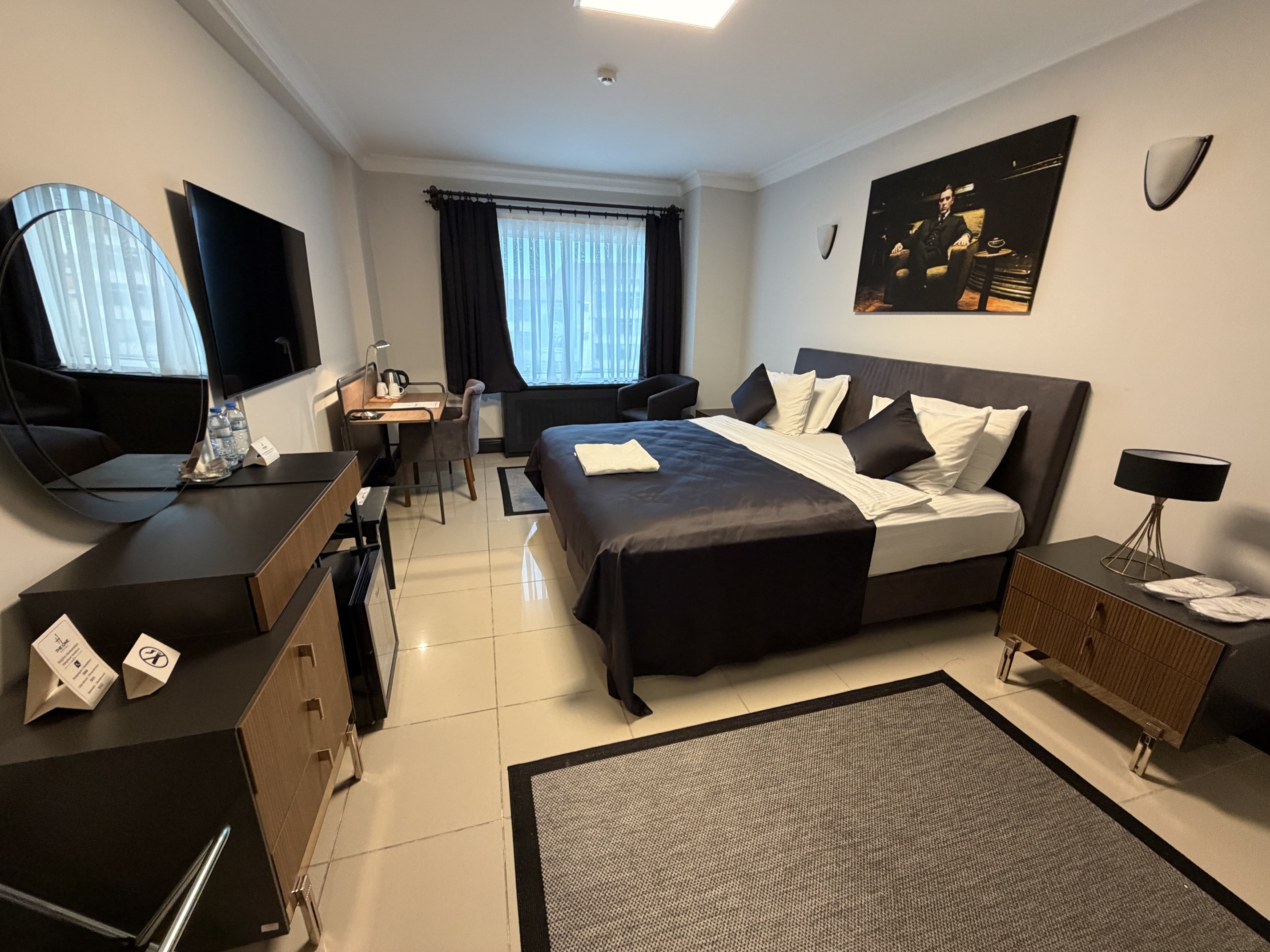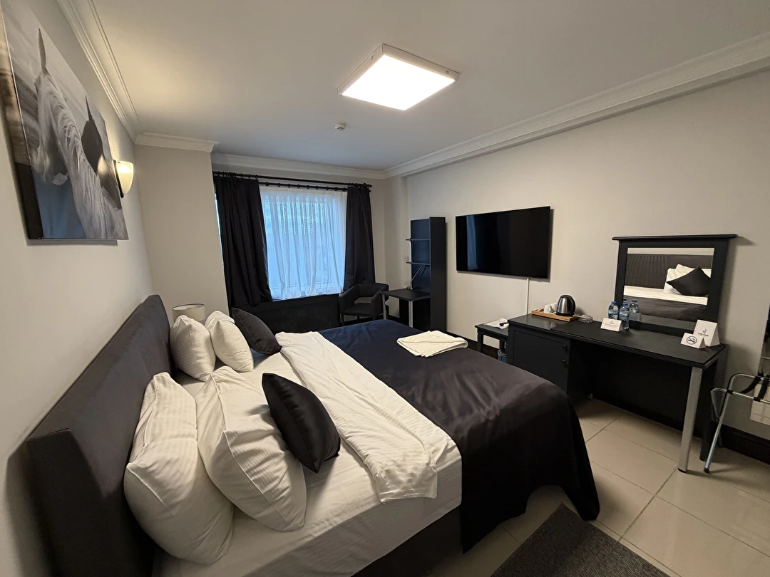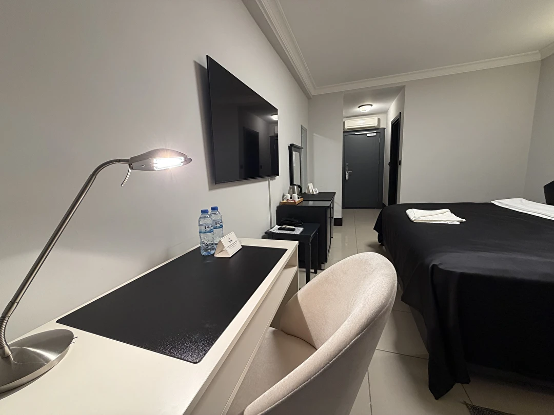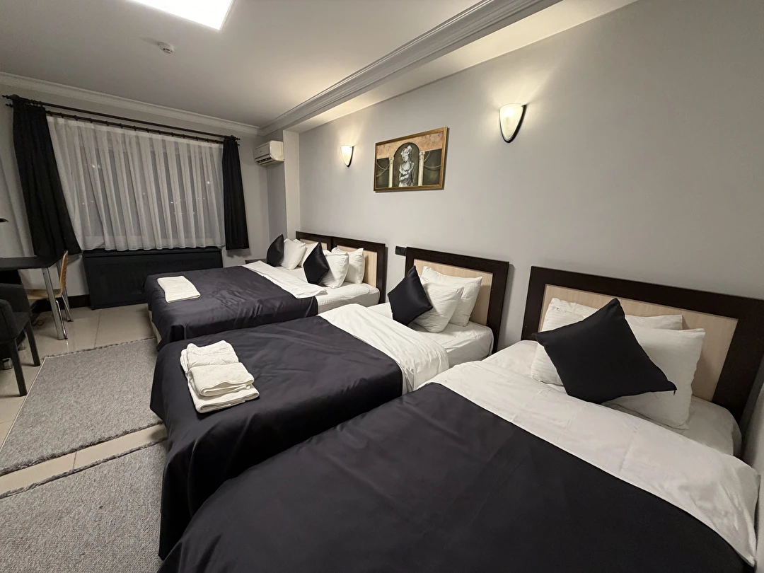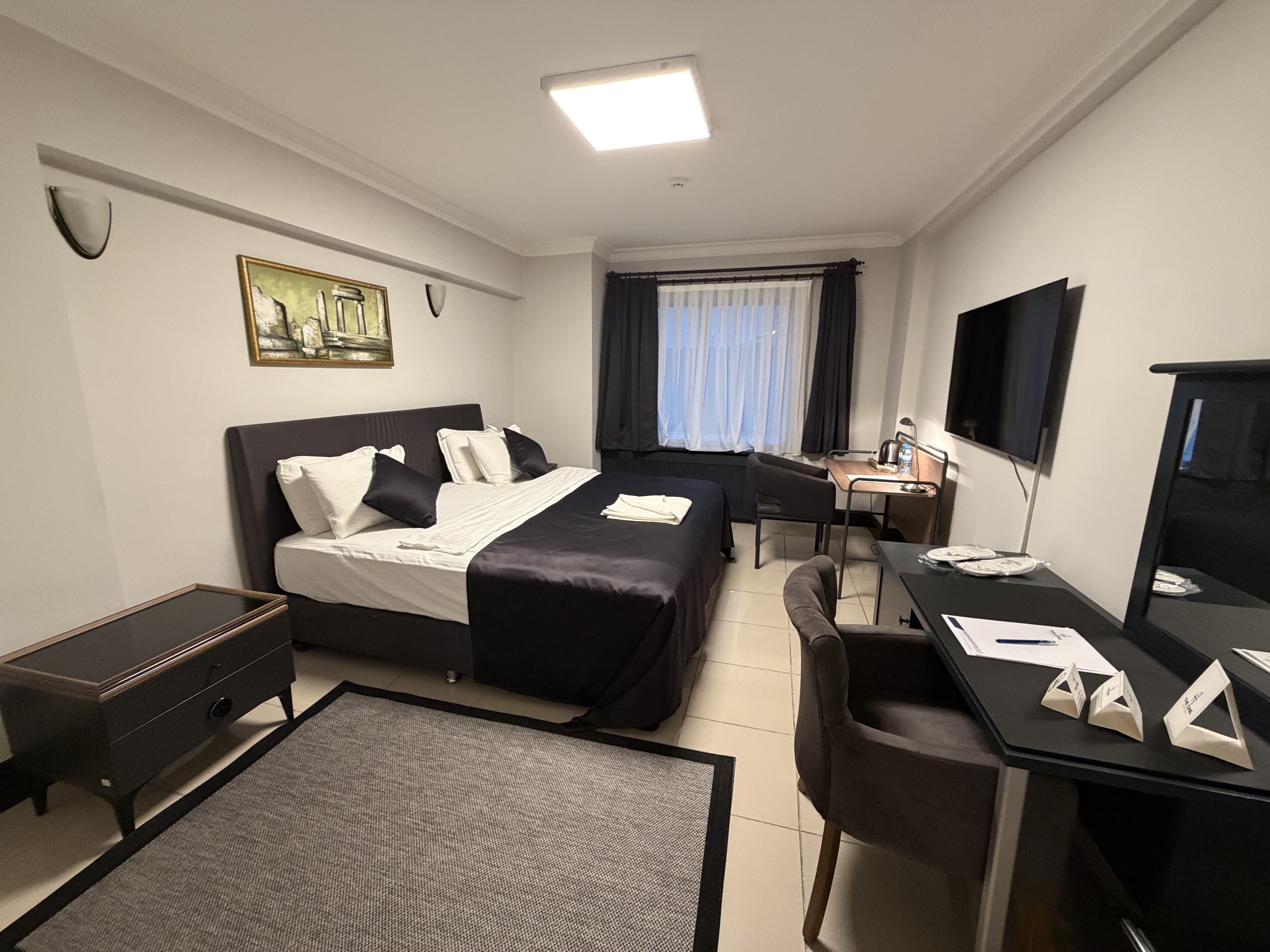Modern detaylarla tasarlanmış odalar, hem kısa hem uzun süreli konaklamalar için konforlu bir yaşam alanı sunar. Sade dekorasyon, rahat yataklar ve işlevsel donanımlar ön plandadır.