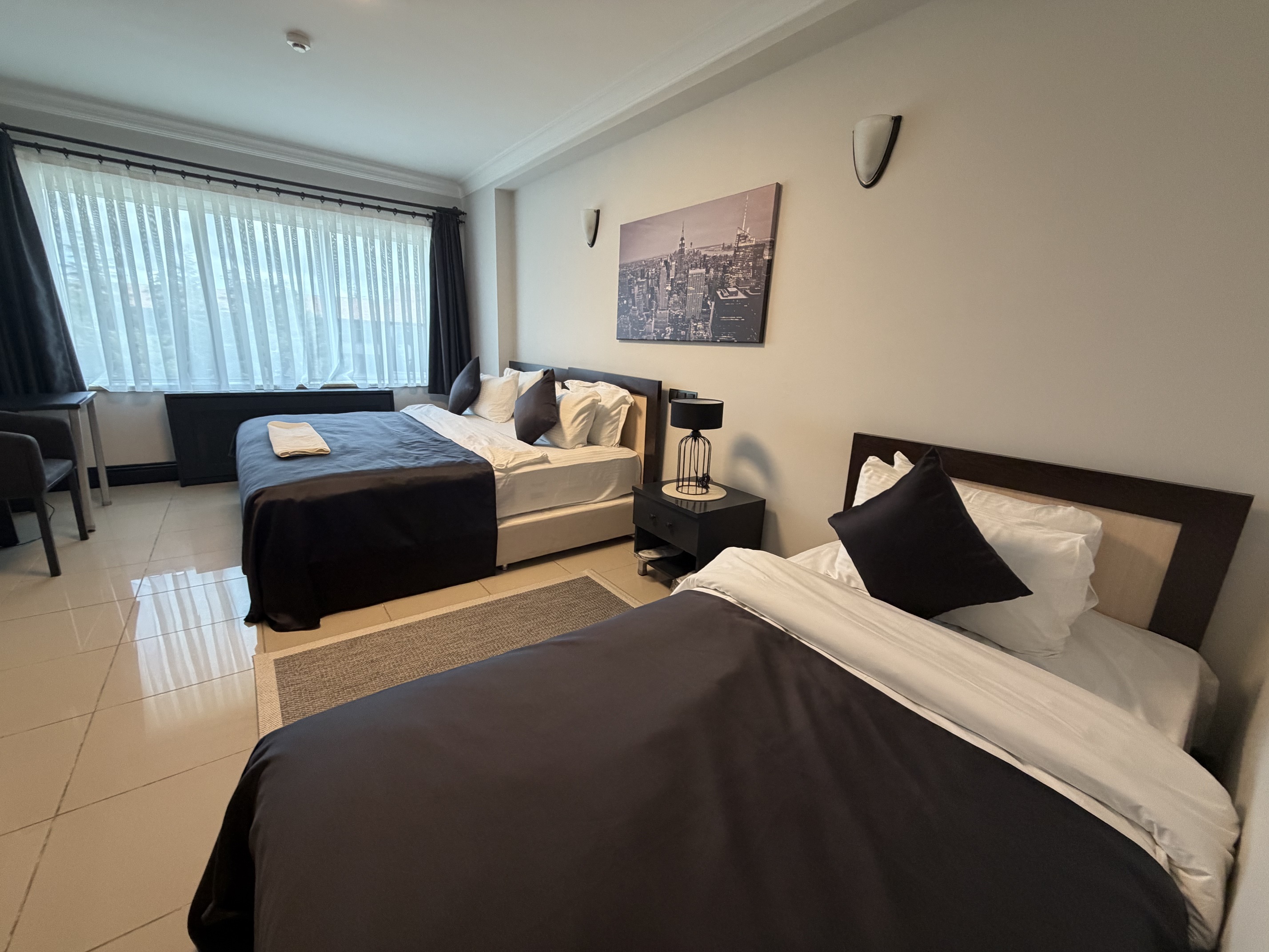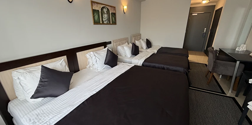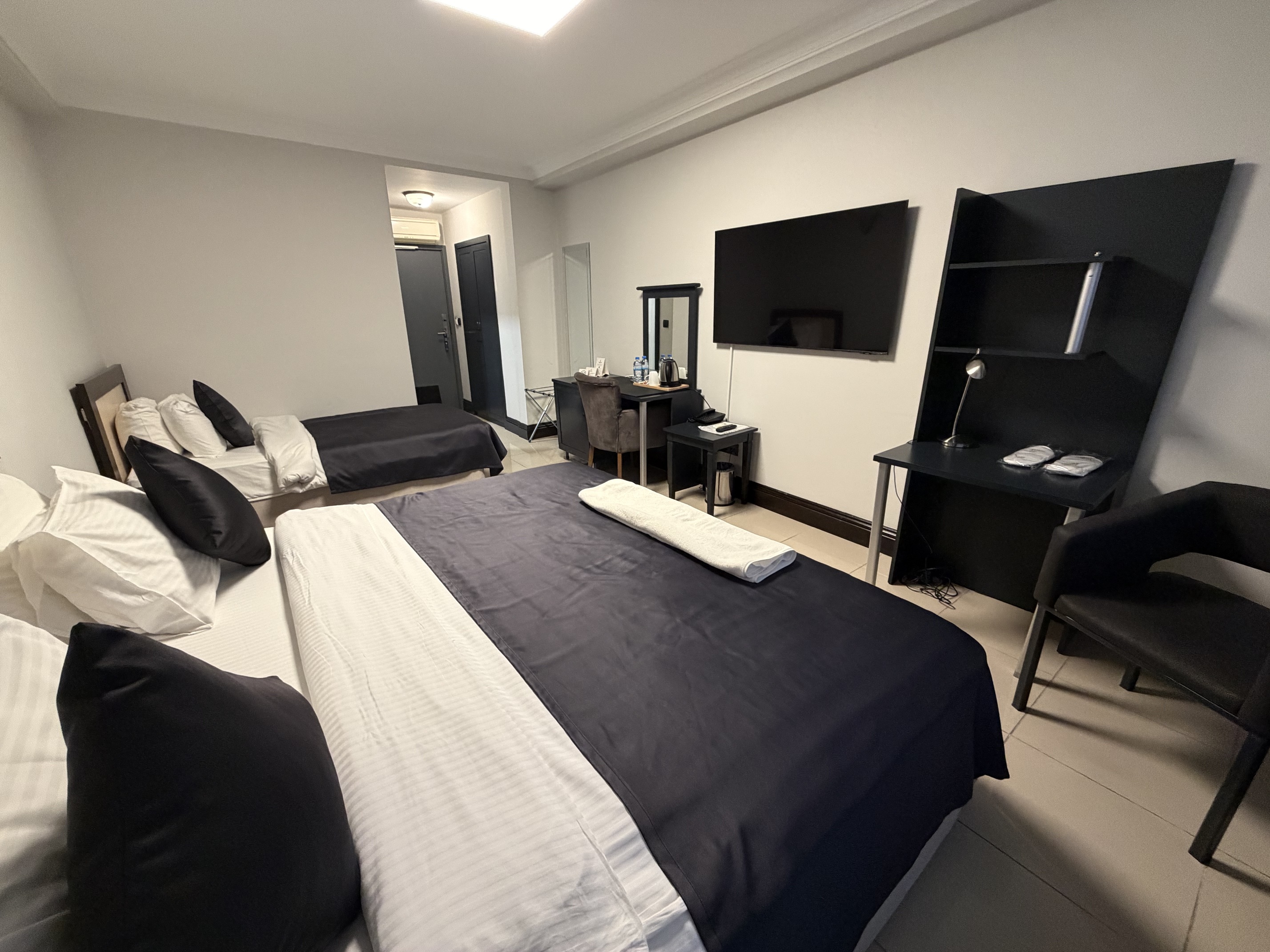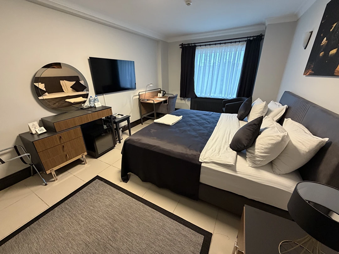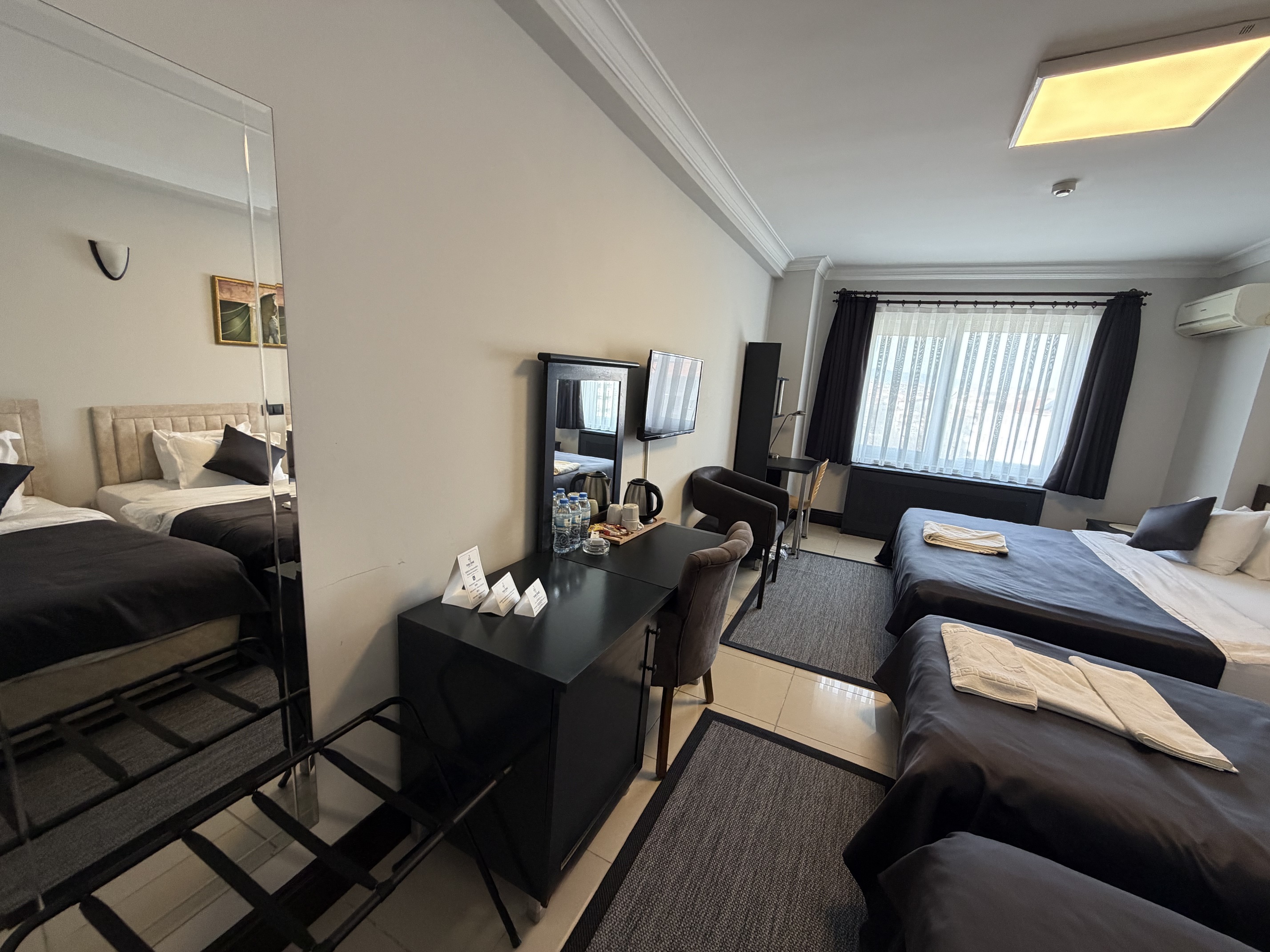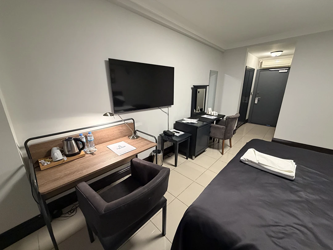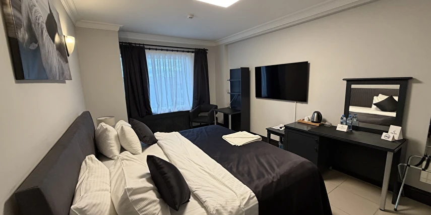 Modern detaylarla tasarlanmış odalar, hem kısa hem uzun süreli konaklamalar için konforlu bir yaşam alanı sunar. Sade dekorasyon, rahat yataklar ve işlevsel donanımlar ön plandadır.