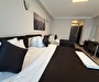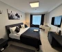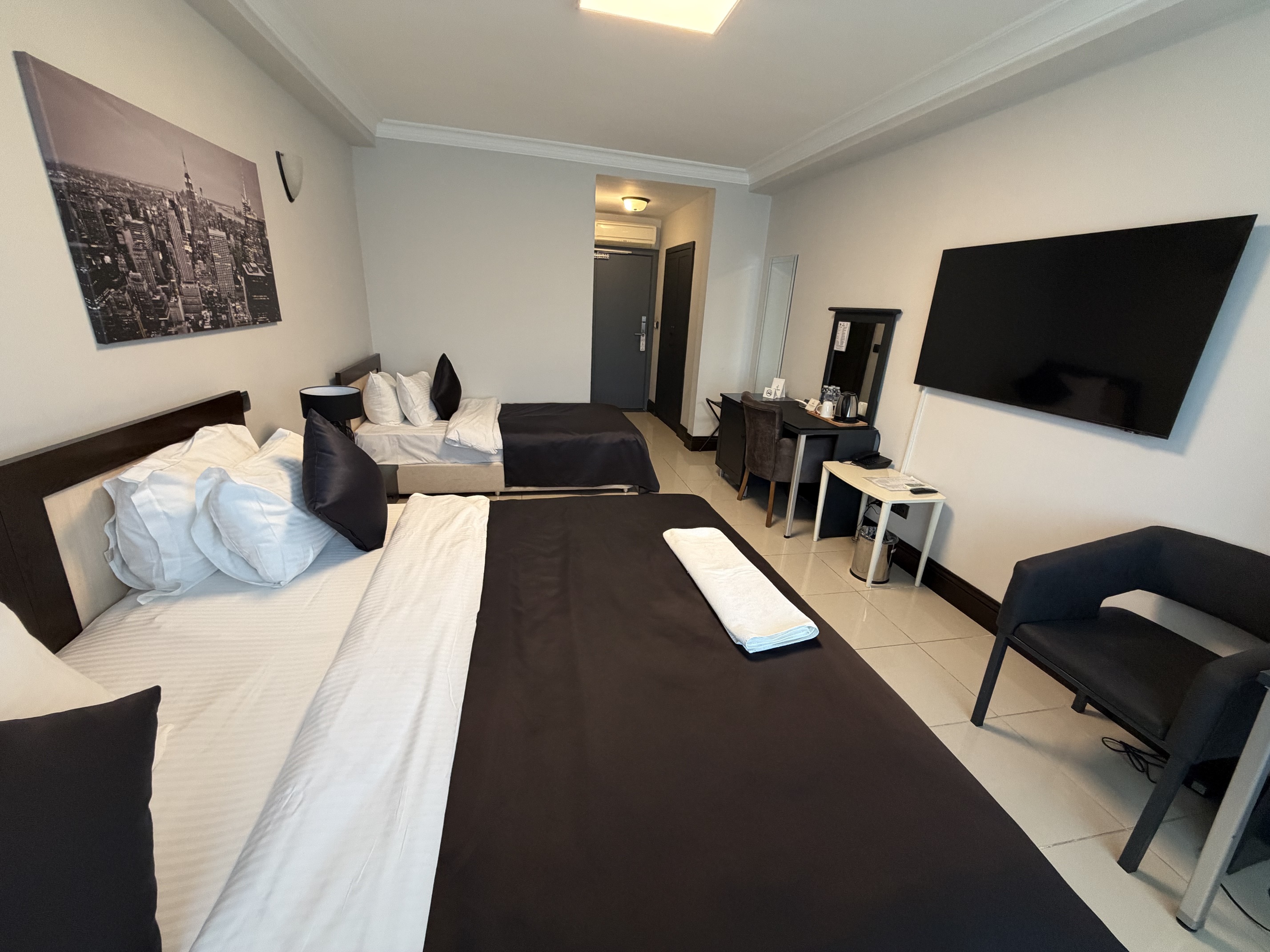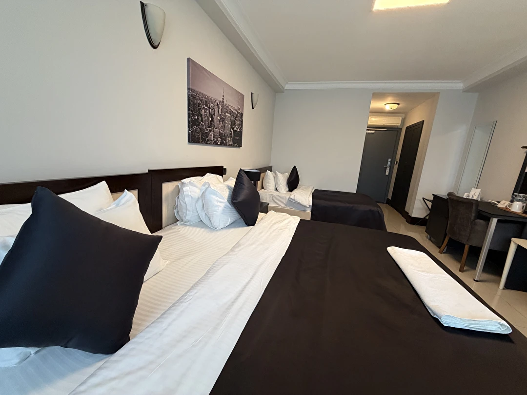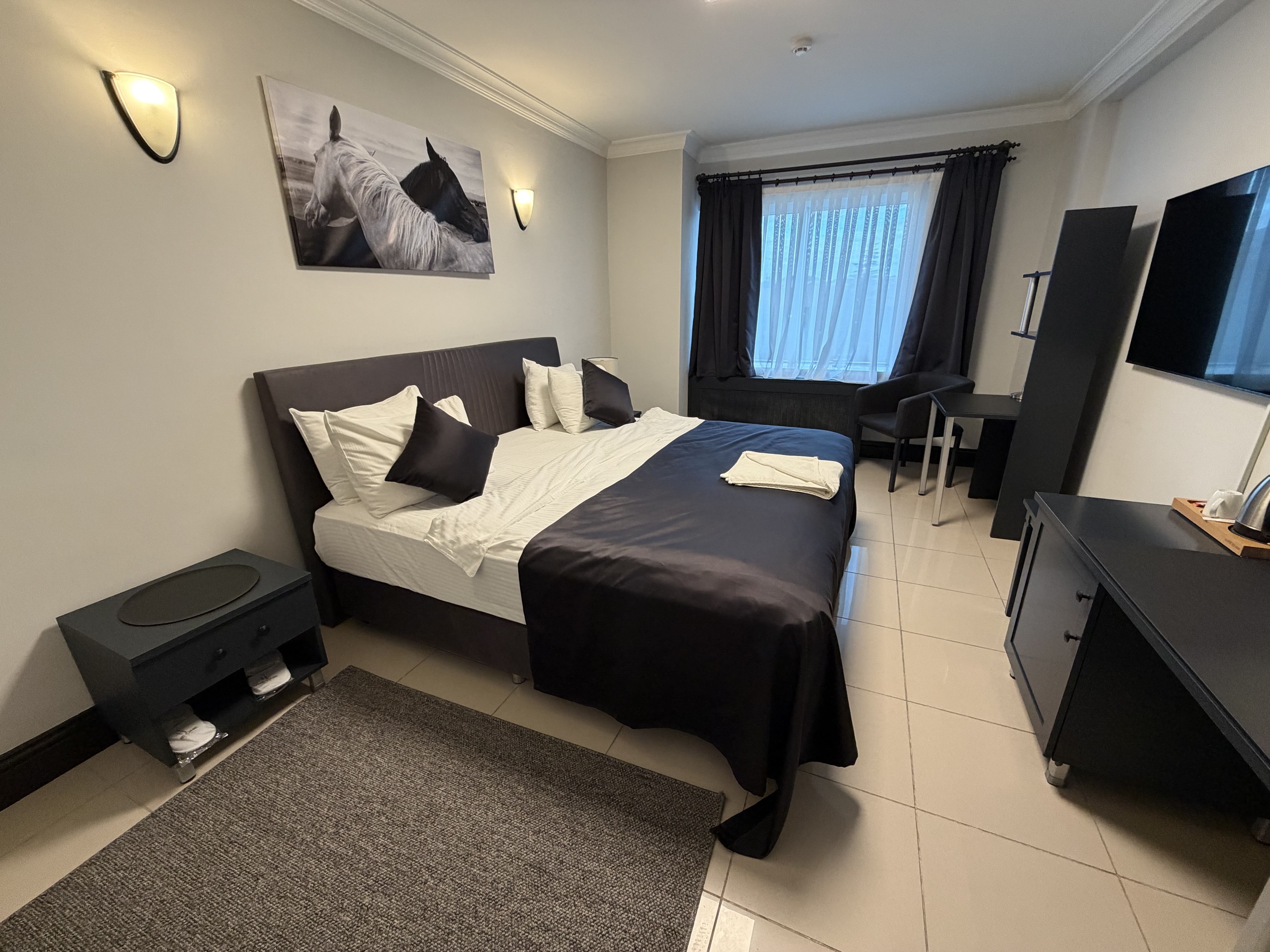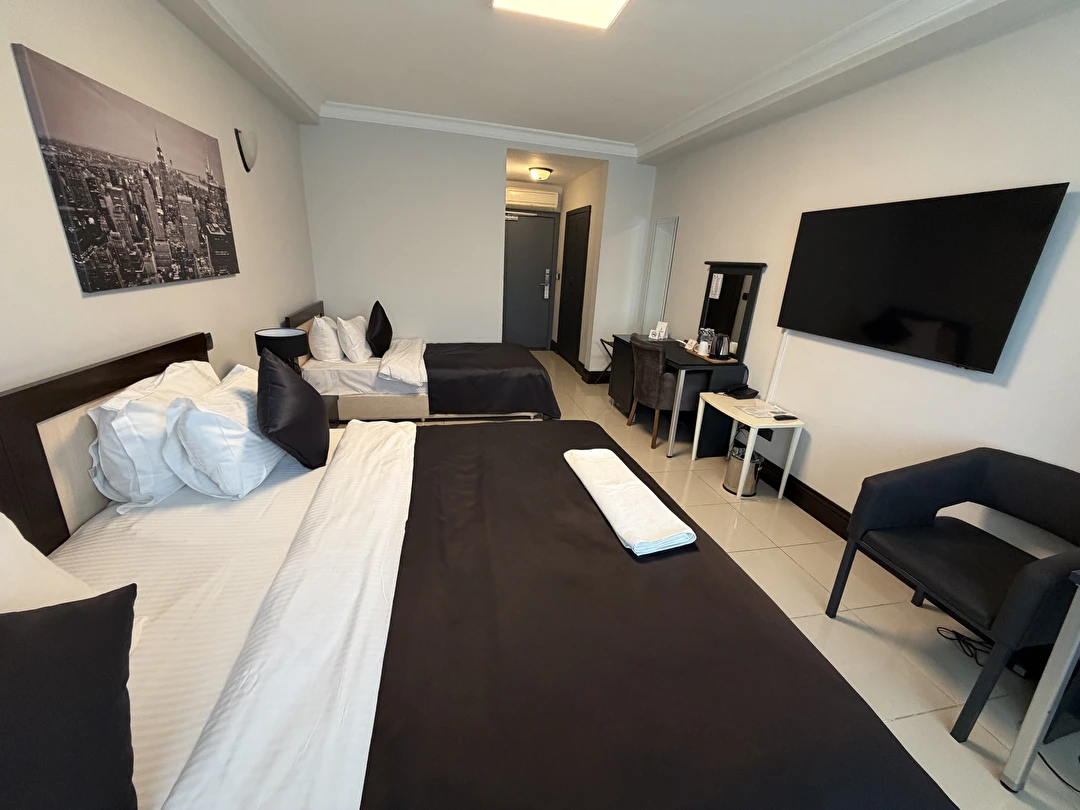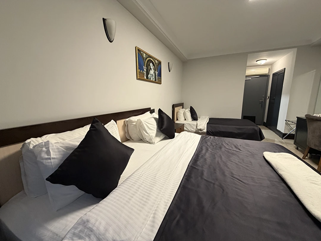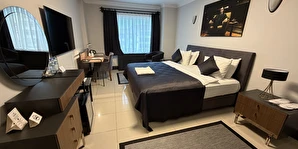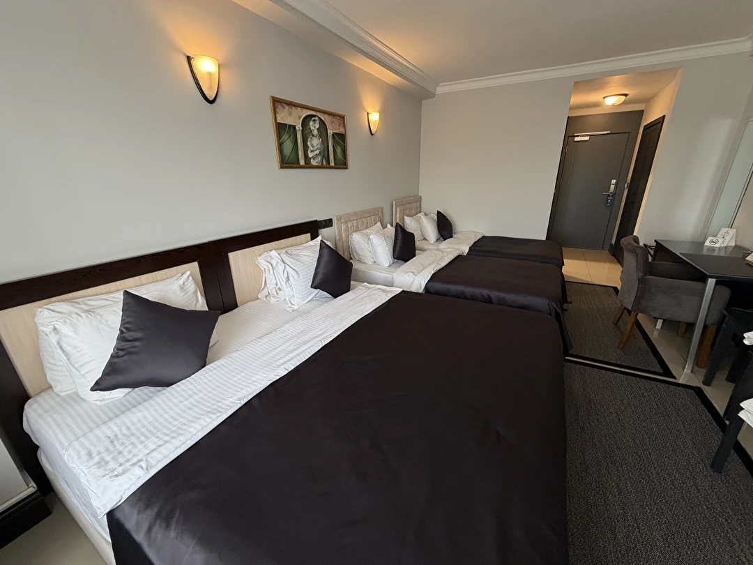 Modern detaylarla tasarlanmış odalar, hem kısa hem uzun süreli konaklamalar için konforlu bir yaşam alanı sunar. Sade dekorasyon, rahat yataklar ve işlevsel donanımlar ön plandadır.