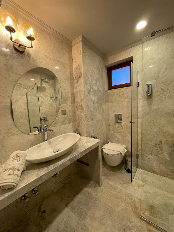 The Pilgrim Ephesus, 8 odalı butik bir işletmedir. Sadece oda konseptinde hizmet vermektedir. Odalarında klima, Wi-Fi, banyo, duş, ücretsiz banyo malzemesi ve havlu seti gibi olanaklar mevcuttur.