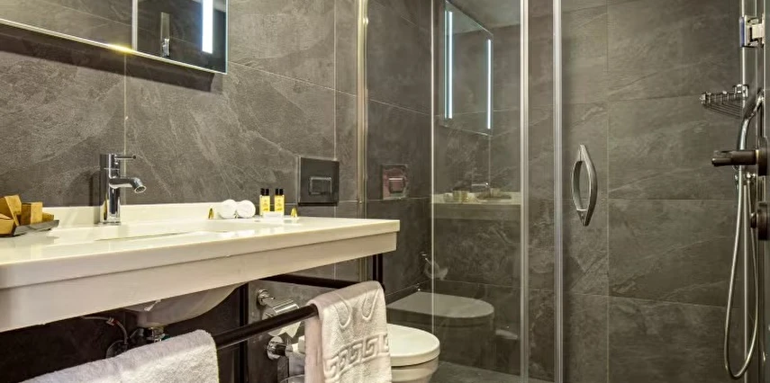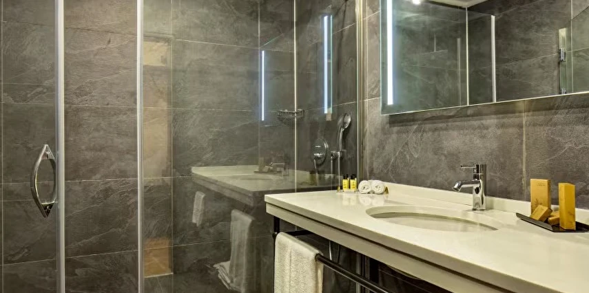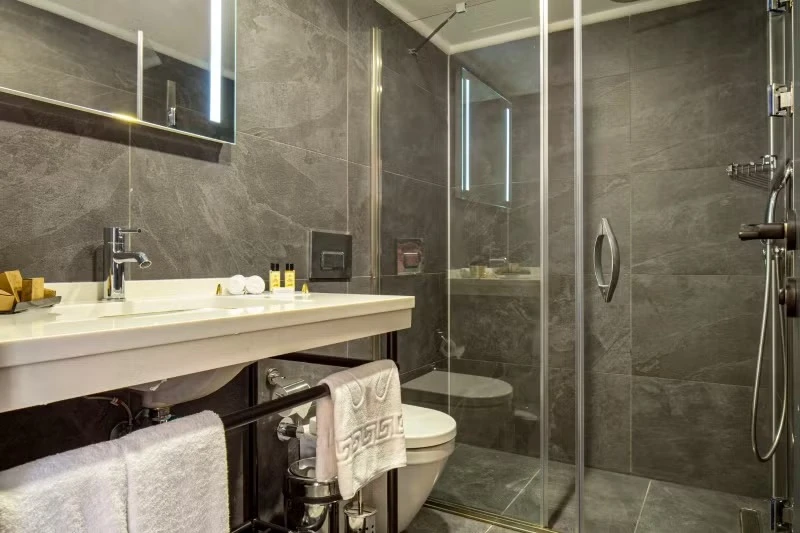 Ücretsiz banyo ürünleri ve modern duş alanı bulunan banyolar