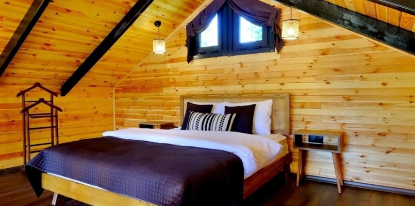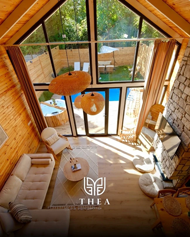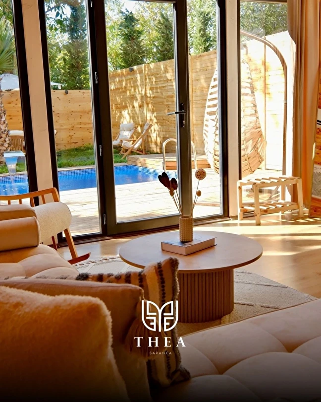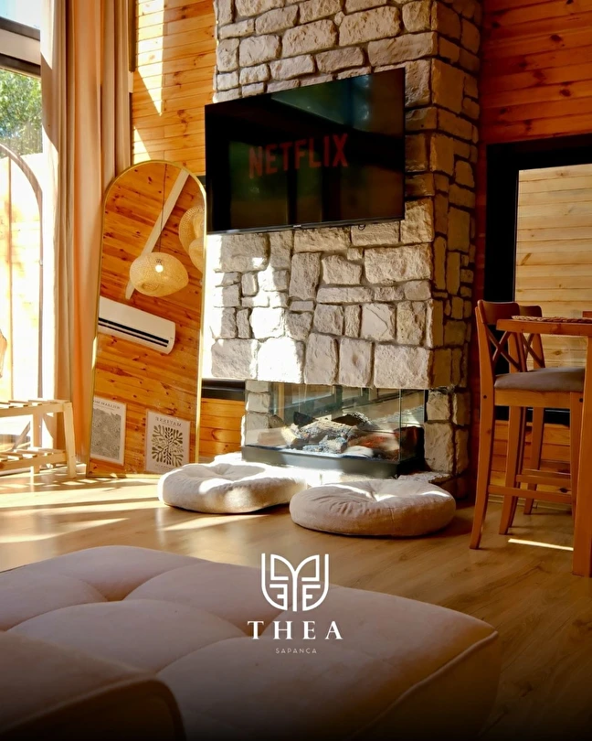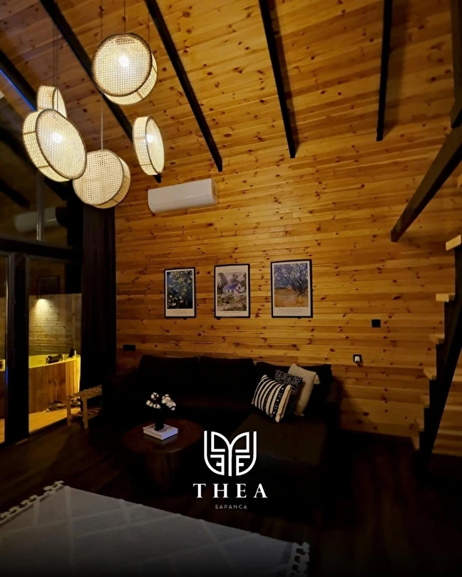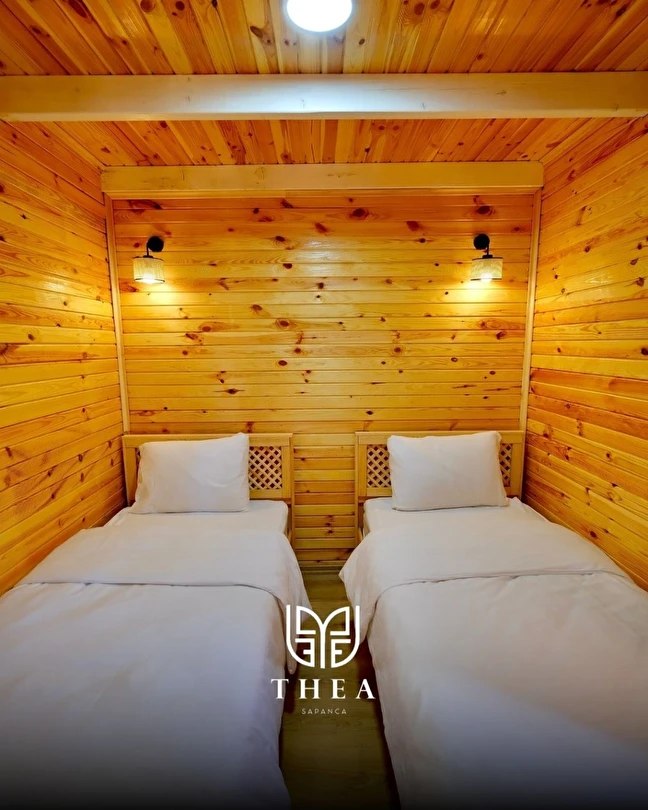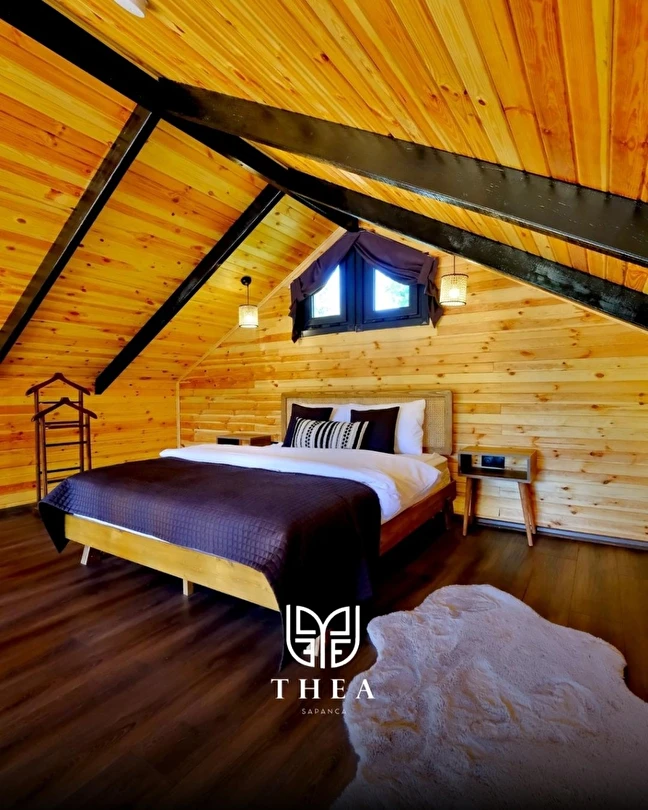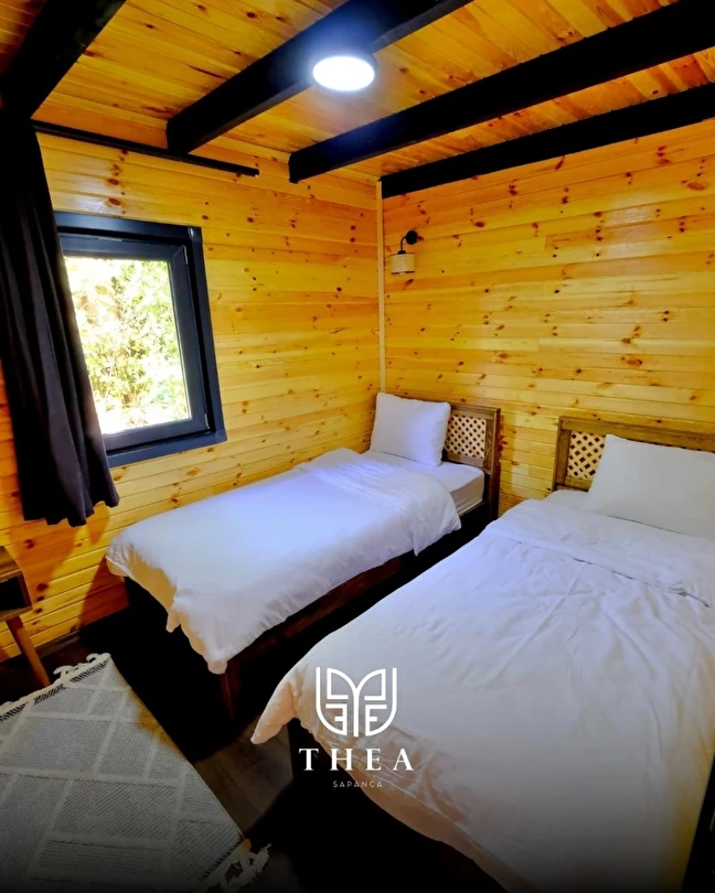 Thea Sapanca'nın özenle tasarlanmış bungalov odalarıyla orman manzarası eşliğinde konforlu bir konaklama sağlamak için tüm detaylar düşünülerek hazırlanmıştır. Geniş yaşam alanları, modern dekorasyonu ve özel teraslarıyla misafirlerine eşsiz bir atmosfer sunar.