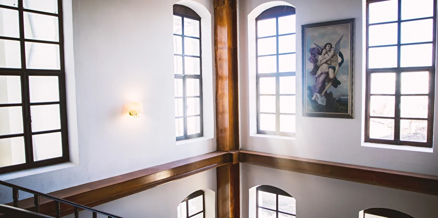 Tesis 200 yıllık tarihi bir Rum okulu olan taş konak ve aynı bahçede bulunan tarihi bir ahşap konaktan oluşmaktadır. Restore edilmiş her iki bina da yüksek tavanlara sahiptir. Tarihi doku olduğu gibi korunarak hizmete açılmıştır. A'la carte restaurantımız bulunmaktadır. Orta ölçekli toplantı organizasyonları için ideal konumdadır. Enfes lezzetlerden oluşan kahvaltı servisimiz siz değerli misafirlerimizin hizmetindedir.