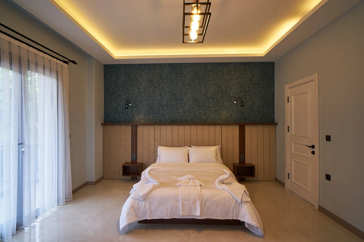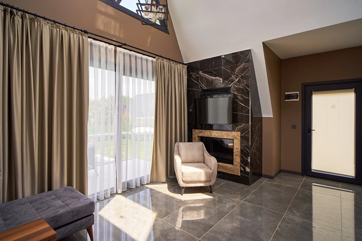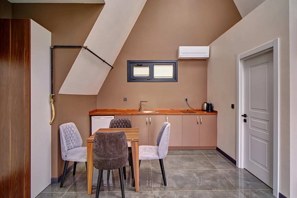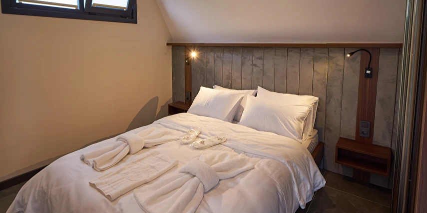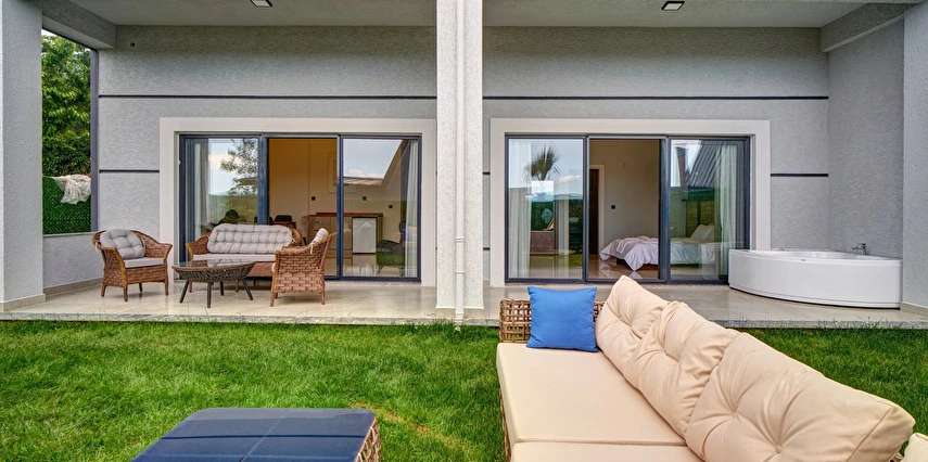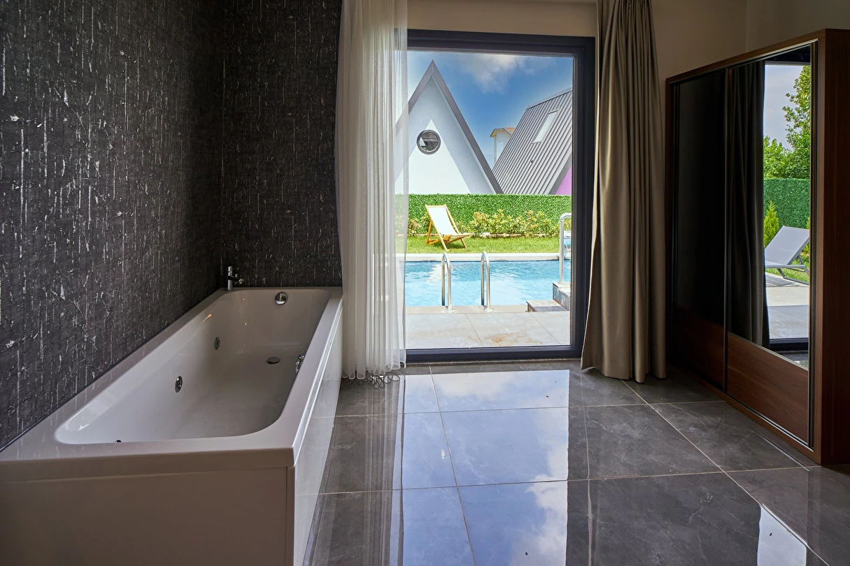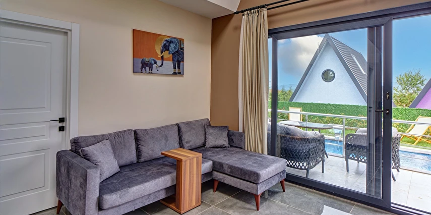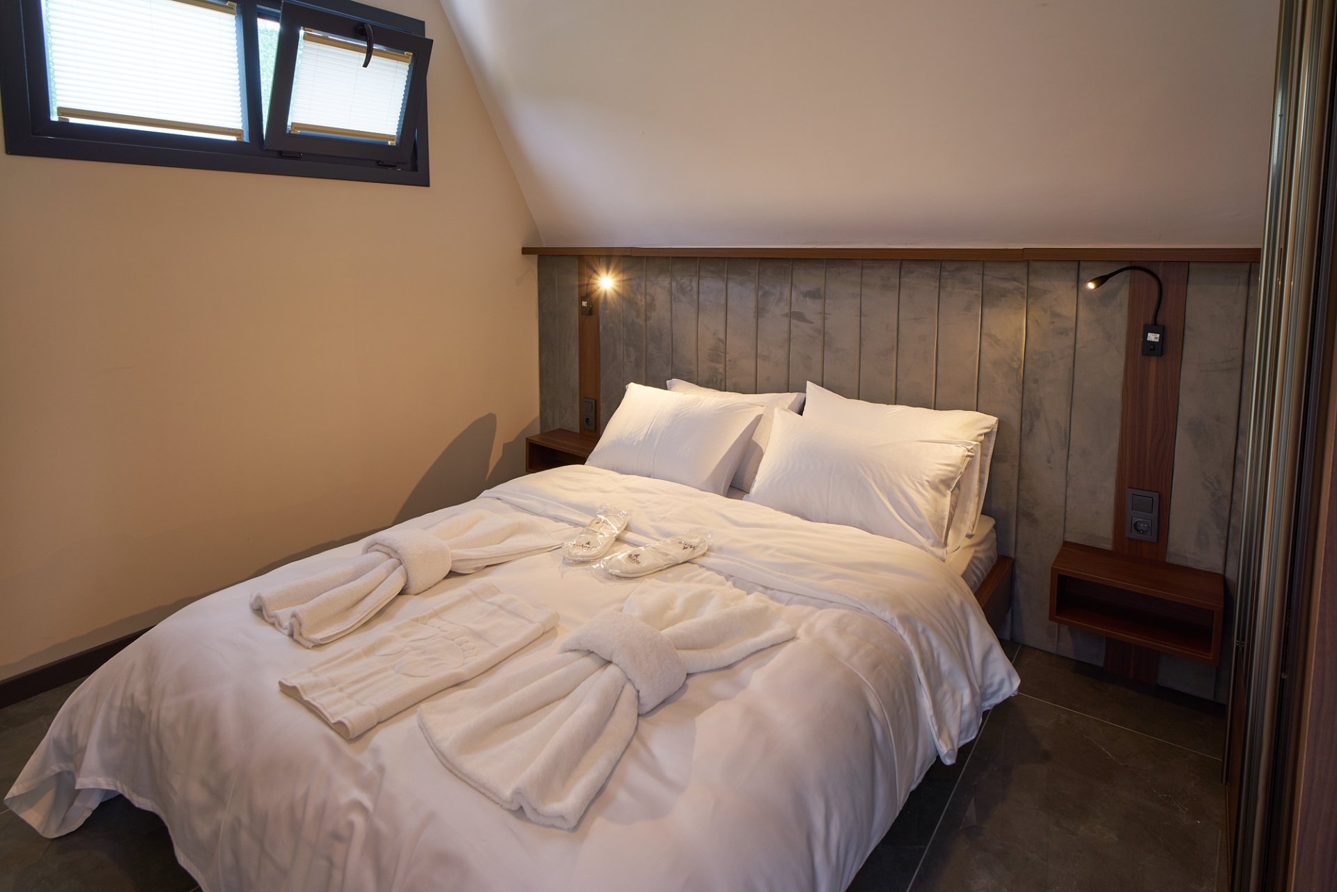 Daha Fazla GösterTesis, unutulmaz anılar biriktireceğiniz ve sevdikleriniz ile birlikte doyasıya tatil keyfini yaşayacağınız benzersiz bir konaklama deneyimi vadediyor. Isıtmalı havuzlar, jakuzi, şömine keyfi ve çok daha fazlası misafirleri bekliyor. Tesiste 5 kilograma kadar evcil hayvan kabul ediliyor.