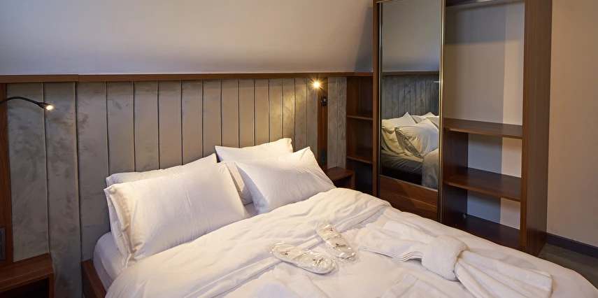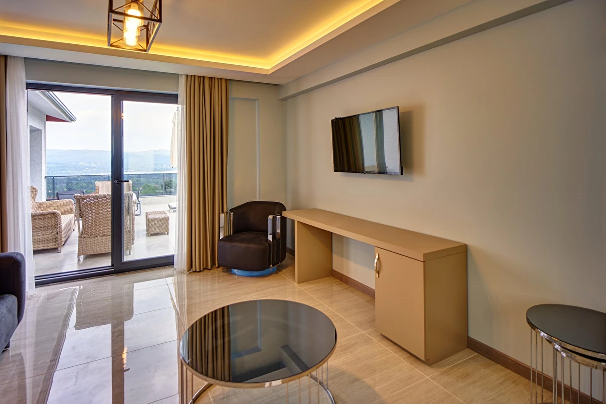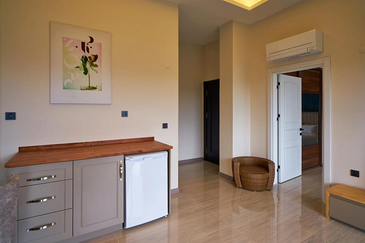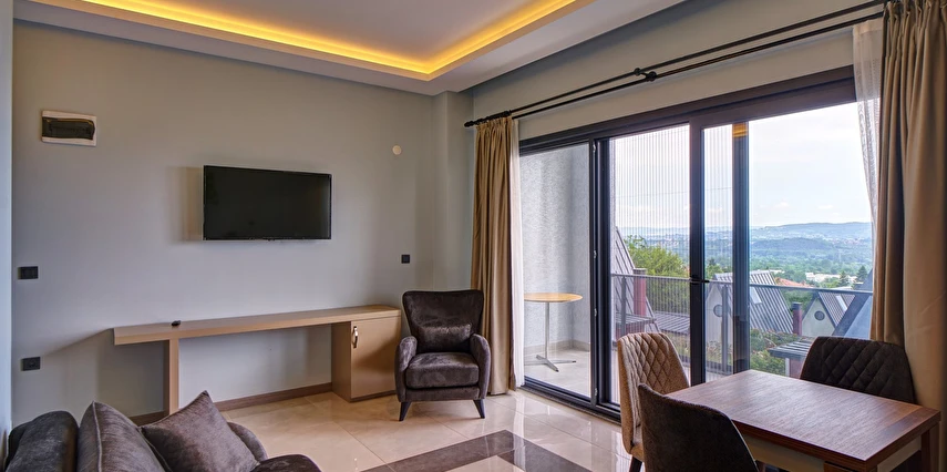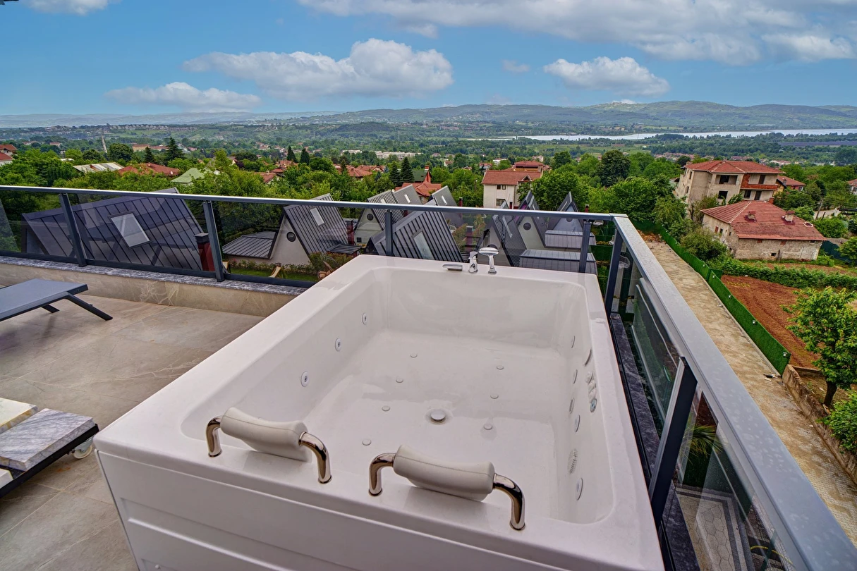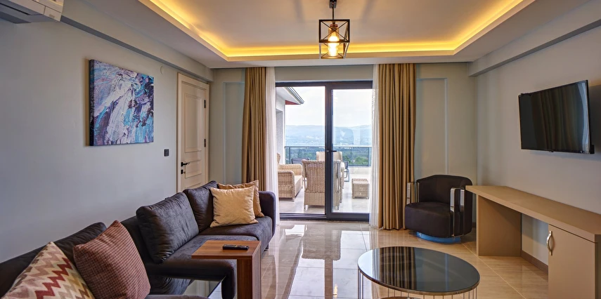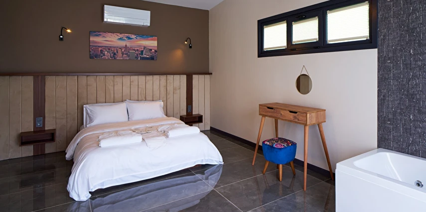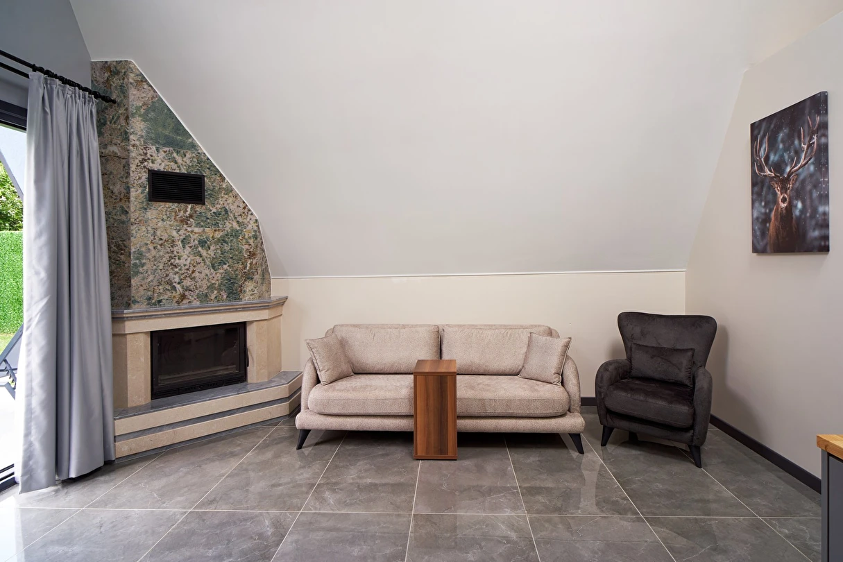 Daha Fazla GösterTesis, unutulmaz anılar biriktireceğiniz ve sevdikleriniz ile birlikte doyasıya tatil keyfini yaşayacağınız benzersiz bir konaklama deneyimi vadediyor. Isıtmalı havuzlar, jakuzi, şömine keyfi ve çok daha fazlası misafirleri bekliyor. Tesiste 5 kilograma kadar evcil hayvan kabul ediliyor.