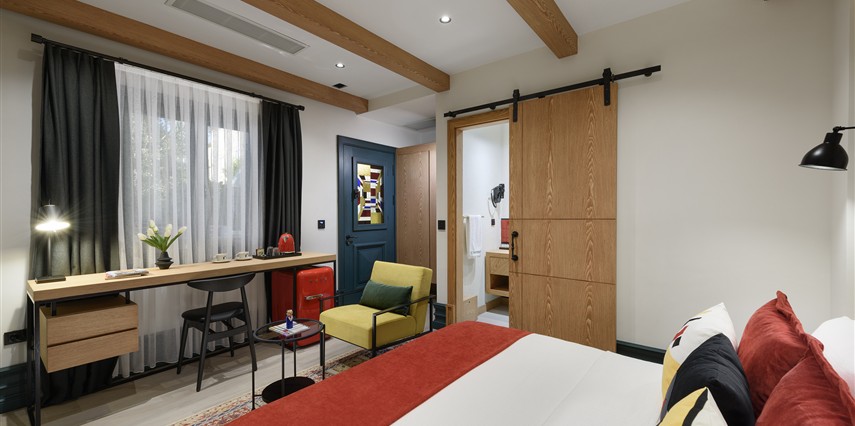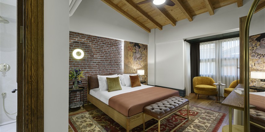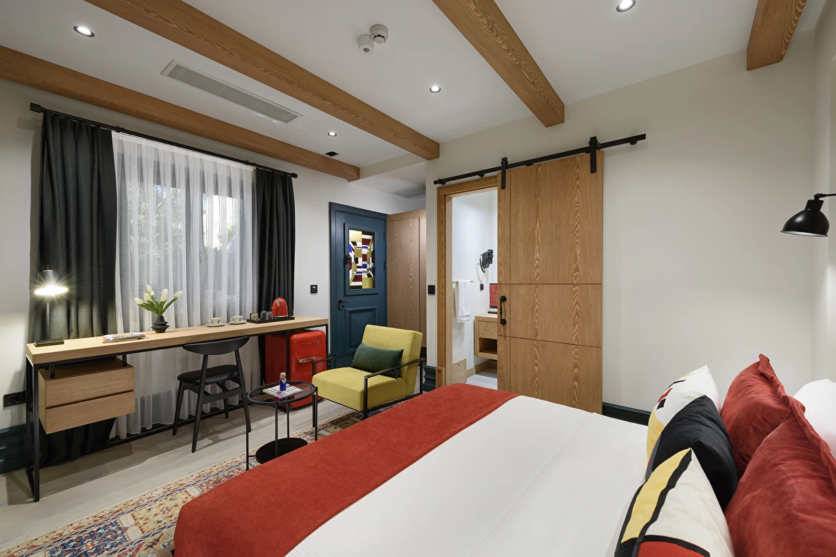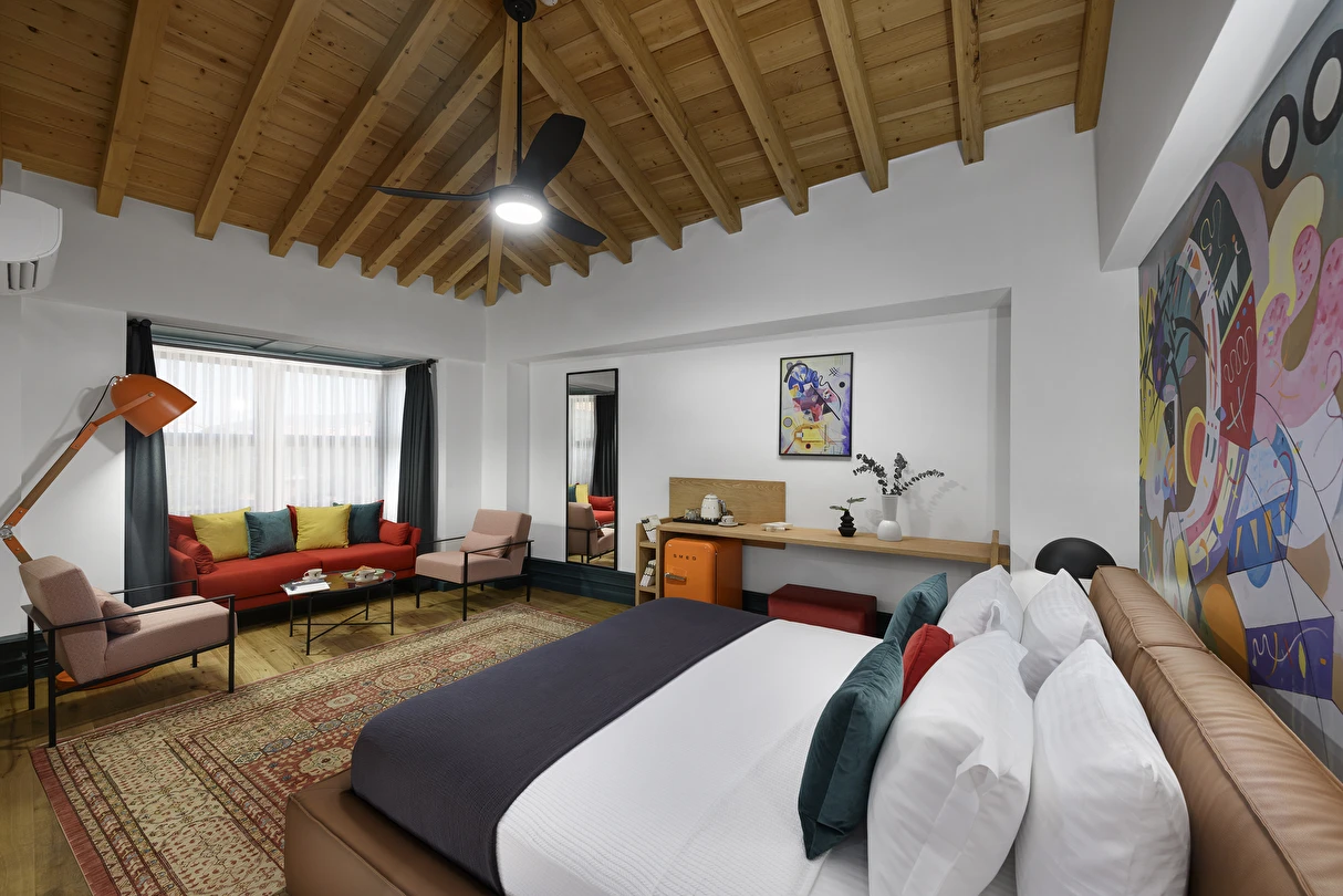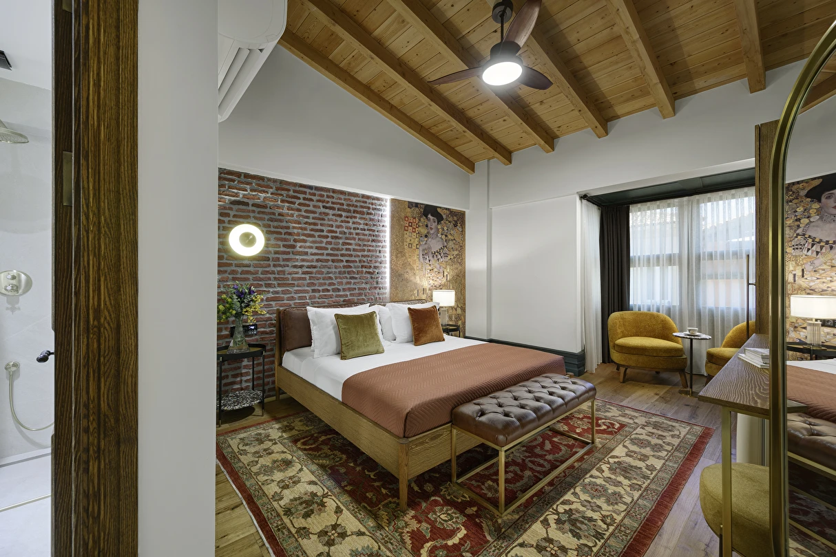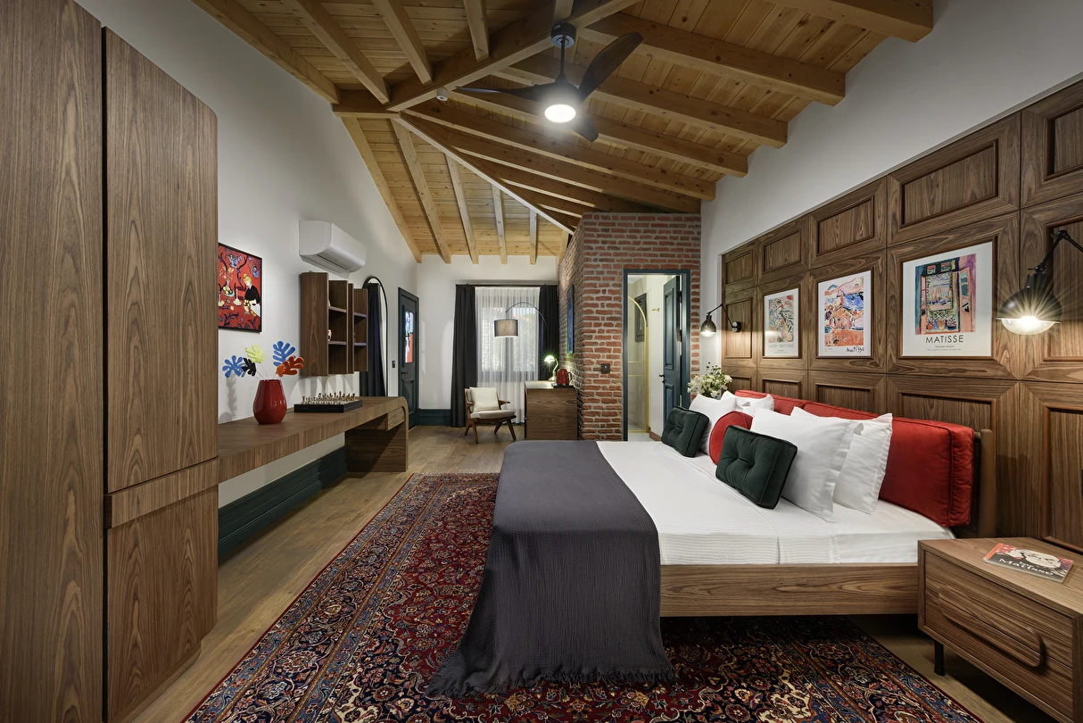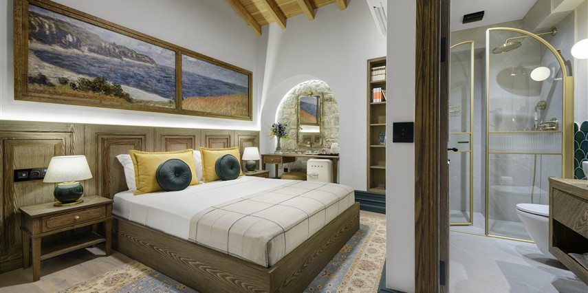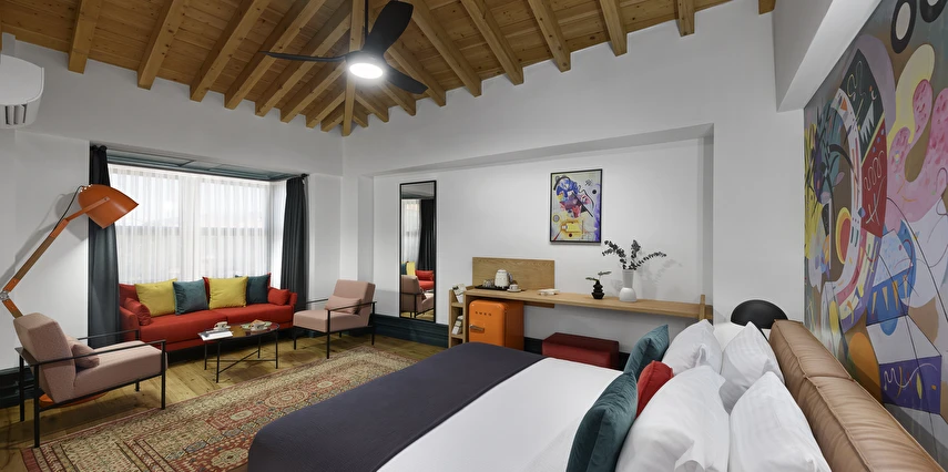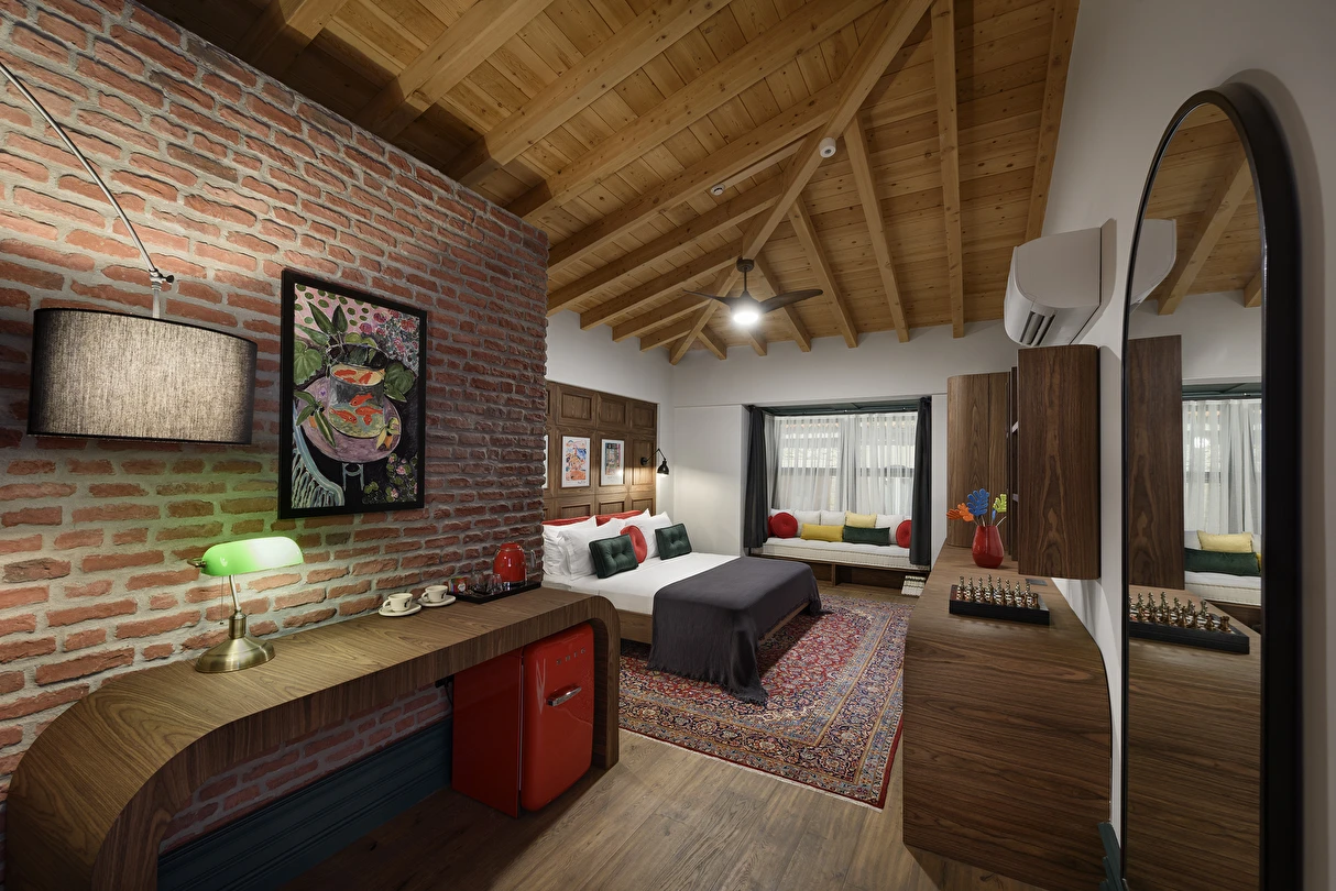 Alaçatı'nın kıvrımlı, beyaza bürünmüş sokaklarının kalbinde, begonvillerin eski taş duvarlara tırmandığı, zamanın esintiden daha yavaş aktığı bir dünyada Tinspiro sessizce duruyor. Burası sadece bir otel değil. Sadece bir kafe de değil. Tinspiro, yaşayan bir galeri, nefes alan bir tuval ve renk, mekân, doku ve tat aracılığıyla anlatılan özenle kurgulanmış bir hikaye sunan duyusal bir kaçış noktasıdır. Benzersiz tasarlanmış yedi odamızın her biri efsanevi bir sanatçıya bir övgüdür: Van Gogh, Mondrian, Monet, Picasso, Kandinsky, Matisse ve Klimt. Duvarların dokusundan çarşafların paletine kadar, her ayrıntı sanatçının ruhunun özenle seçilmiş bir yansımasıdır. En kaliteli materyallerle özel tasarlanmış mobilyaları ve geniş olanaklarıyla bu sanatsal odalar sizlere ev konforunu lüks ile mükemmel bir şekilde harmanlayan bir tecrübe sunar.