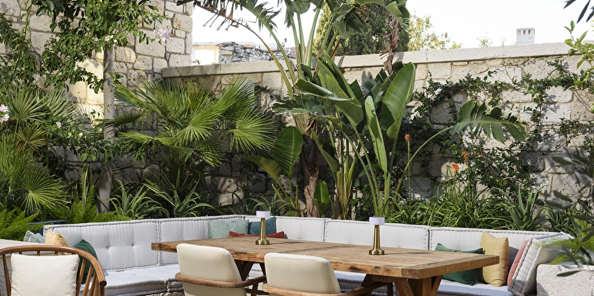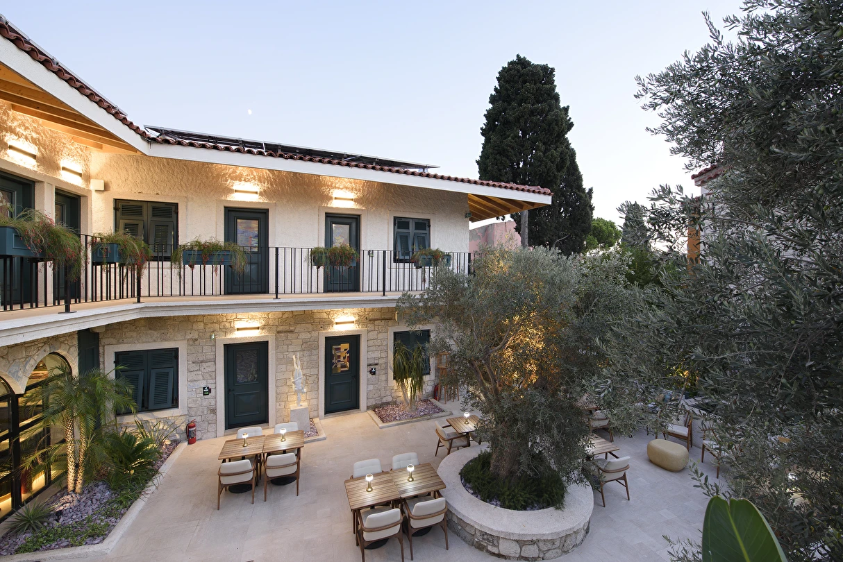 Tinspiro, odaların ötesinde her biri kendine özgü cazibesi olan ortak alanlara açılıyor. Ön tarafta, sokak kenarındaki oturma alanlarımız, Alaçatı atmosferini içinize çekmek için mükemmel bir ortam sunuyor. İç kısımda sıcak kafemiz ve özenle seçilmiş kütüphanemizde kitaplar, sohbet ve lezzetler zahmetsizce harmanlanıyor. Arka tarafta ise rahat köşeleri ve gür yeşilliğiyle adeta gizli bir vaha olan yemyeşil, sakin bir bahçemiz var. İster dinlenmek, ister ilham almak, ister sadece güzel hayatın tadını çıkarmak için gelmiş olun, Tinspiro sizi sanatın, lezzetin, huzurun ve zarafetin uyum içinde bir araya geldiği bir dünyayı deneyimlemeye davet ediyor. Tinspiro: Güzelliğe, ruha ve dinginliğe kaçışınız.