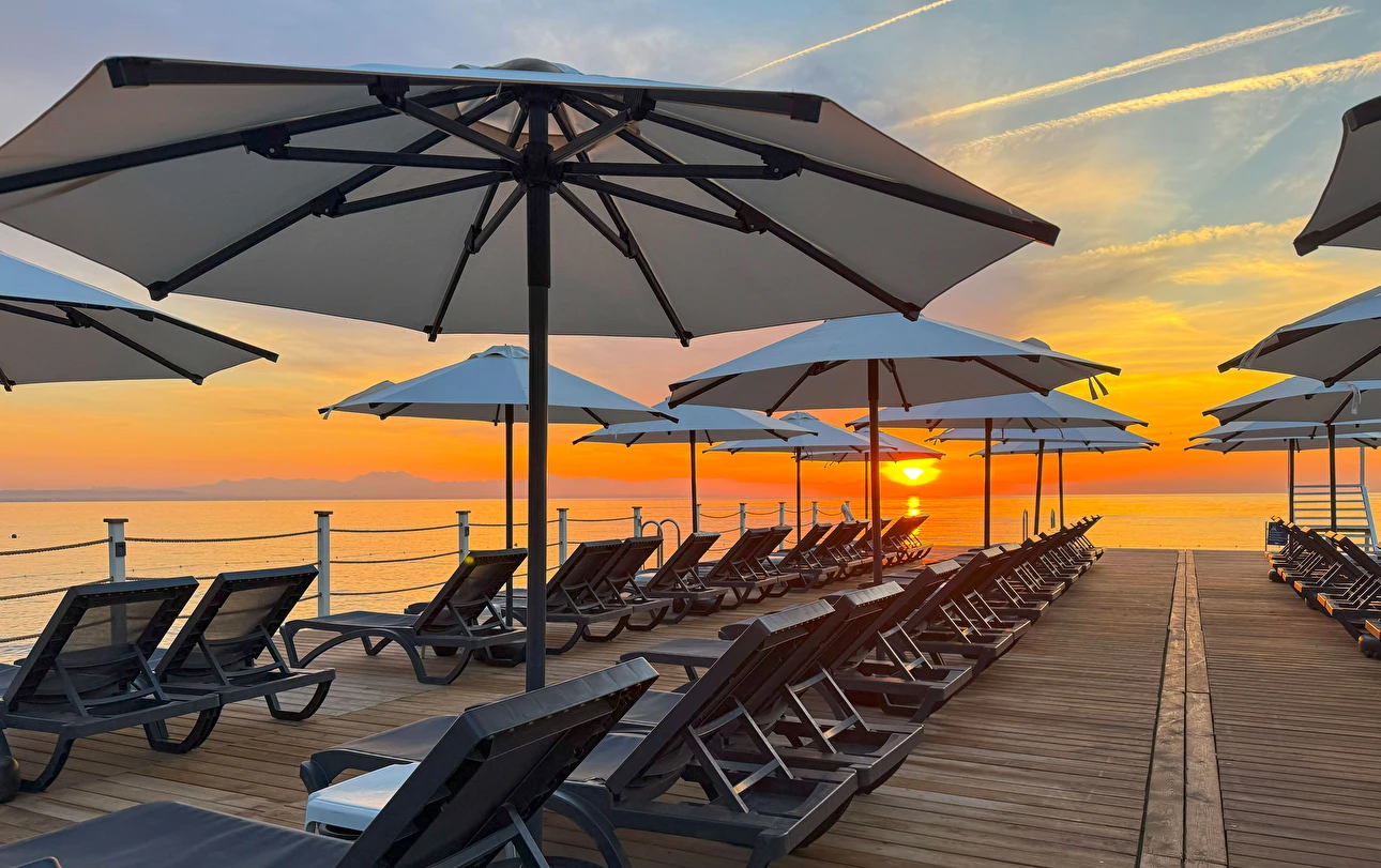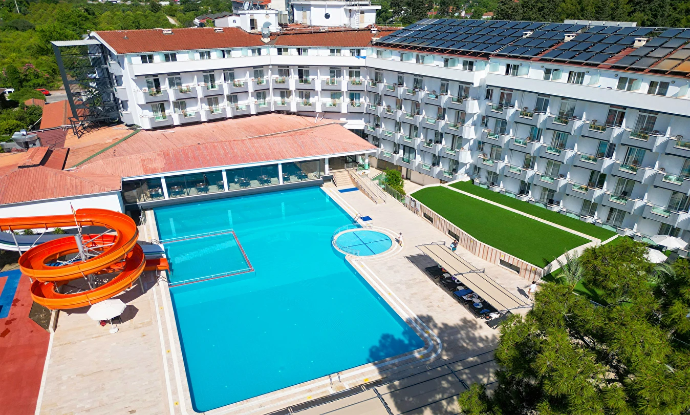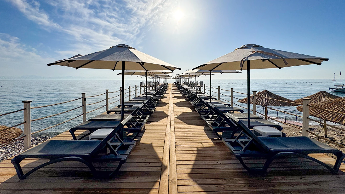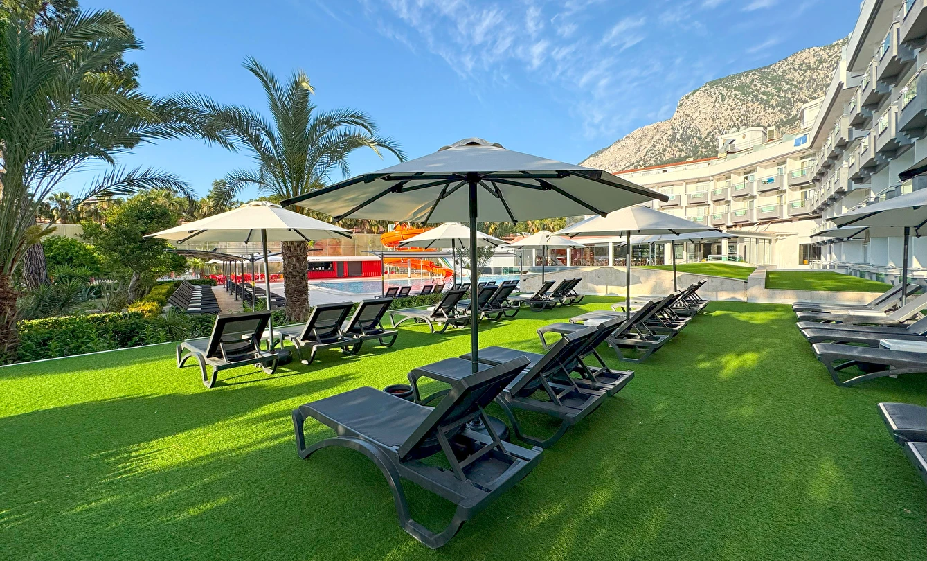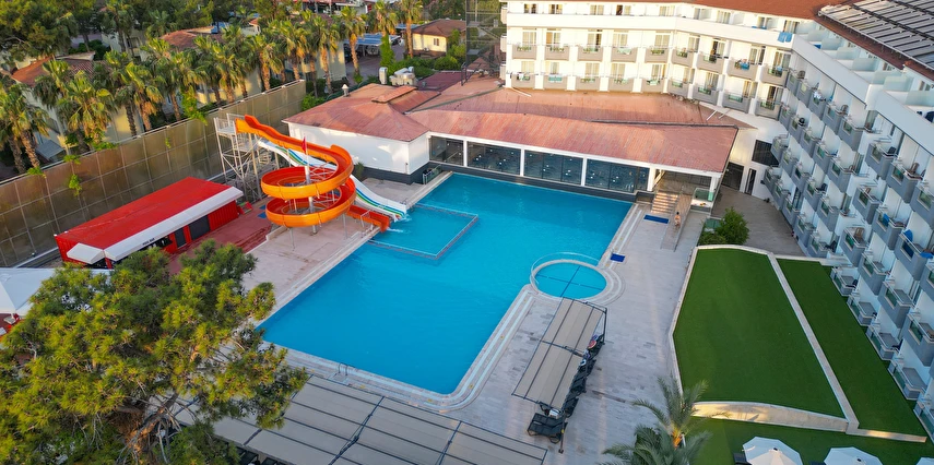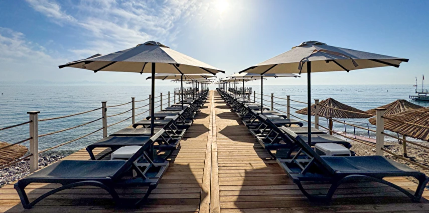 Plaj Havlusu, Şezlong, Minder Güneşlik Hizmeti havuzda da verilmektedir.