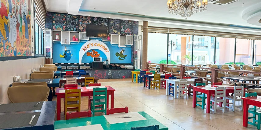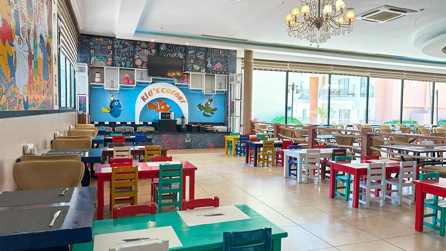 Ana restoranda çocuk menüsü bulunmaktadır. Konsepte dahil olan içecekler belirli barlarda sunulmaktadır.