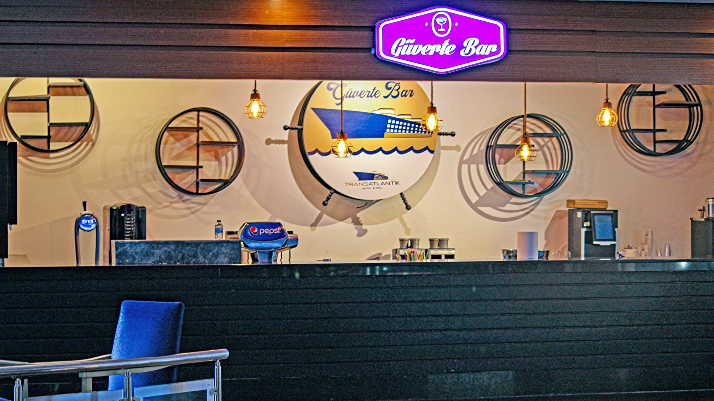 Güverte Bar (08:00 ile 00:00 saatleri arasında) (Bazı İthal , Yabancı Alkollü, Alkolsüz İçecekler, Çekirdek Gurme Kahve ve Sıcak İçecekler)