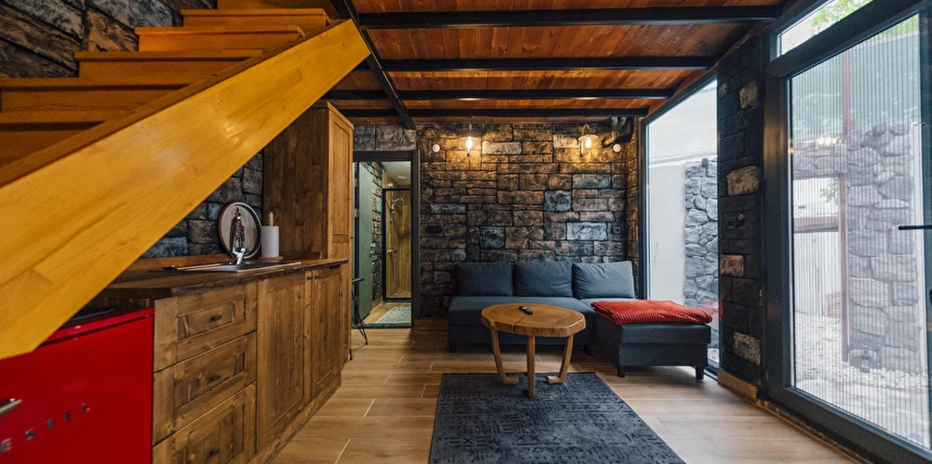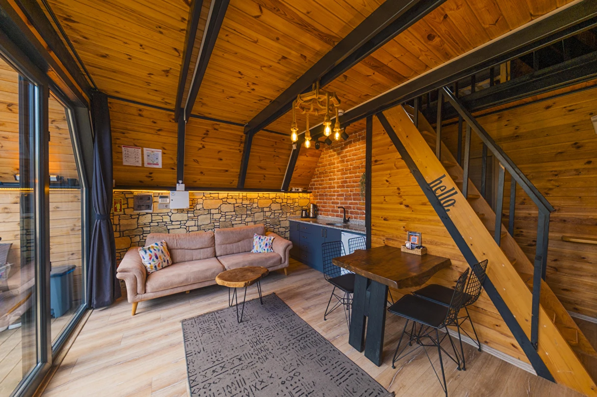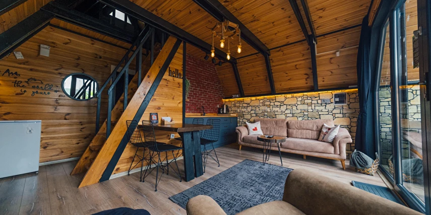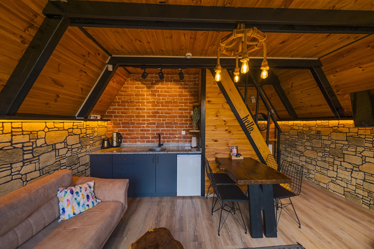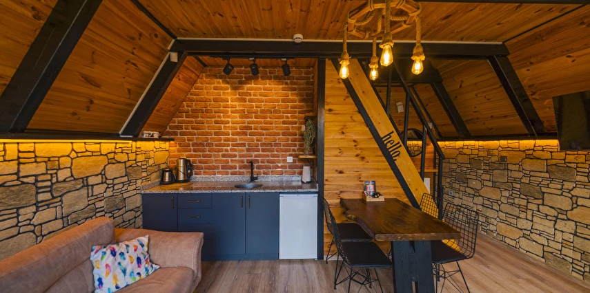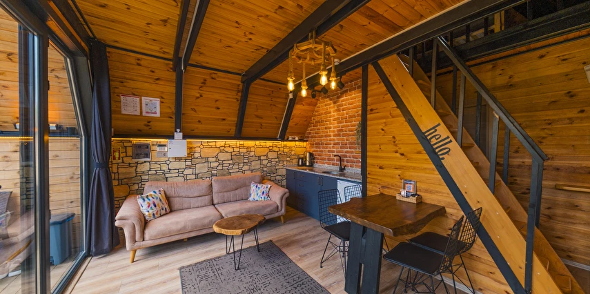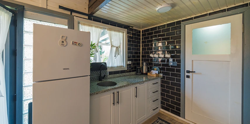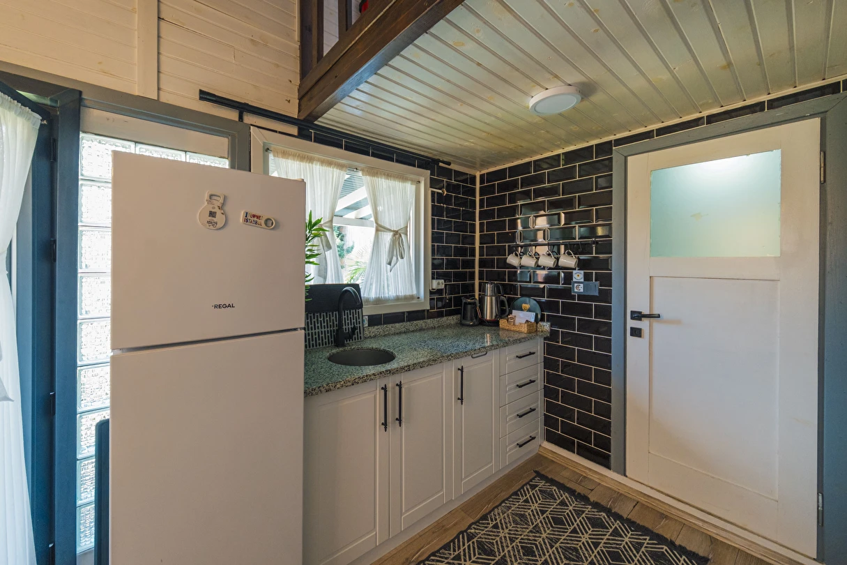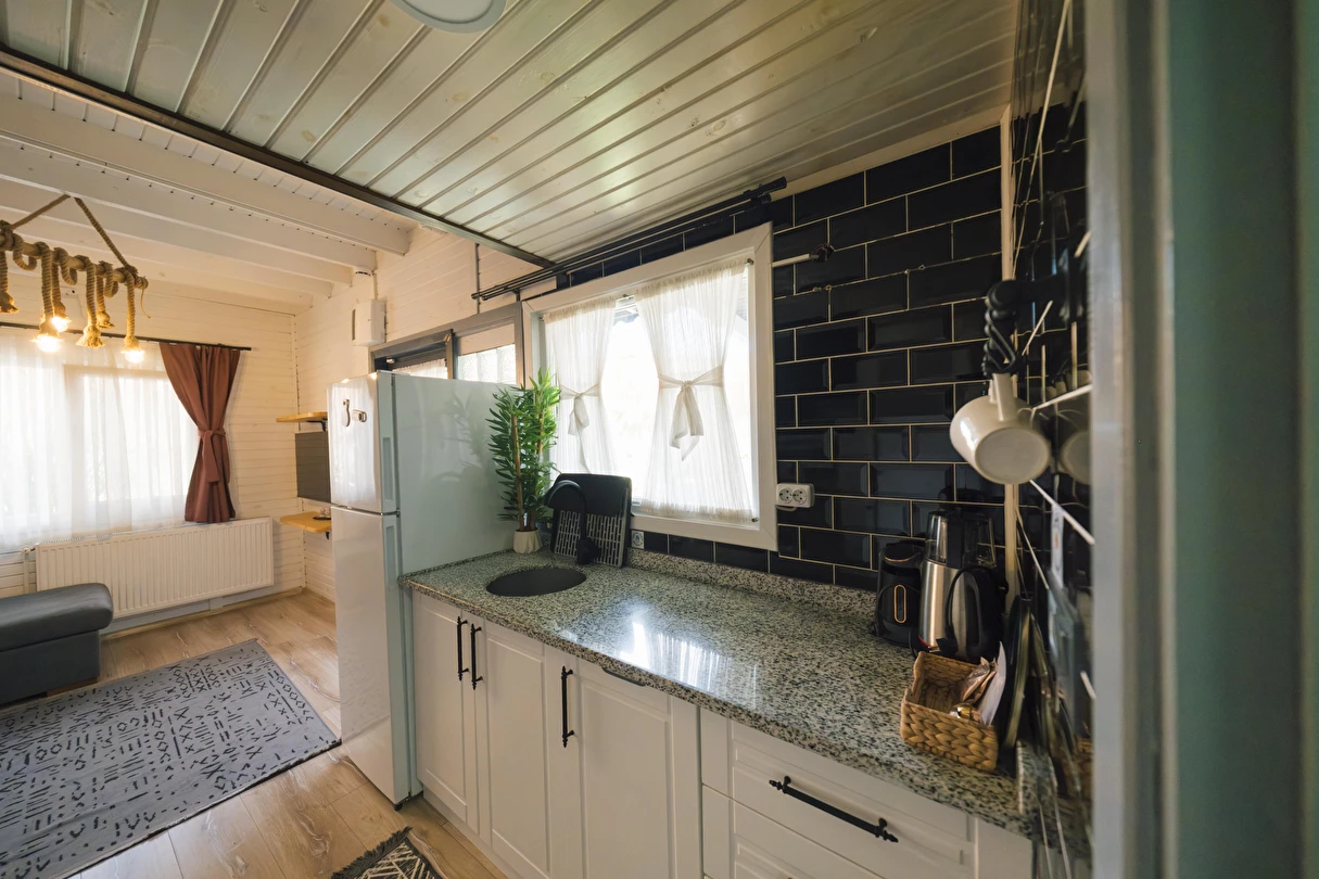 Daha Fazla GösterTiny House Maşukiye, 50 m² büyüklüğünde olan evimizde; 1 adet çift kişilik yatak, 2 adet tek kişilik yatak, 1 adet açılan L koltuğumuz mevcut olup, 5 kişi konaklama imkanınız bulunmaktadır.