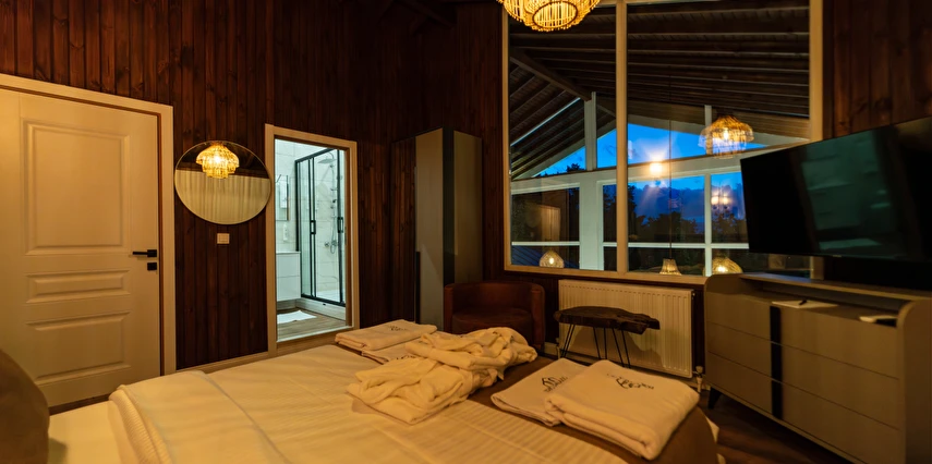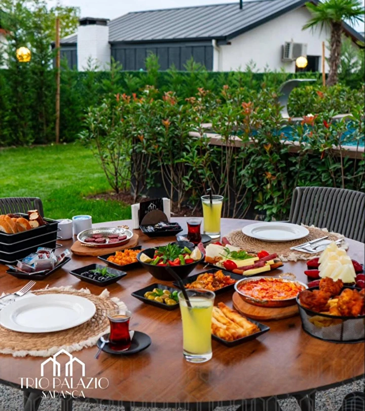 Daha Fazla GösterTrio Palazio... Sapanca'nın Saklı Bahçesinde "Doğanın İçindeki Yeni Eviniz" Yazı başka yeşil, kışı başka beyaz... Karlar içinde sıcacık bir havuz, ağaçlar içinde kuşların şarkıları... Akşamüstü havuz başı keyifli bir mangal, gece şömine başı nefis bir sıcak şarap... Evinizin yemyeşil bahçesinde bolca sohbet muhabbet... Doğanın kalbinde muhteşem bir uyku, sabah "Sapanca Gölü"nü selamlayarak dingin bir doğaya uyanış... “Trio Palazio" Sapanca'nın kalbinde atıyor!!! Sapanca Gölü'ne kucak açarak; ekibi ile beraber en kıymetli misafirlerini, sizleri bekliyor. Her oda için 5 kg kadar bir tane küçük ırk evcil hayvan kabul edilmektedir.