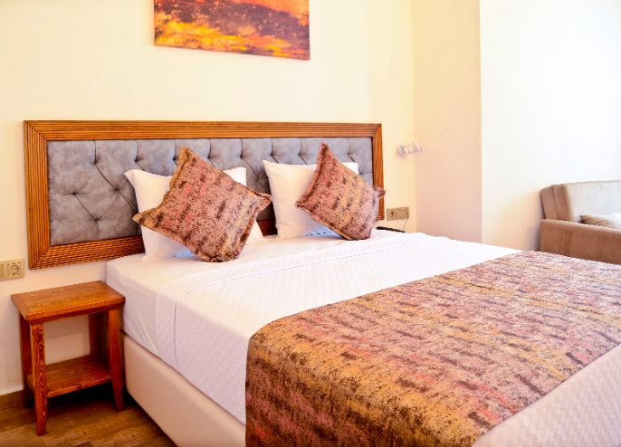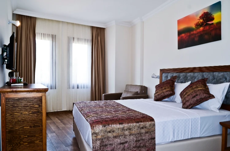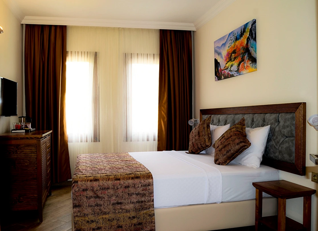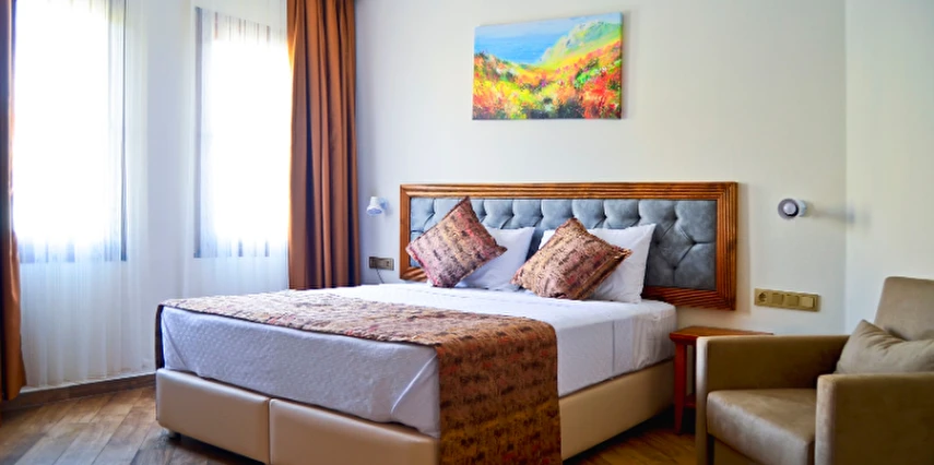 Gökçeada’nın sakin ve doğayla iç içe ortamında yer alan Troiada Otel, konforlu ve ferah odalarıyla sizi sıcak bir karşılamaya davet ediyor. Butik tarzı, merkezi konumu ve huzurlu atmosferi sayesinde ada keşfi yapmak veya sadece dinlenmek isteyenler için ideal bir seçim. Günlük özenle hazırlanan kahvaltısıyla güne keyifle başlayabilir, ücretsiz Wi‑Fi ve klima ile konforunuzdan ödün vermeden rahat bir konaklama yaşayabilirsiniz. 24 saat resepsiyon ve ücretsiz otopark imkânı sayesinde her ihtiyacınız kolayca karşılanır. Aileler, çiftler veya arkadaş grupları için samimi ve güvenli bir ortam sunan Troiada Otel, Gökçeada’da unutulmaz bir tatil için sizi bekliyor.