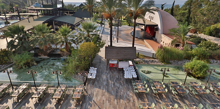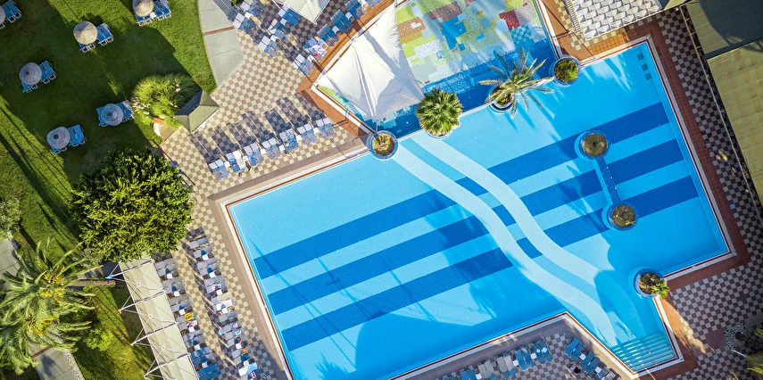 Havuzlar 10.00 - 18.00 saatleri arasında hizmet vermektedir. Bu saatler arasında cankurtaran bulundurulmaktadır. Otel bölümünde küçük çocuklar için su kaydırakları; 10.00 - 12.00 ve 14.00 - 17.00 saatleri arasında hizmet vermektedir. Tesiste; Aquapark haricinde çocuk bölümü bulunan 1 adet büyük havuz, 1 adet 3 kaydıraklı çocuk havuzu, 1 adet kapalı havuz, 1 adet bebek havuzu ve otel misafirlerininde arzu ettikleri süre boyunca yararlanabilecekleri bölgenin en büyük aquaparkı bulunmaktadır.