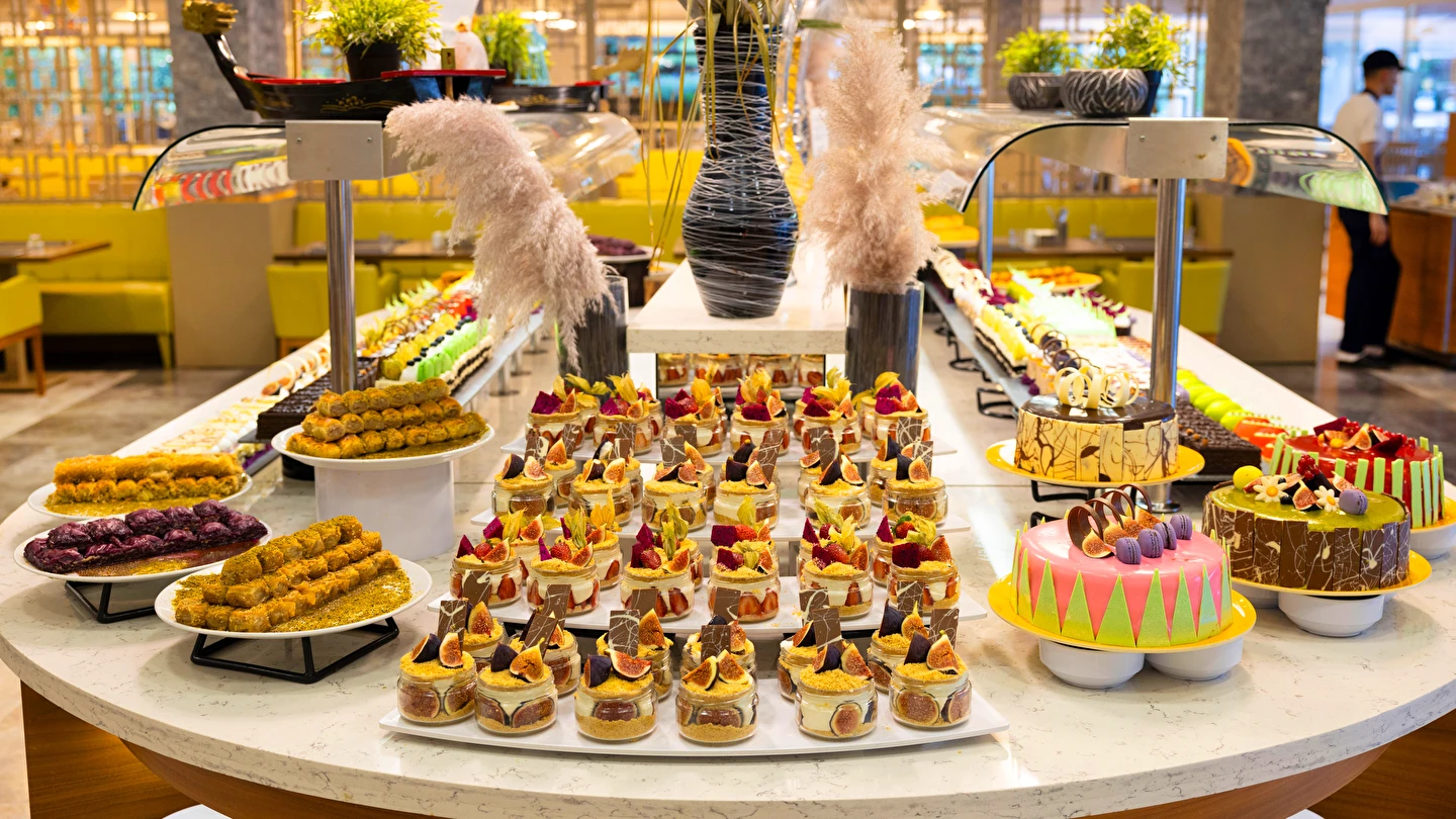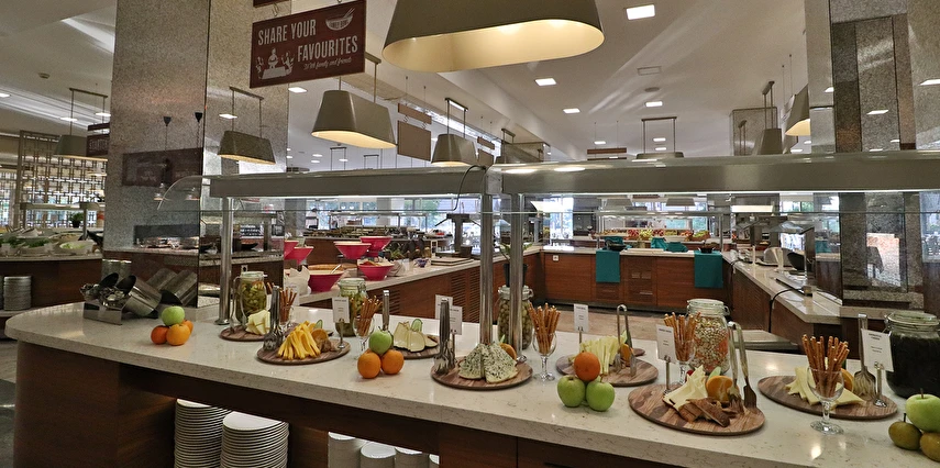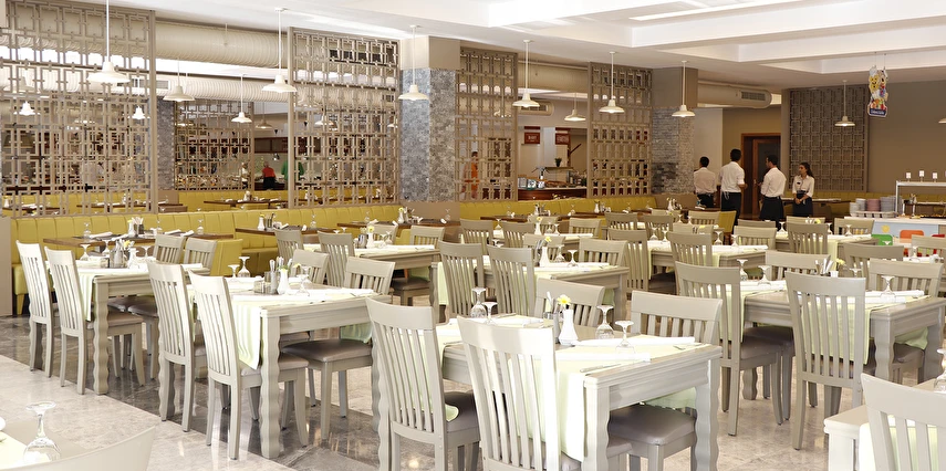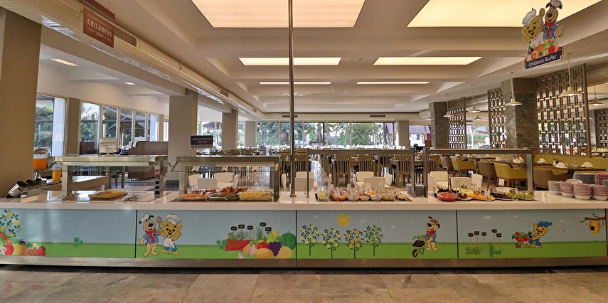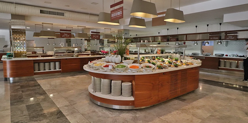 Sabah, öğle ve akşam açık büfe yemekler ücretsiz. Tesisin belirlemiş olduğu yerli alkollü ve alkolsüz içecekler sabah 10.00 ve gece 24.00 arasında ücretsiz. Sıcak içecekler; kahve, espresso, cappucino, Türk kahvesi, demleme Türk çayı ve aromatik bitki çayları servis ediliyor. Atrium barda 00.00 – 10.00 arasında içecek servisi ücretli olarak devam etmektedir.