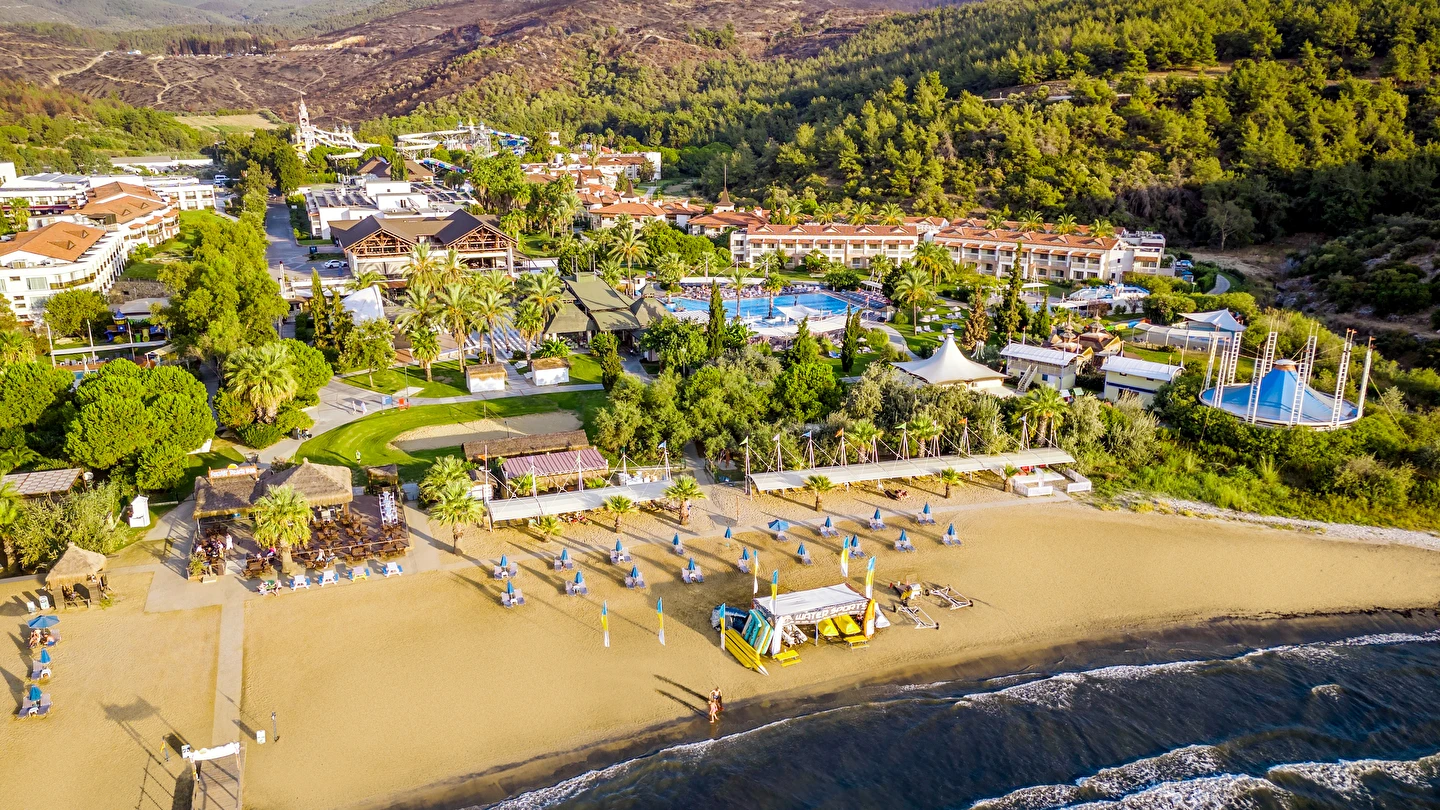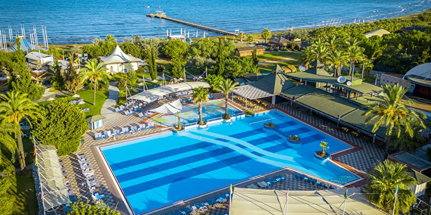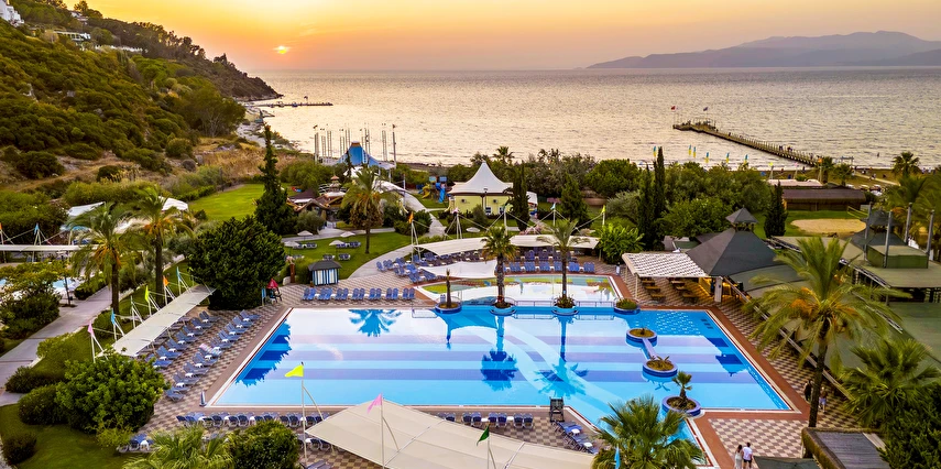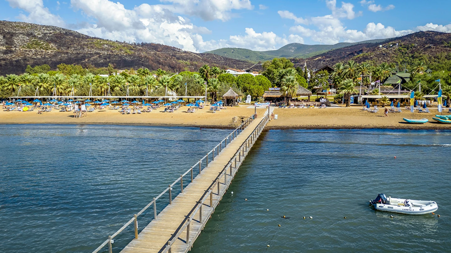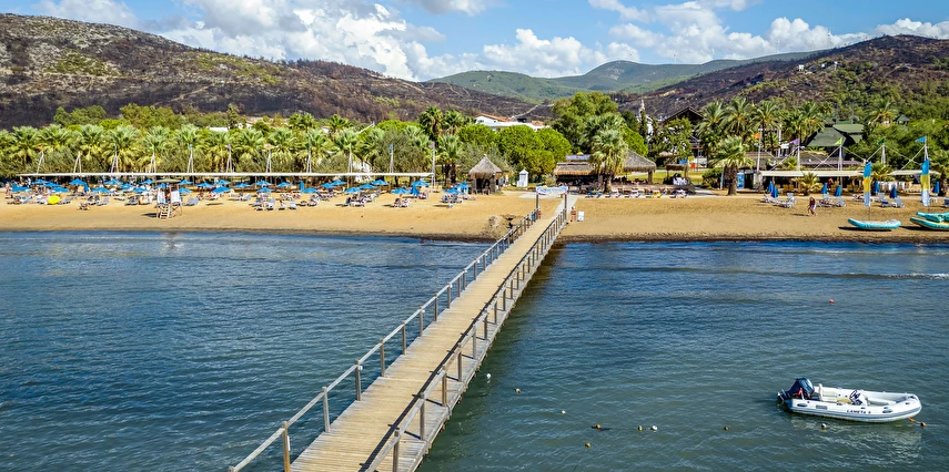 Denize sıfır olarak konumlanmış otelin, 1 adet 150 metre uzunluğunda ahşap iskelesi 300 m uzunluğunda kum sahili bulunuyor. Havuzda ve plajda; güneş şemsiyesi, havlu ve şezlong ücretsizdir.