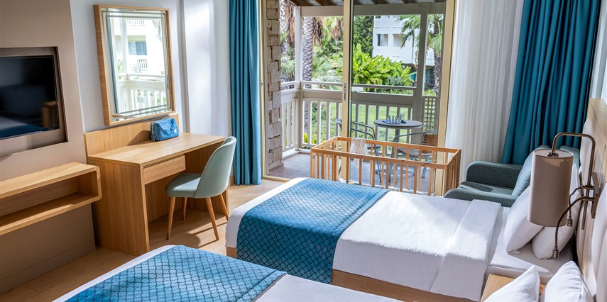 Bebekler için; Sızdırmaz bebek mayosunu marketten satın alabilirsiniz. Ana restoranda yoğurt ve süt bulabilirsiniz; ayrıca, İhtiyaç halinde; bebek küveti (ücretsiz) , biberon ısıtıcısı (ücretli) temin edebilirsiniz. Bebek arabası hizmeti de ücretli olarak misafirlere sağlanan olanaklar arasında. Çocuklar için; Tesisin a la carte restoranlarında çocuk menüsü hizmeti sunuluyor. Mini kulüpte, 10.00 - 12.00, 15.0017.00, 18.30-19.45 saatleri arasında eğlenceli aktiviteler düzenleniyor. Bahçe içerisindeki oyun alanında ise çocuklar maceradan maceraya koşuyor. Doğum günlerine özel küçük kutlamalar, minik misafirlerin tatillerini renklendirirken mini disko ile onlara doyasıya eğlenme imkanı tanıyor. Misafirler ihtiyaç halinde ana restoranda bulunan mama sandalyeleri, mikrodalga fırın ve blender gibi eşyaları kullanabilir. Ayrıca sahilde çocuklar için park alanı bulunuyor. Çocuk Kulübü: 10.00 - 12.00, 15.00 - 17.00 saatlerinde hizmet veriyor. 4 - 12 yaş grubu için Mini Kulüp bulunuyor. Mini Kulüp Özellikleri ve Aktiviteler: Oyun alanı, mini disko, çocuk yaşlarına göre farklı ve eğlenceli aktiviteler bulunmaktadır. Çocuk Kulübü çalışma saatleri şartlara göre değişiklik gösterebilir. Gülen Bebekler Resepsiyon: Bebek arabası (ücretli) Oda: Bebek yatağı, bebek küveti, çizgi film kanalları. Ana Restoran: Çocuk büfesi, mama sandalyesi, mikro dalga fırın, blender, yoğurt, süt, meyve suyu, haşlanmış sebze (ebeveynlerin çorba hazırlaması için), biberon ısıtıcısı.