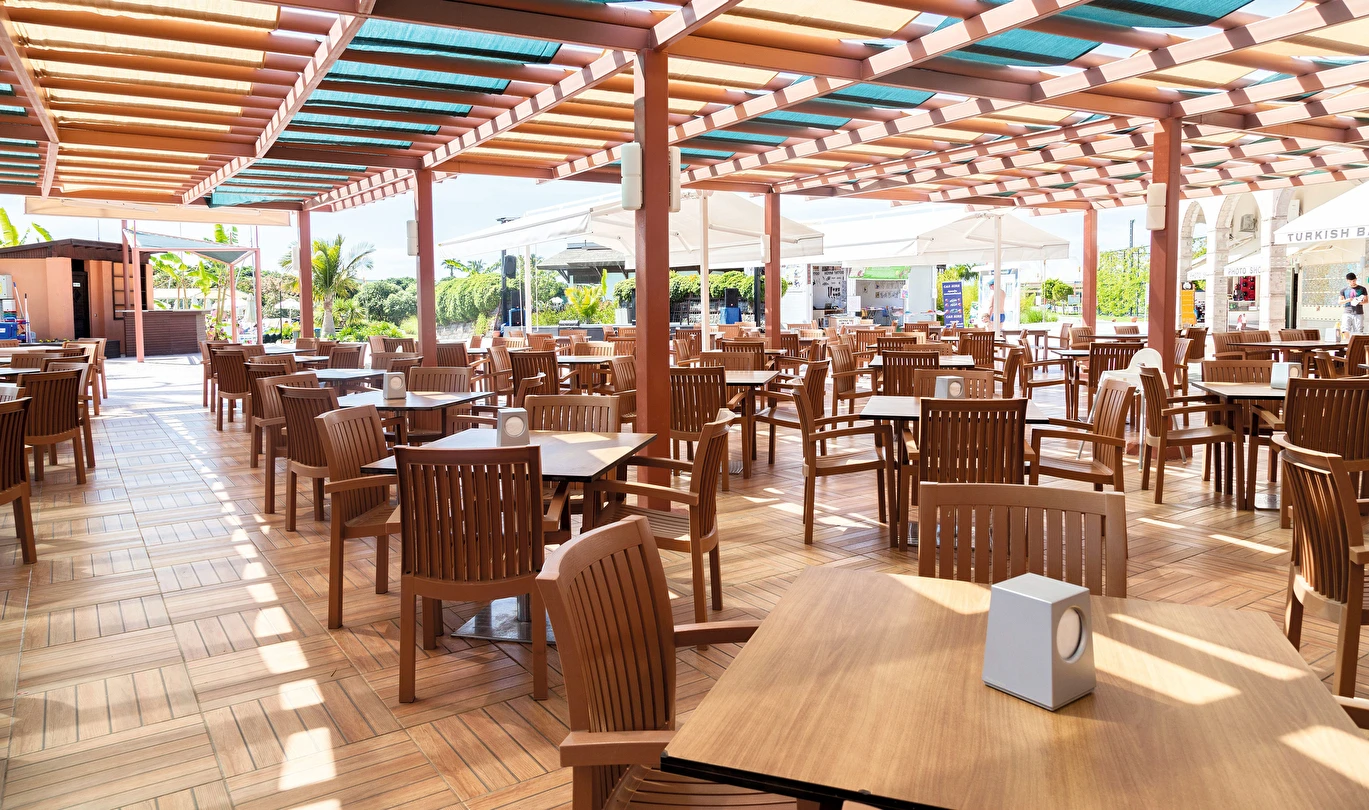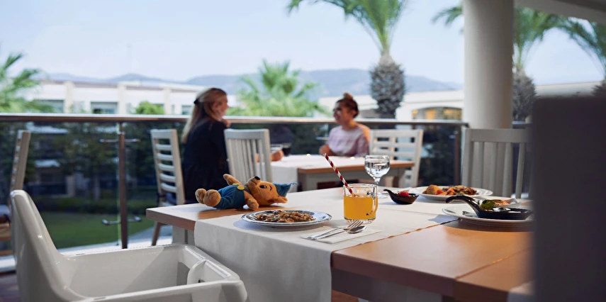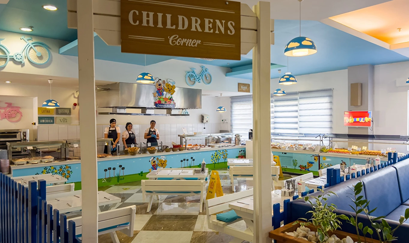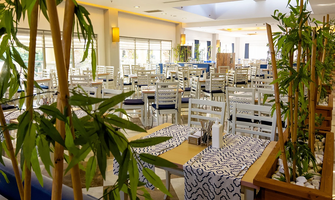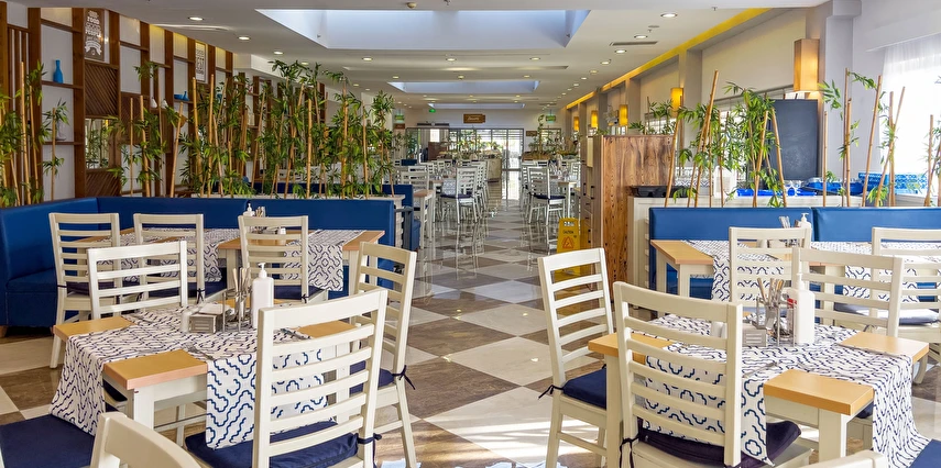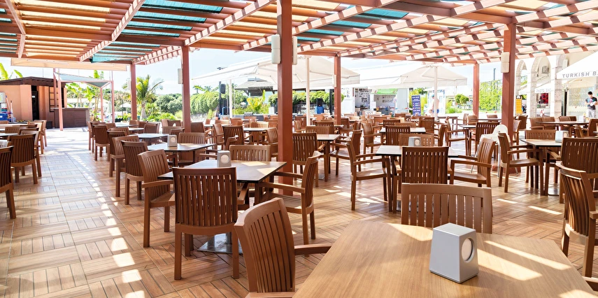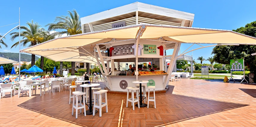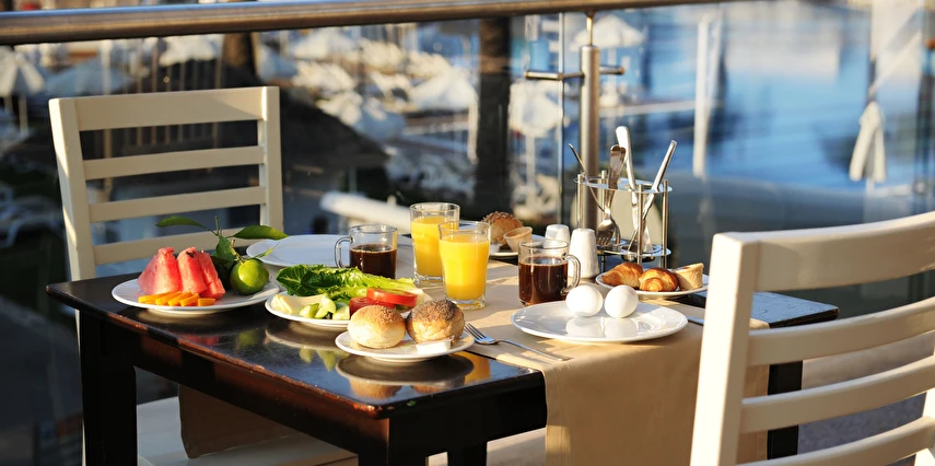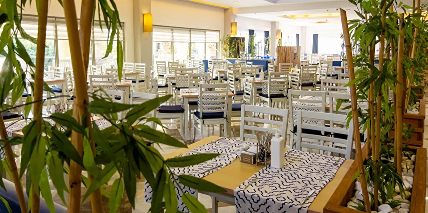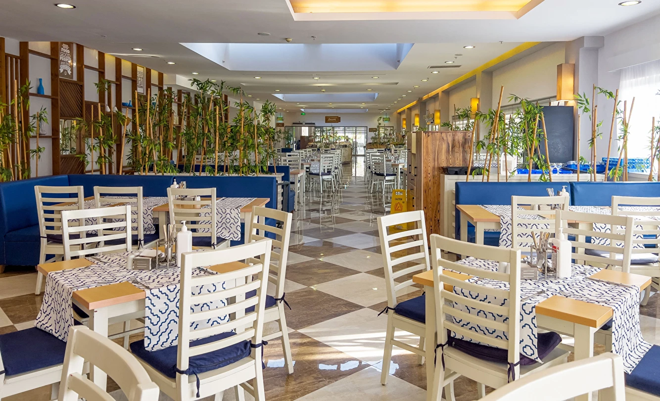 Sabah kahvaltısı, öğle ve akşam yemekleri açık büfe olup tesisin belirlediği markalar dahilinde yerli alkollü ve alkolsüz içecekler 10:00 ile 24:00 saatleri arasında ücretsizdir. Türk Kahvesi ücretsizdir.