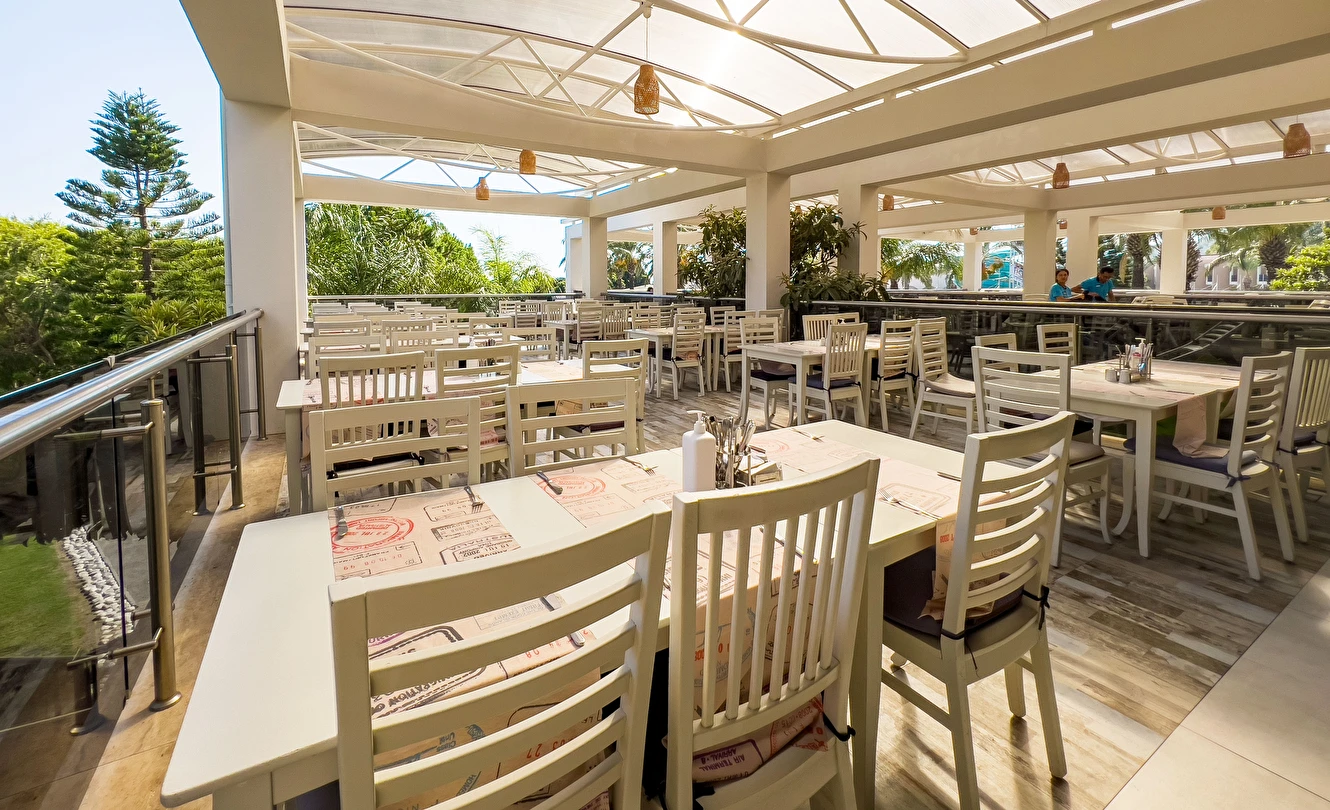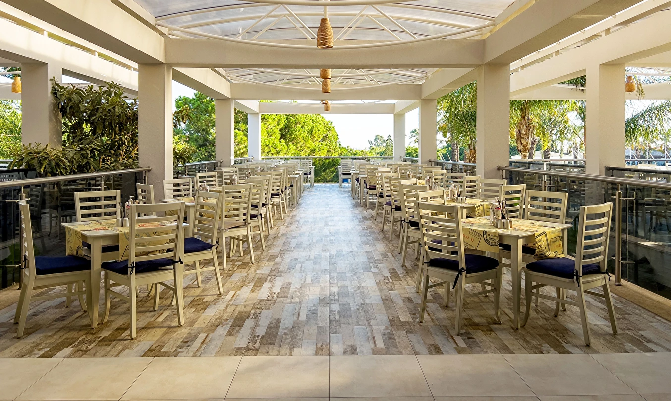Türk Tavernası, Spice ve Green & Grill A’la Carte Restoranlar Minimum 5 gece konaklayan misafirler için, rezervasyonlu olarak konaklama süresince her A’la Carte restoran yalnızca 1 kez kullanılabilir. 2.kullanım ücretlidir. A’la Carte restoranlar haftanın 6 günü hizmet vermektedir.