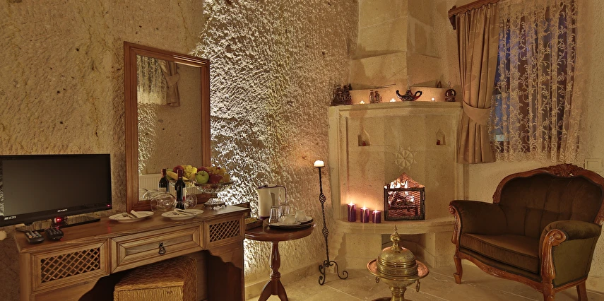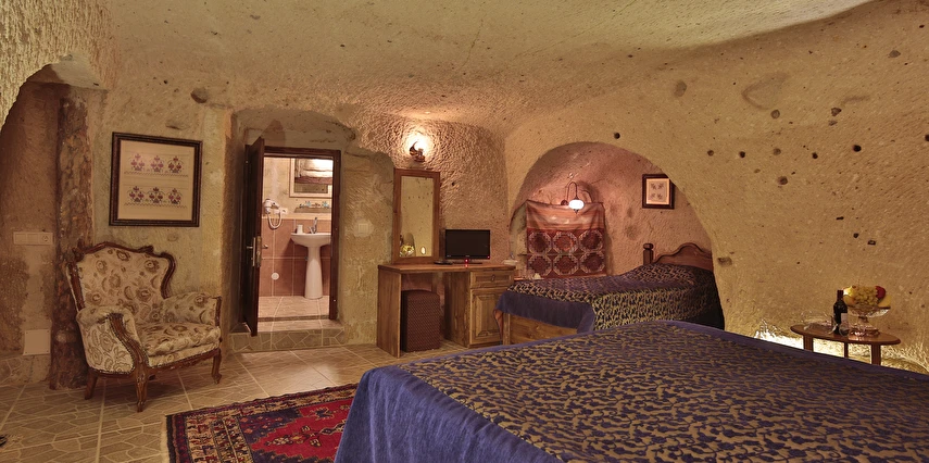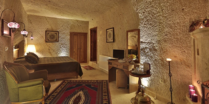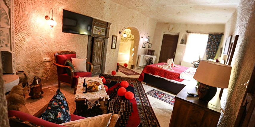 Turkish Cave House Hotel, misafirlerine Nevşehir'in eşsiz atmosferini yaşatmak için zevkle döşenmiş odalarında; uydu yayını, minibar, telefon ve kablosuz internet erişimi gibi konuklarının ihtiyaç duyacağı tüm olanakları sağlıyor. Turkish Cave House, sabahları yöresel kahvaltı servisinin yanı sıra Ortahisar Kalesi manzarasına sahip terasında ve avlusunda misafirlerine bu büyülü coğrafyanın tadını çıkarma imkanı sağlıyor. Nevşehir'in Ortahisar mevkiinde konumlanan Turkish Cave House, Ürgüp Otogarına 7 km, Nevşehir Şehir Merkezine 15 km, Ortahisar Kalesine 5 km, Göreme Milli Parkına 5 km, Nevşehir Kalesine 18 km, Ürgüp Müzesine 16 km ve Nevşehir Kapadokya Havalimanına 45 km mesafede yer alıyor. Hayvan dostu bir tesis olarak öne çıkan Turkish Cave House, Nevşehir’in Ortahisar mevkiinde bulunuyor. Kapadokya’ya özgü otantik bir mimariye sahip olan tesis, kaya konseptinde tasarlanmış odalarında konforlu bir konaklama imkanı sunuyor.