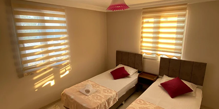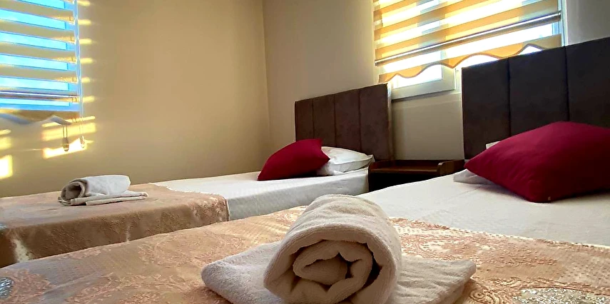 Ferah Odalar:Aileler ve arkadaş grupları için uygun genişlikte, aydınlık ve balkonlu oda seçenekleri.