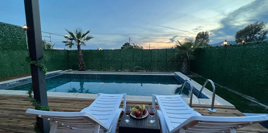 Modern mimariyle tasarlanmış villalarda; tam donanımlı mutfak, ferah oturma alanları, konforlu yatak odaları, özel banyo ve balkon/teras gibi olanaklar bulunmaktadır. Bazı villalarda özel yüzme havuzu ve bahçe alanı yer alarak misafirlere daha fazla mahremiyet ve rahatlık sunar.