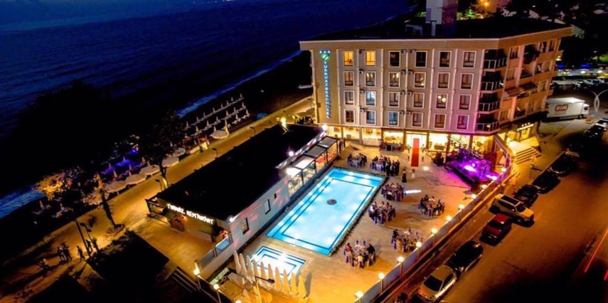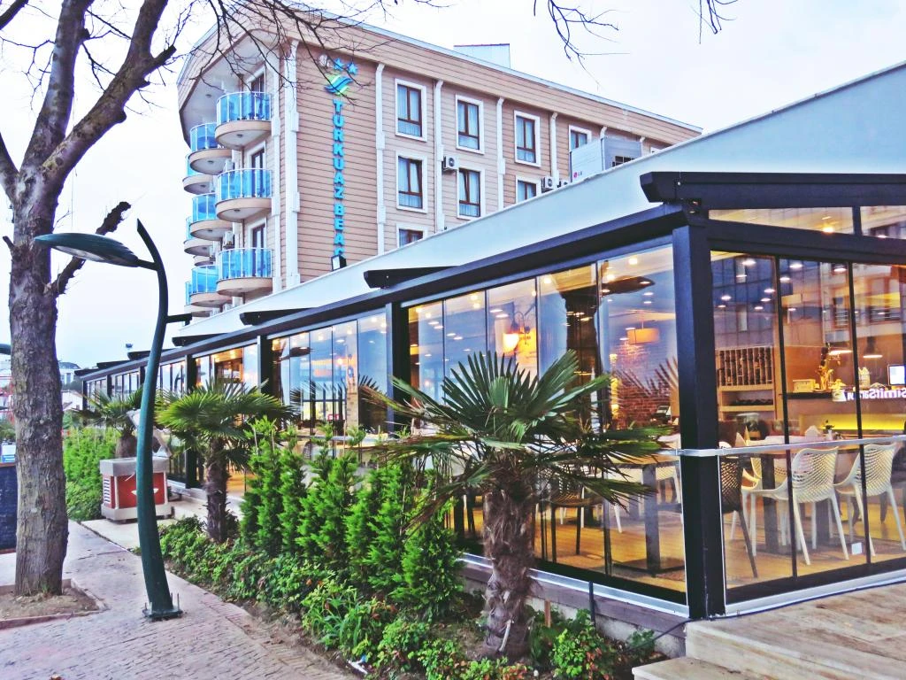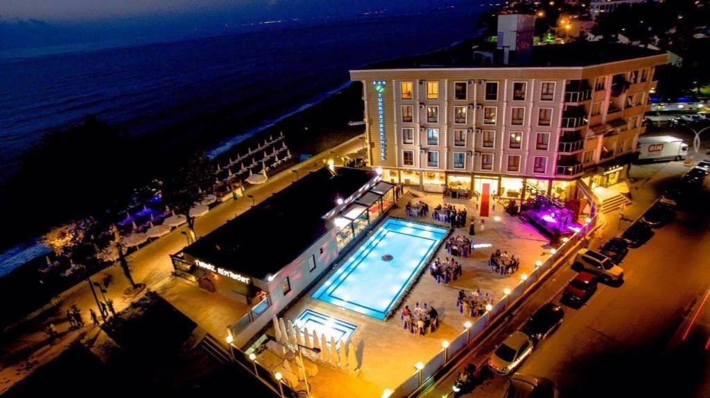Daha Fazla GösterDüzce’de denizin kıyısında hizmet veren Turkuaz Beach Otel, kendisine ait plajı, açık havuzu ve konforlu odalarıyla misafirlerine huzur ve eğlenceyi bir arada sunuyor. Turkuaz Beach Otel, zengin kahvaltısı ve zengin menüsüyle önce çıkan restoranıyla misafirlerine leziz öğünler servis ediyor. Tesiste ayrıca internet bağlantısı, çamaşırhane ve kuru temizleme imkanı mevcut. Denize sıfır konumda bulunan Turkuaz Beach Otel, ev konforunda sunduğu odaları, açık havuzu ve seçkin lezzetler sunulan restoranı ile Akçakoca Otogarı’na 4 km mesafede hizmet veriyor.