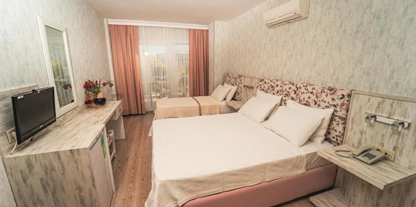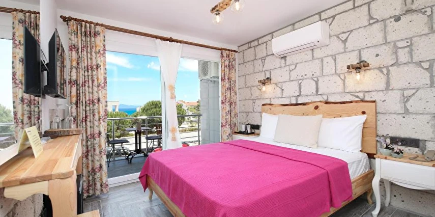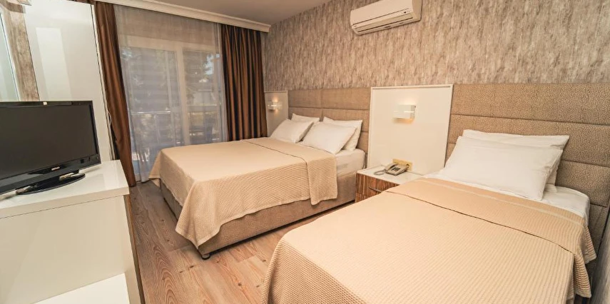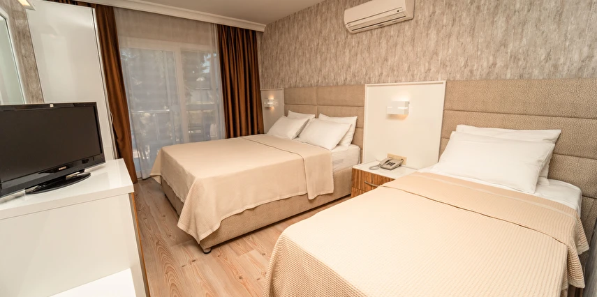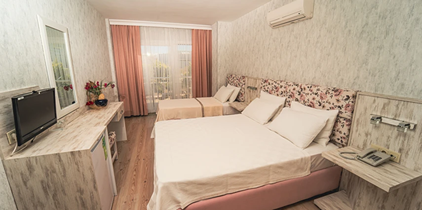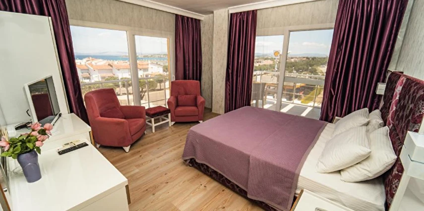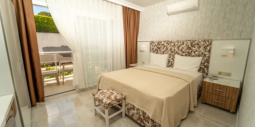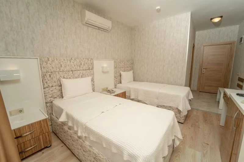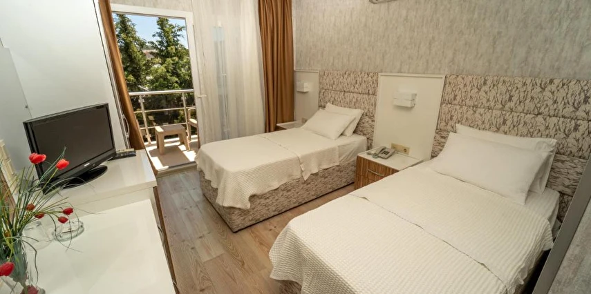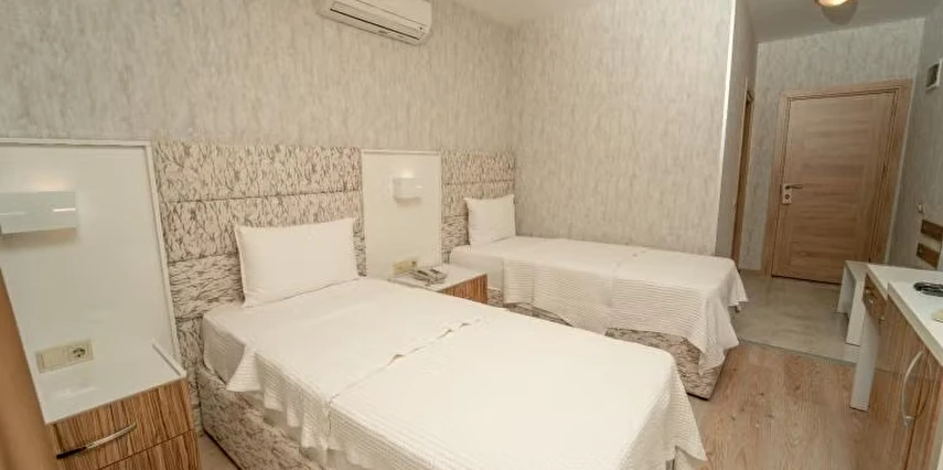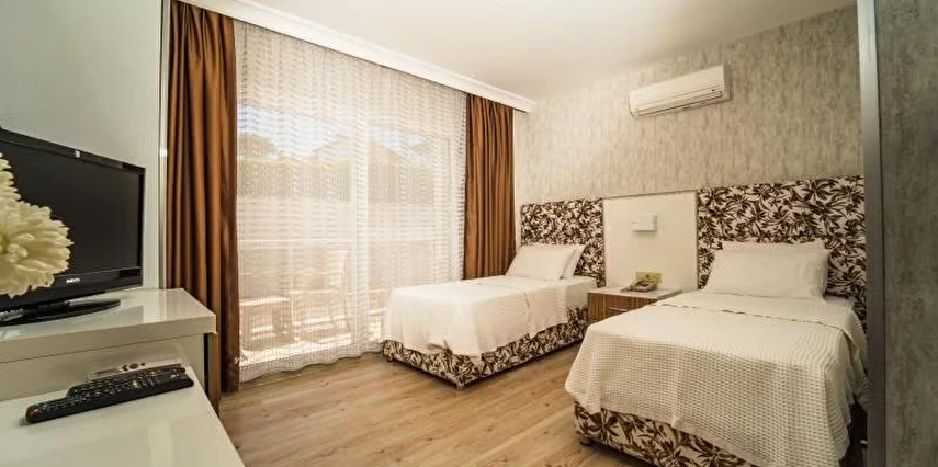 Twins Hotel, Boyalık koyuna hakim deniz manzaralı odaları ile 85 kişilik yatak kapasitesine sahiptir. Modern olarak dekore edilmiş odalarında klima, TV, sıcak su, sınırsız internet hizmeti oda fiyatlarına dahildir.