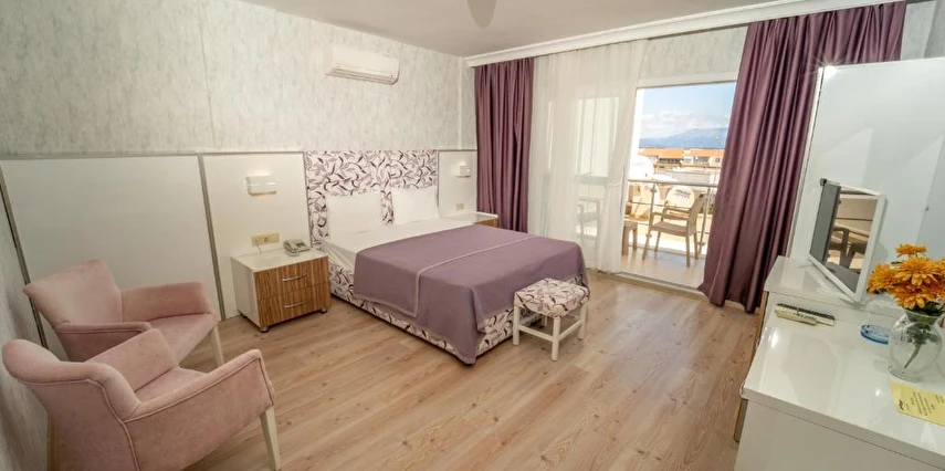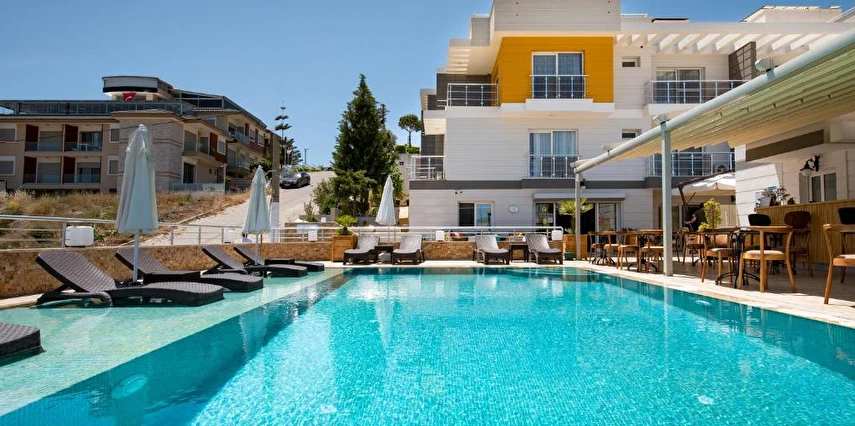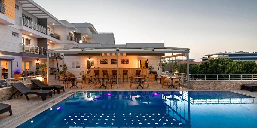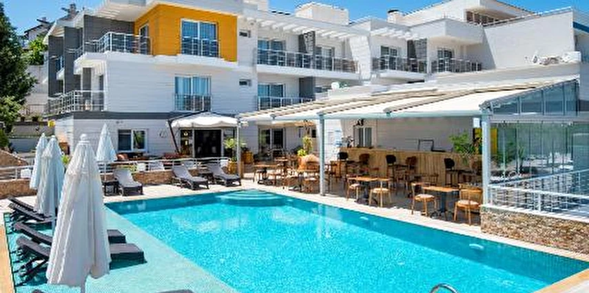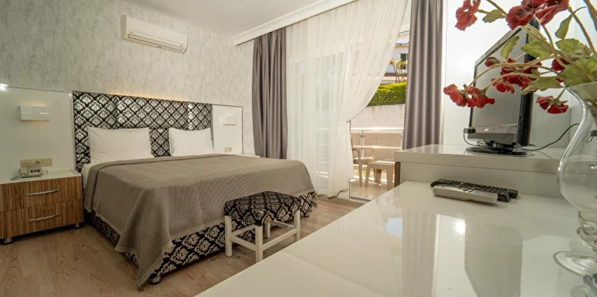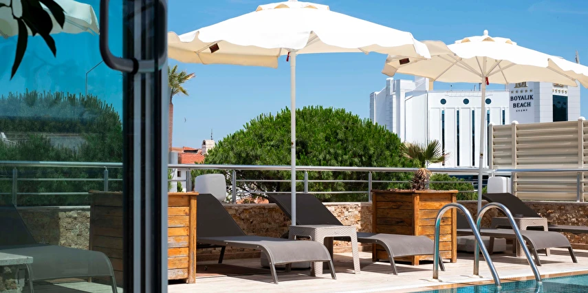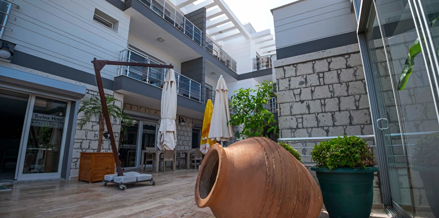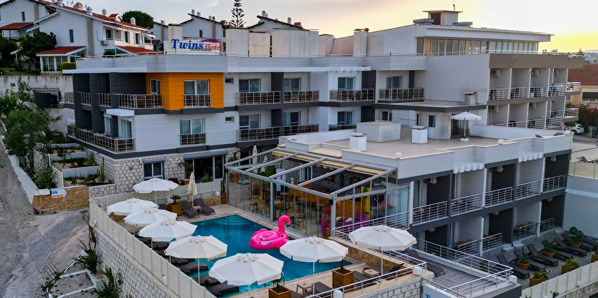 Twins Hotel, Boyalık koyuna hakim deniz manzaralı odaları ile 85 kişilik yatak kapasitesine sahiptir. Modern olarak dekore edilmiş odalarında klima, TV, sıcak su, sınırsız internet hizmeti oda fiyatlarına dahildir. 24 saat hizmet veren resepsiyonu, oda servisi, çamaşırhane/ütü ve sigara içilmeyen odaları ile, araba kiralama, hava alanı transferi, fax/fotokopi ve ücretsiz otopark hizmeti vermektedir. Denize sadece 5 dakikalık yürüyüş mesafesindedir.